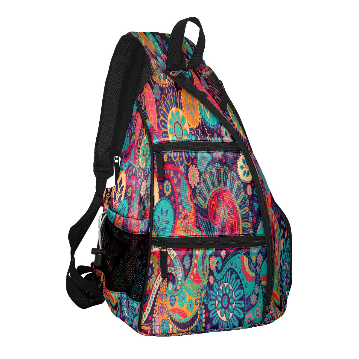 Pickleball Backpack - Convertible Shoulder Straps, Lightweight Breathable Paisley Navy Blue Bag, Fits 2 Paddles, Balls & Gear (45x35x15cm)