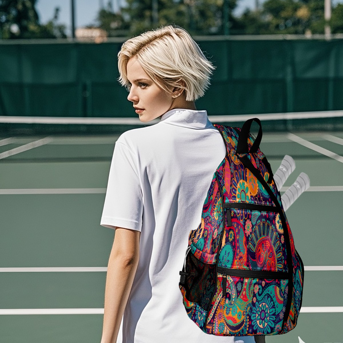 • <p>If you’re tired of juggling scattered pickleball gear, or settling for a one-note sports bag that only works on the court — this <strong>exclusive original pickleball backpack</strong> made for you.</p><p><strong>Spacious Pickleball Storage</strong>: Fits 2 pickleball paddles + full game gear, no extra bags required</p><p><strong>Switchable Convertible Straps</strong>: 10-second switch between backpack/shoulder/crossbody, matches any activity</p><p><strong>Breathable &amp; Lightweight</strong>: No sticky sweat buildup, comfortable for long pickleball matches</p><p><strong>Exclusive Original Prints &amp; Durable</strong>: One-of-a-kind designs + scratch-resistant fabric, stylish &amp; long-lasting</p><p><strong>Multi-Scenario Versatile</strong>: Doubles as commute/short trip bag, 1 bag for all needs</p>