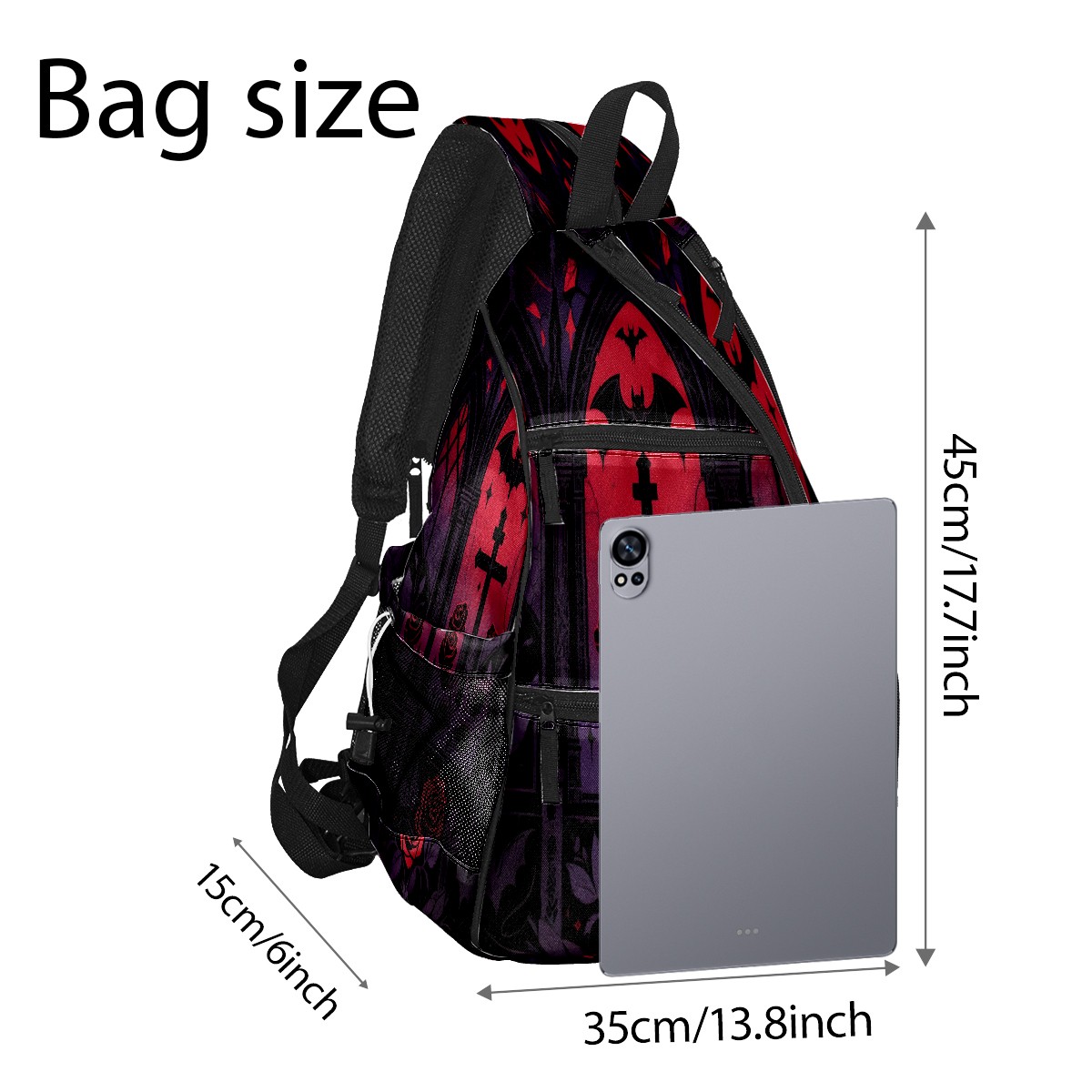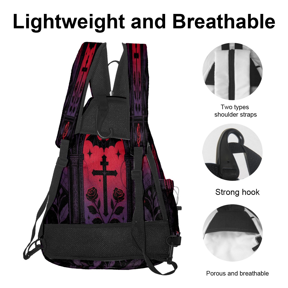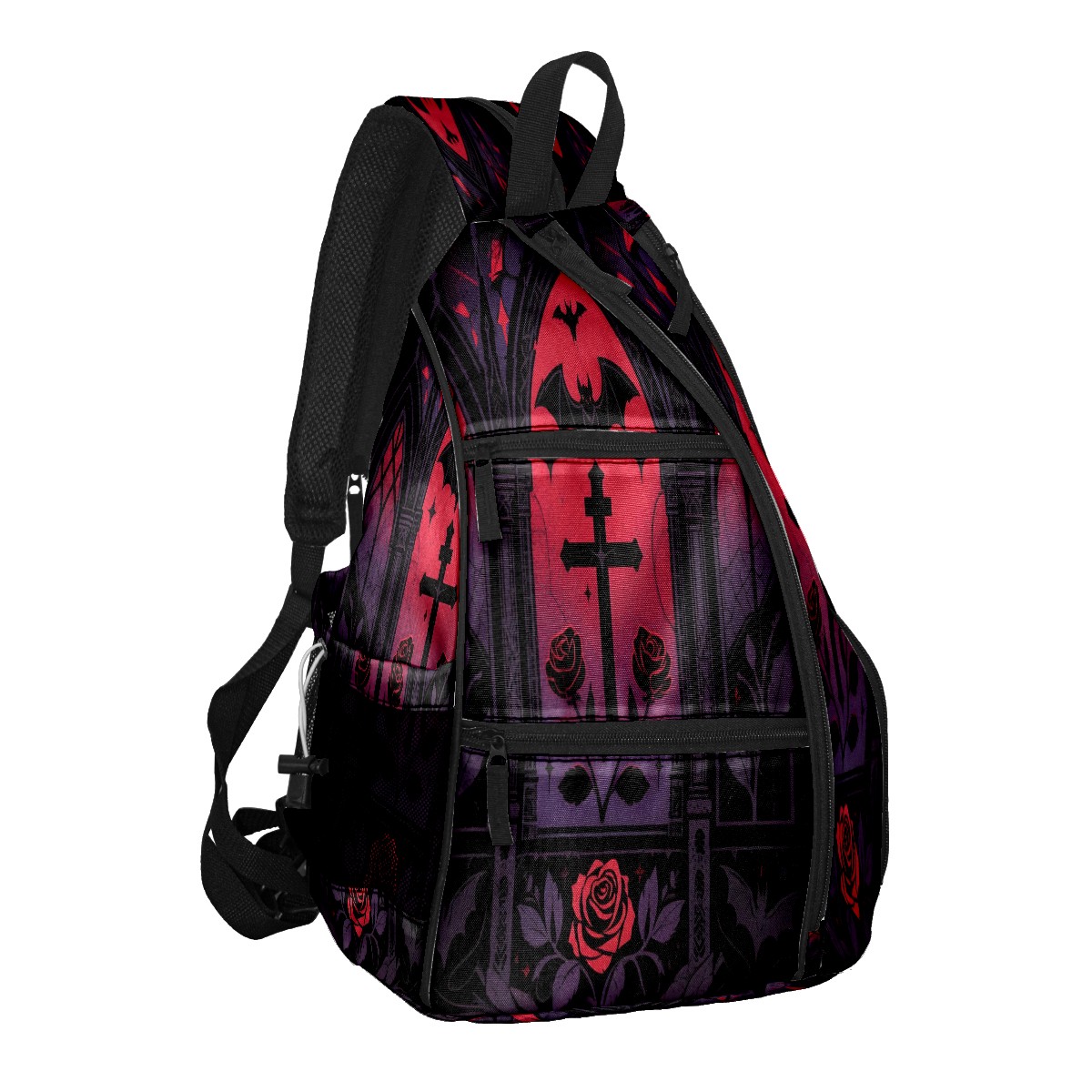 Pickleball Backpack - Convertible Shoulder Straps, Lightweight Breathable Retro Gothic Black Bag, Fits 2 Paddles, Balls & Gear (45x35x15cm)