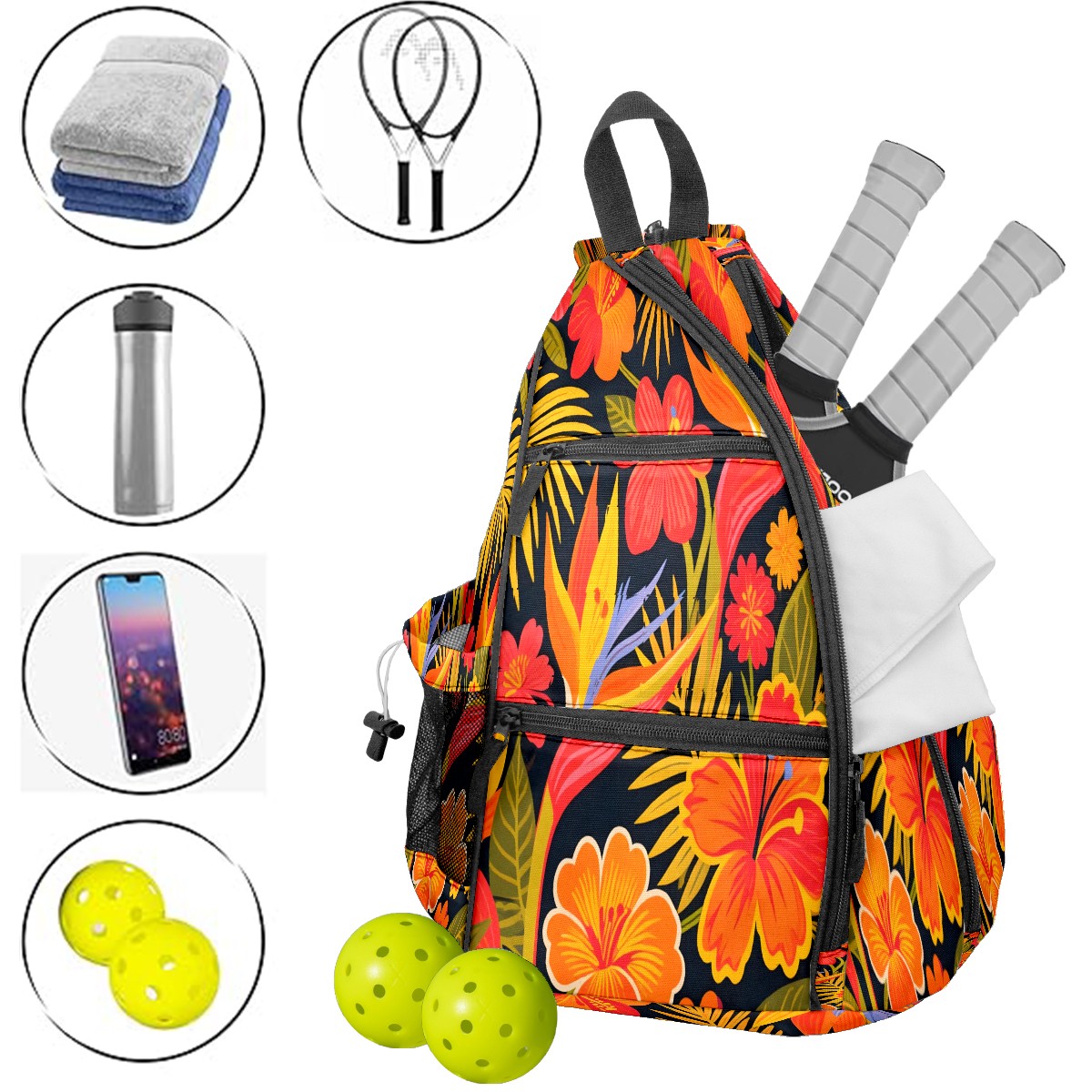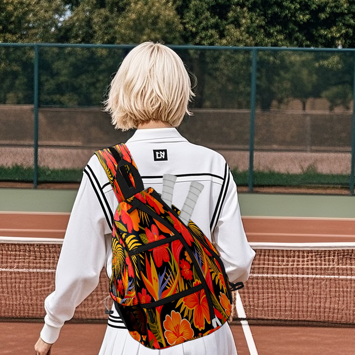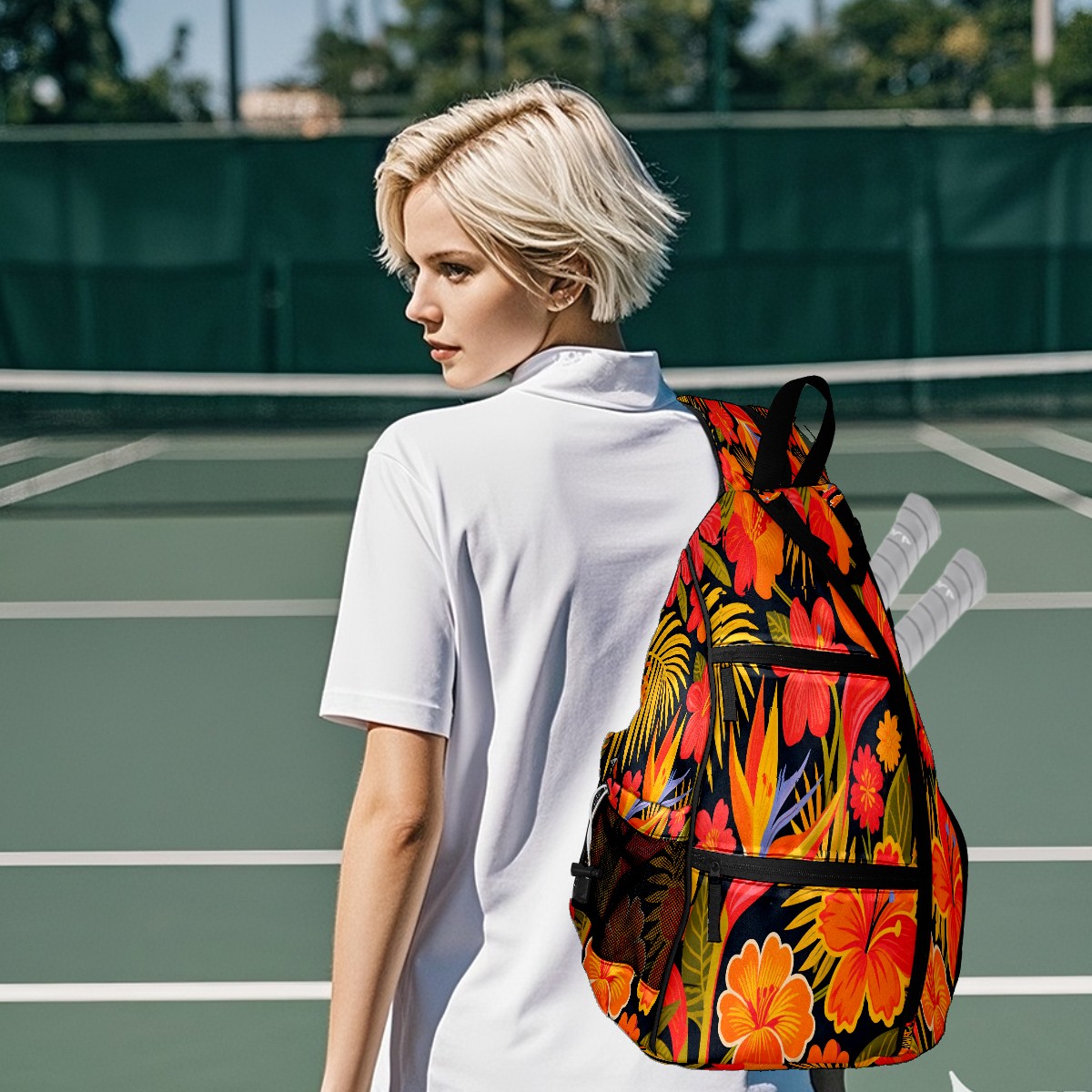 Pickleball Backpack - Convertible Shoulder Straps, Lightweight Breathable Flower Red Bag, Fits 2 Paddles, Balls & Gear (45x35x15cm)