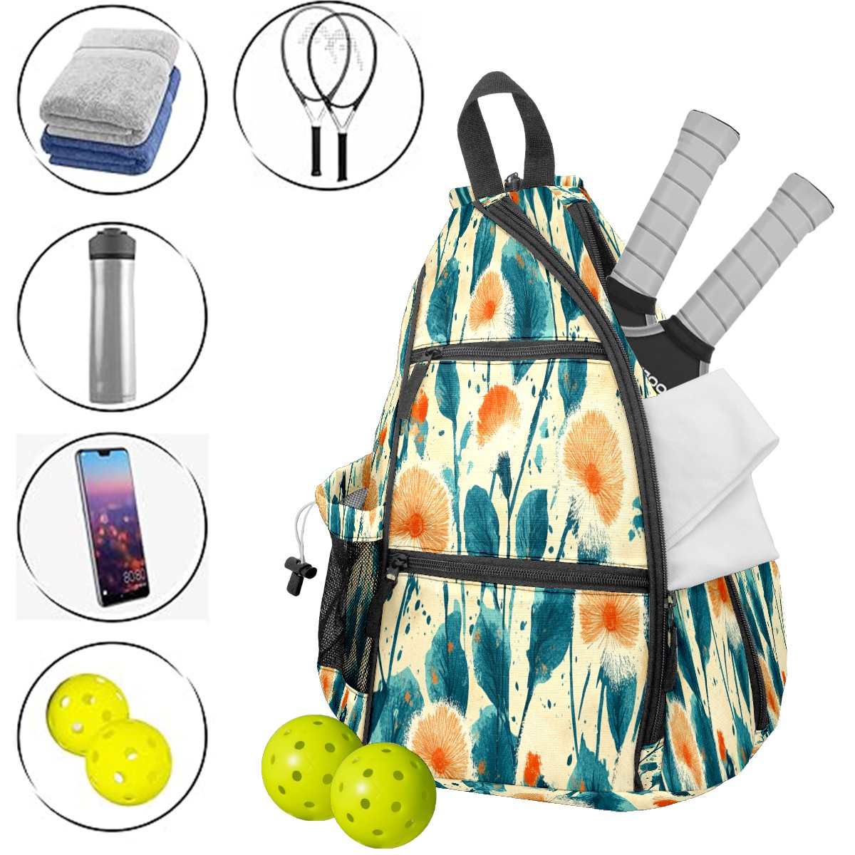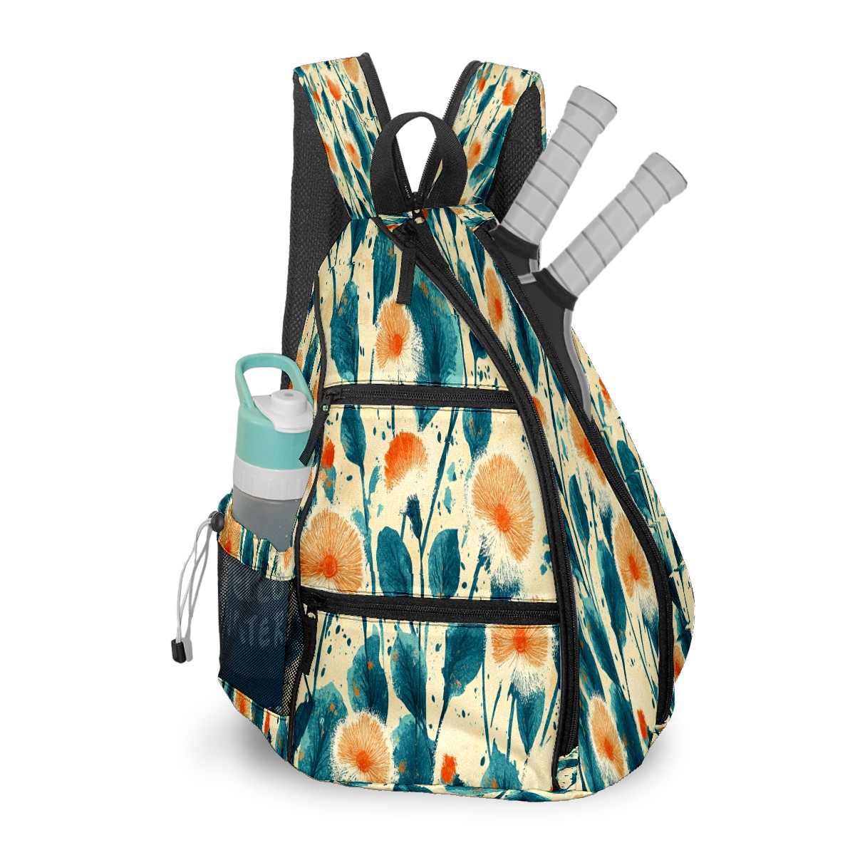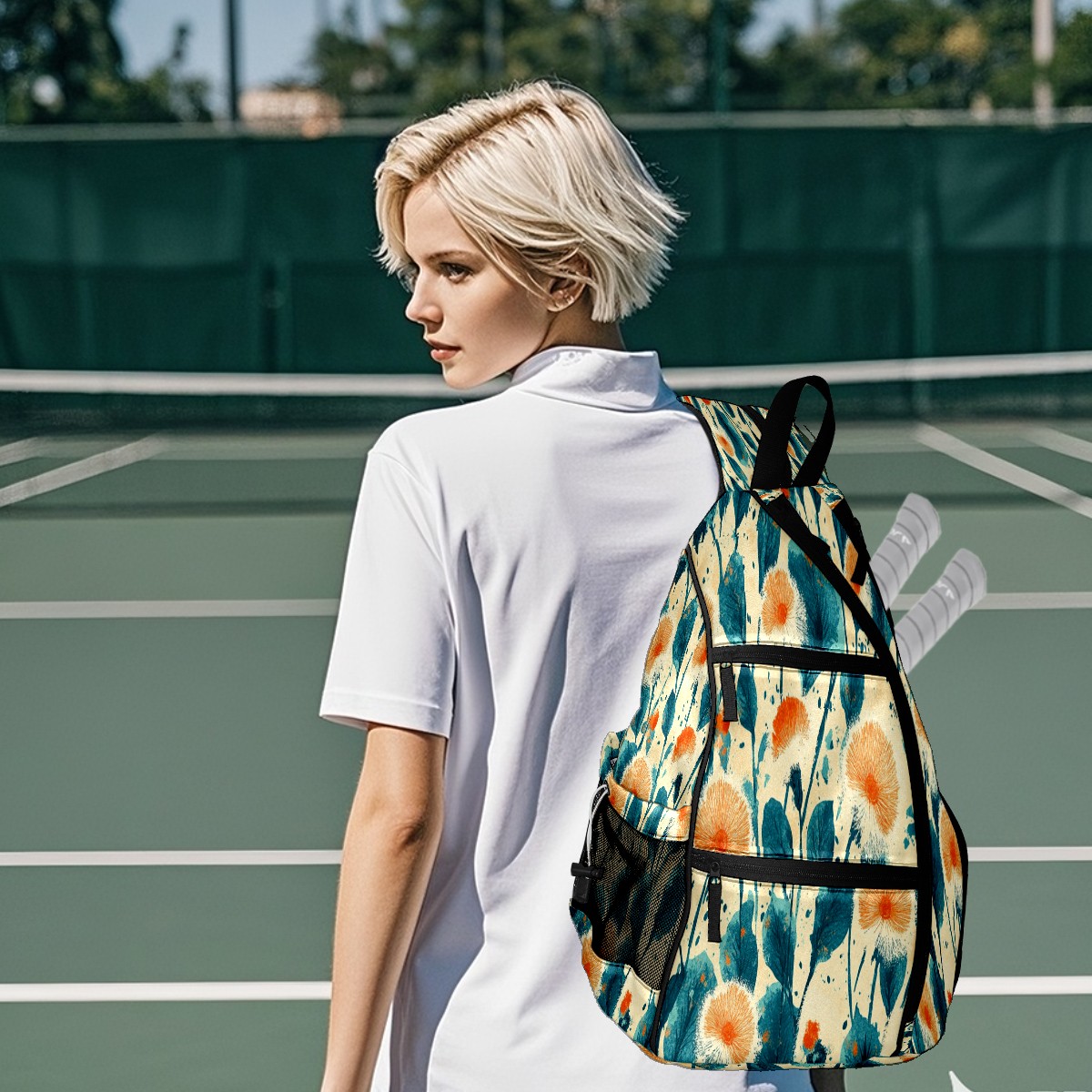 Pickleball Backpack - Convertible Shoulder Straps, Lightweight Breathable Flowers Beige Bag, Fits 2 Paddles, Balls & Gear (45x35x15cm)