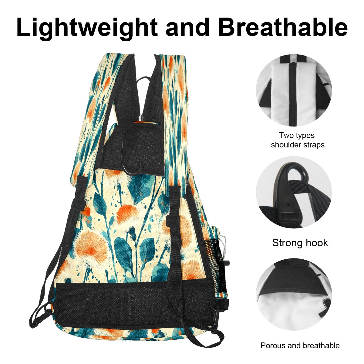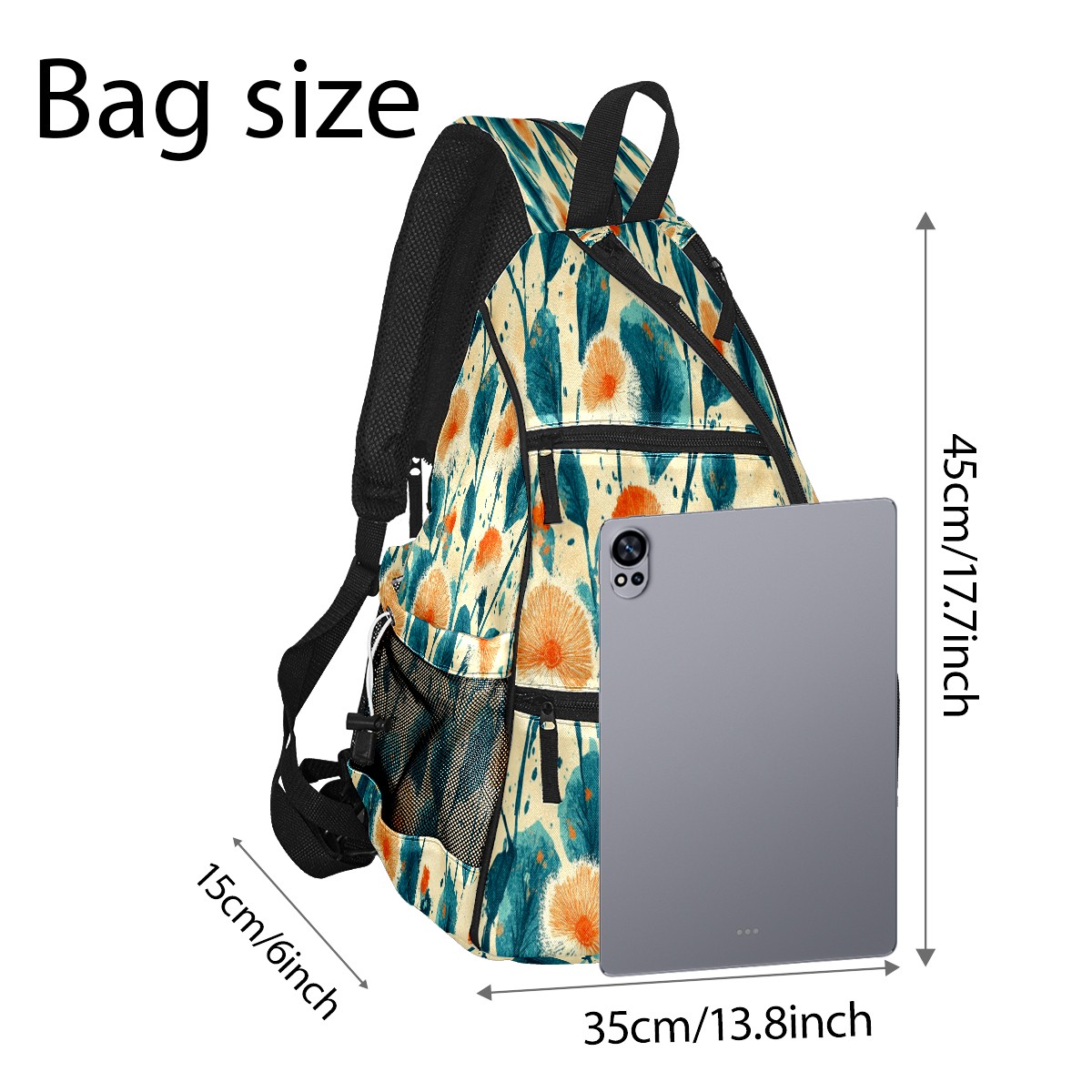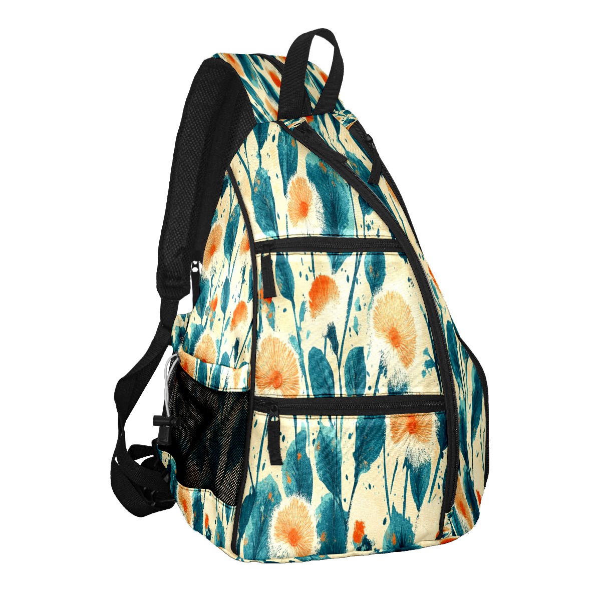 Pickleball Backpack - Convertible Shoulder Straps, Lightweight Breathable Flowers Beige Bag, Fits 2 Paddles, Balls & Gear (45x35x15cm)