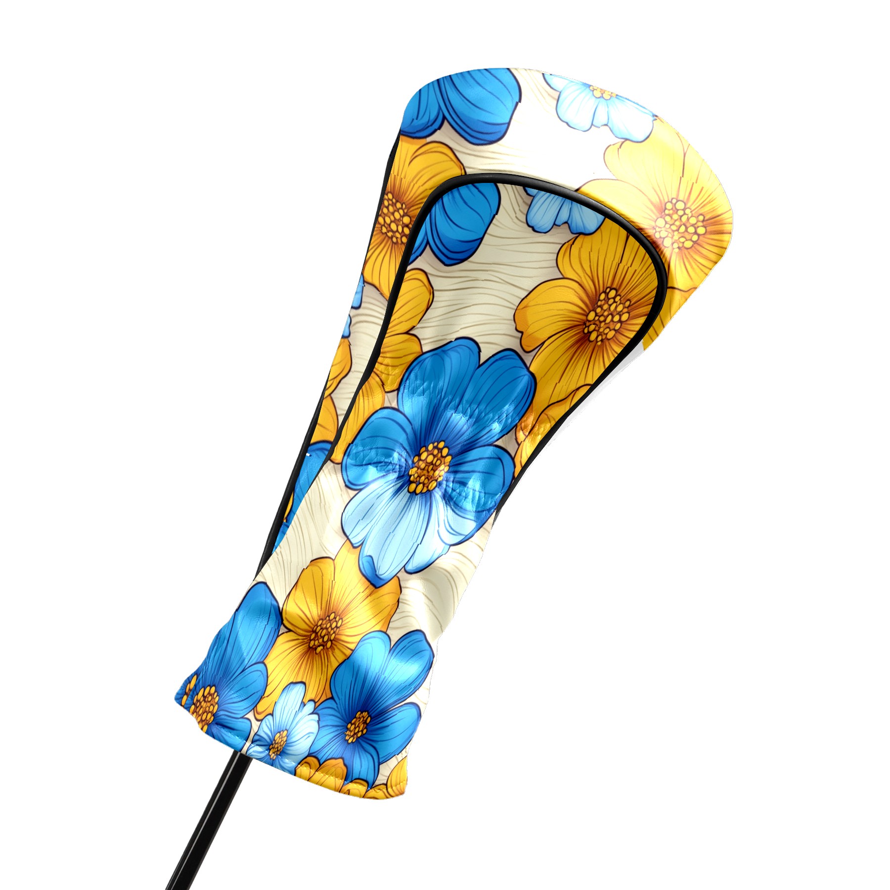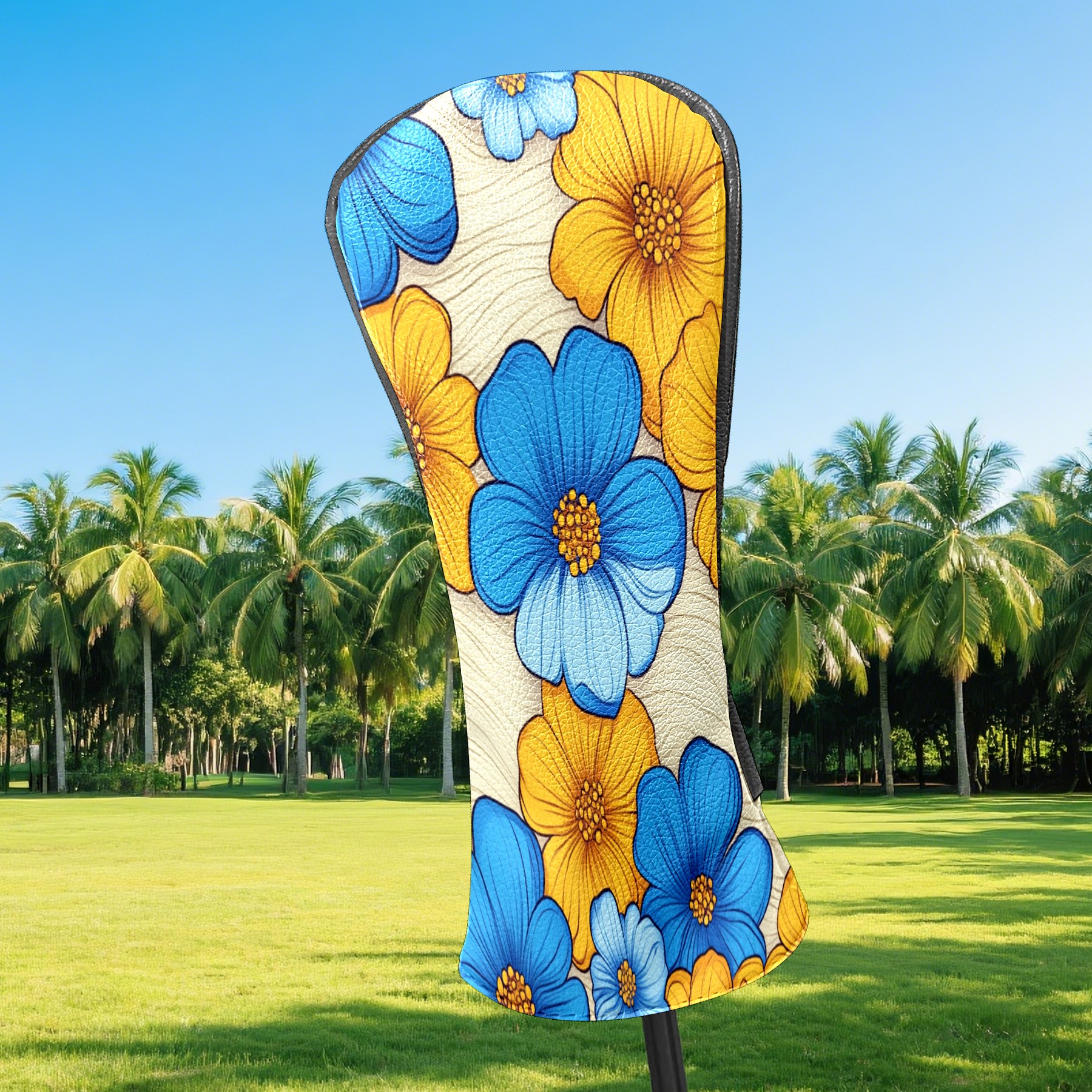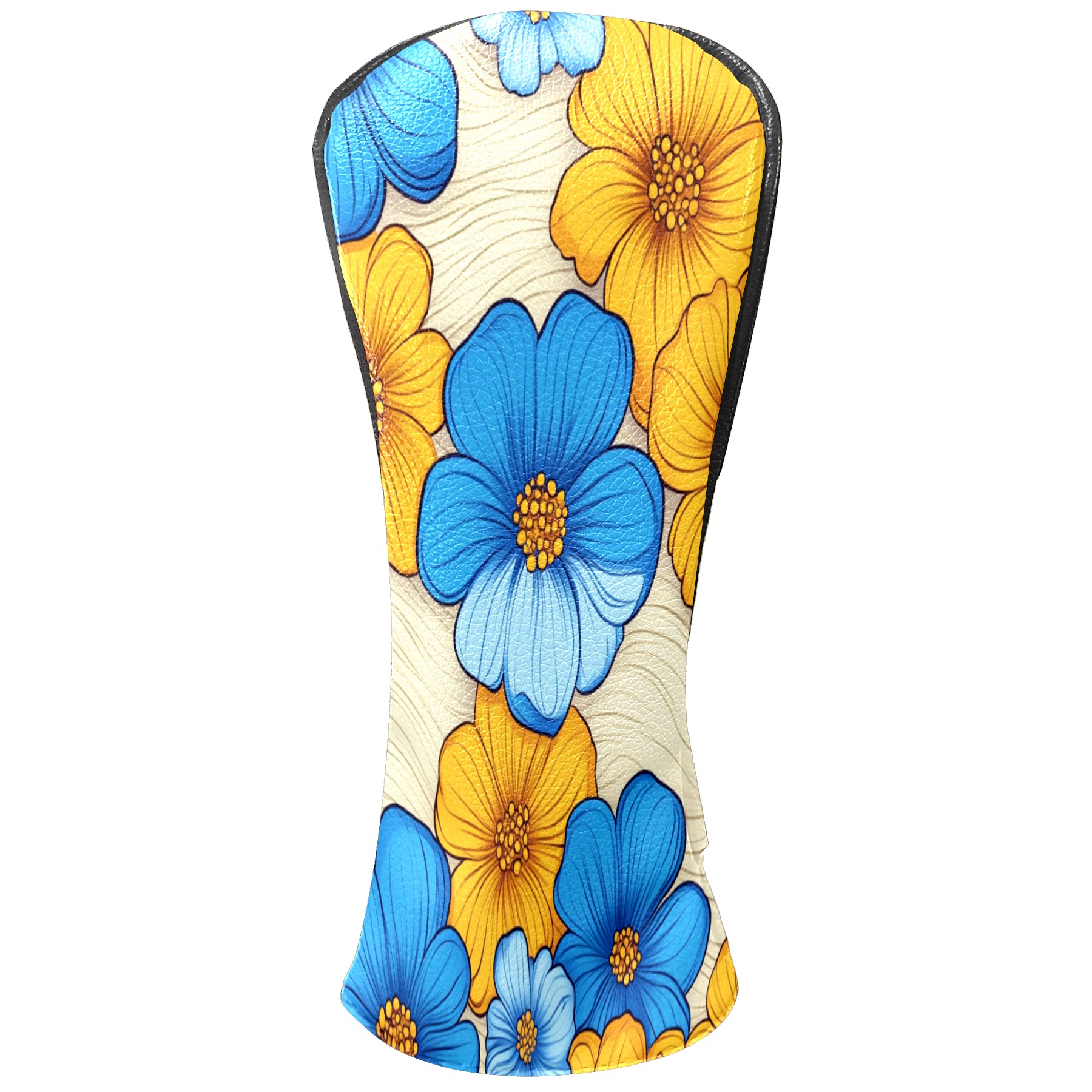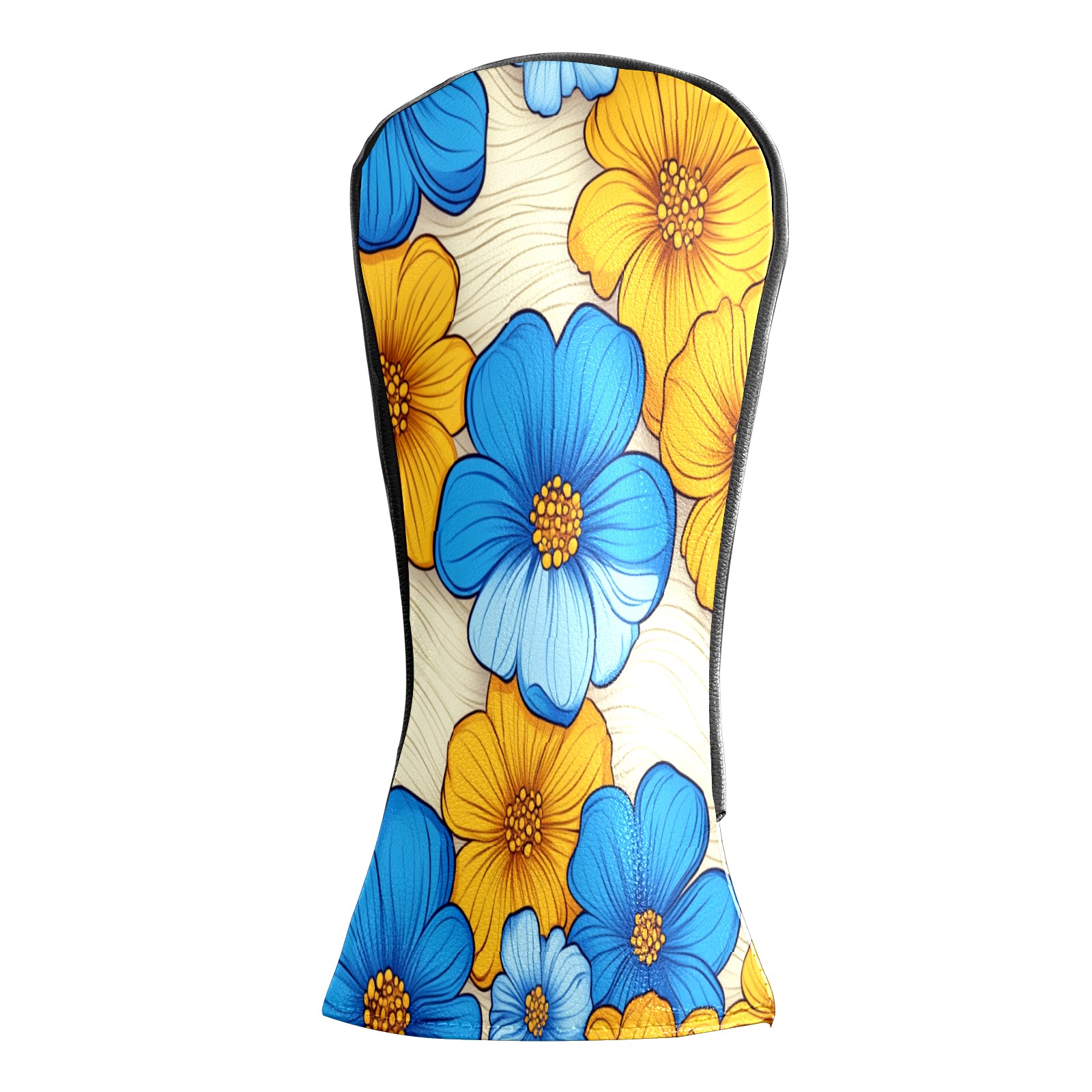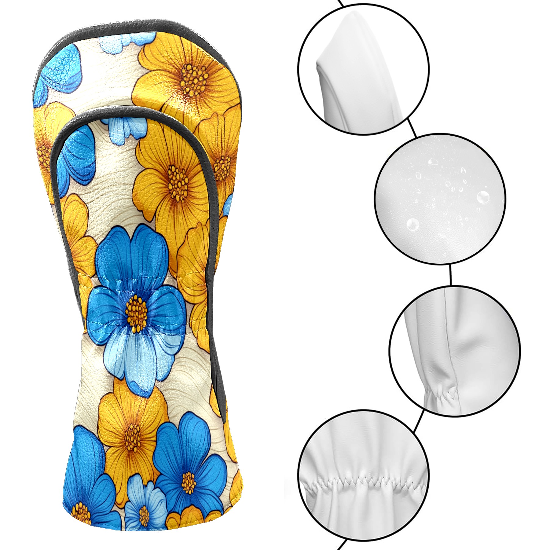 Golf Club Head Cover, High Quality PU Leather Driver and Wood Club Head Cover with Anti-Scratch Lining, Yellow Blue Flowers Universal Gift for Men and Women