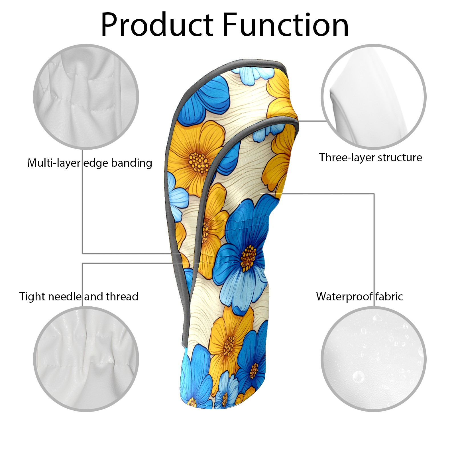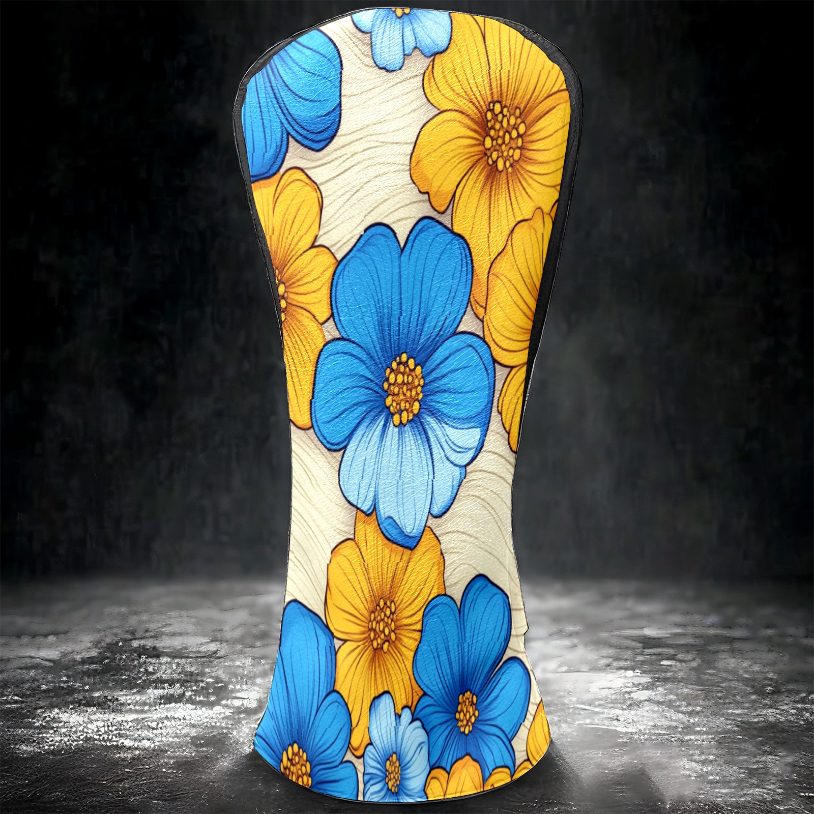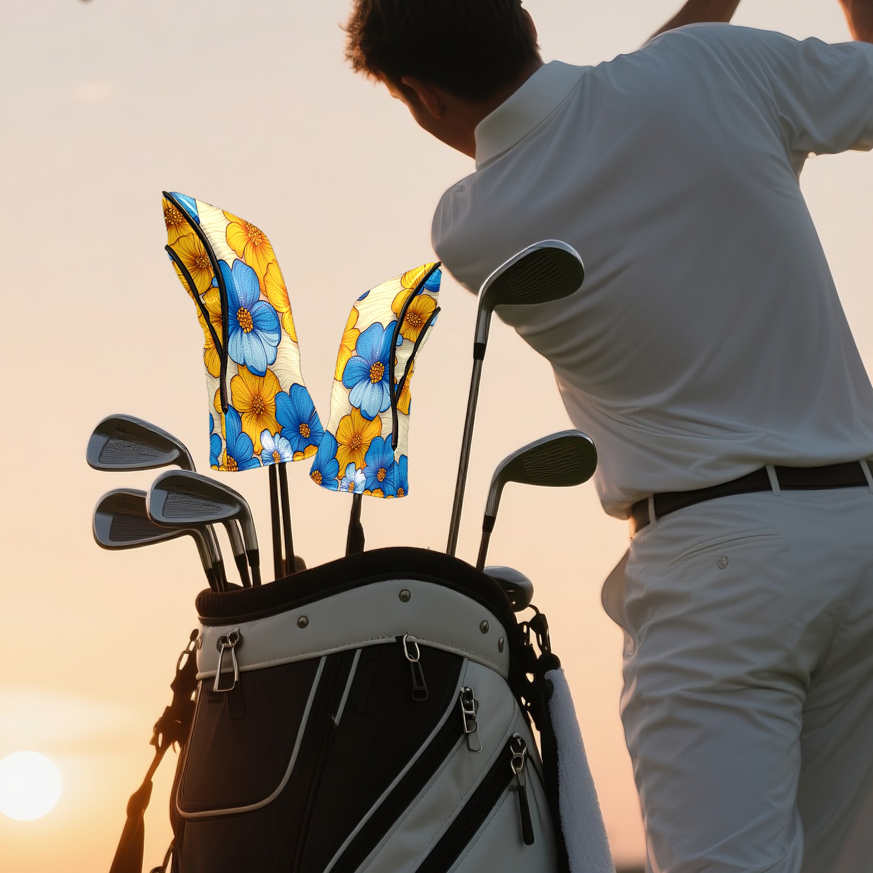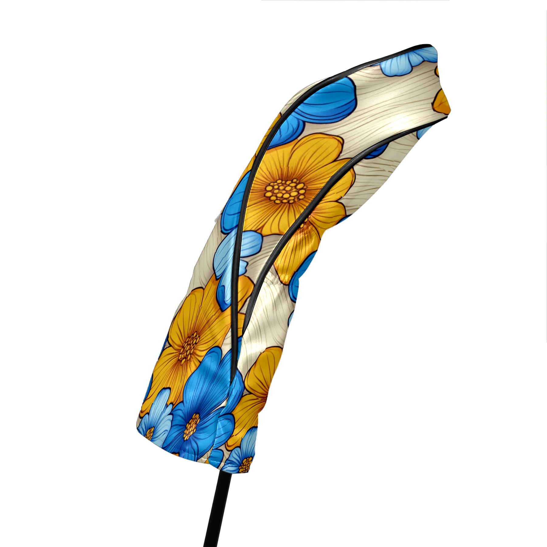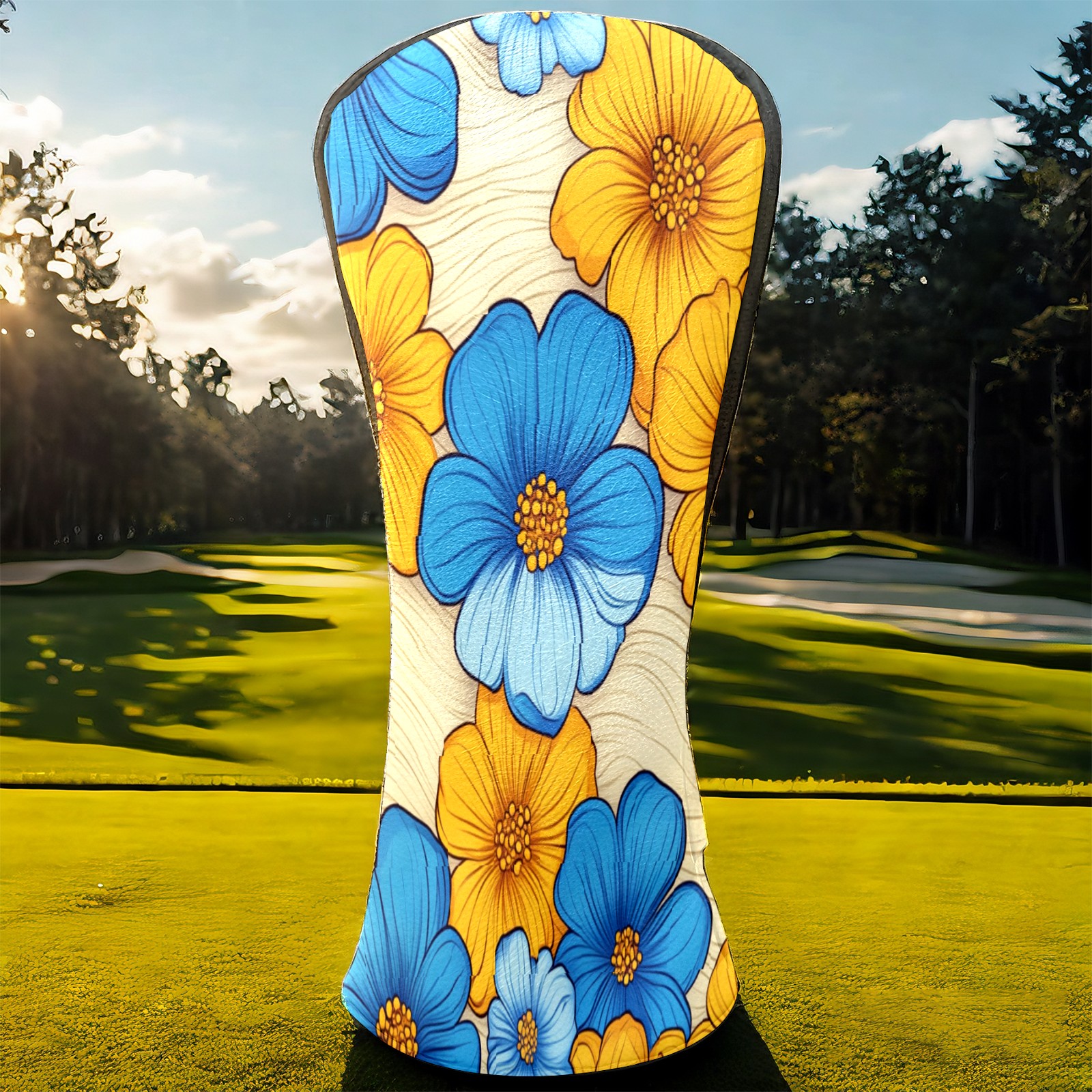 Golf Club Head Cover, High Quality PU Leather Driver and Wood Club Head Cover with Anti-Scratch Lining, Yellow Blue Flowers Universal Gift for Men and Women