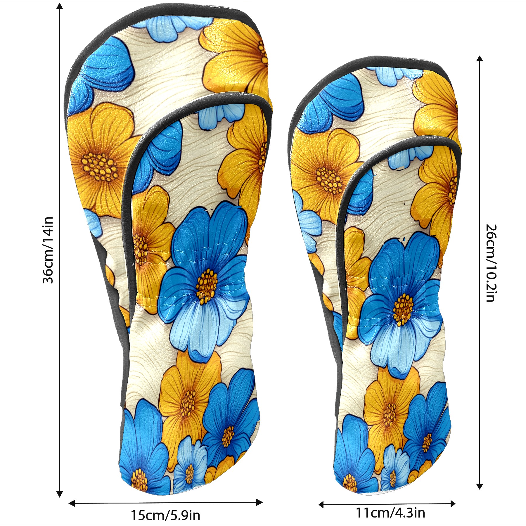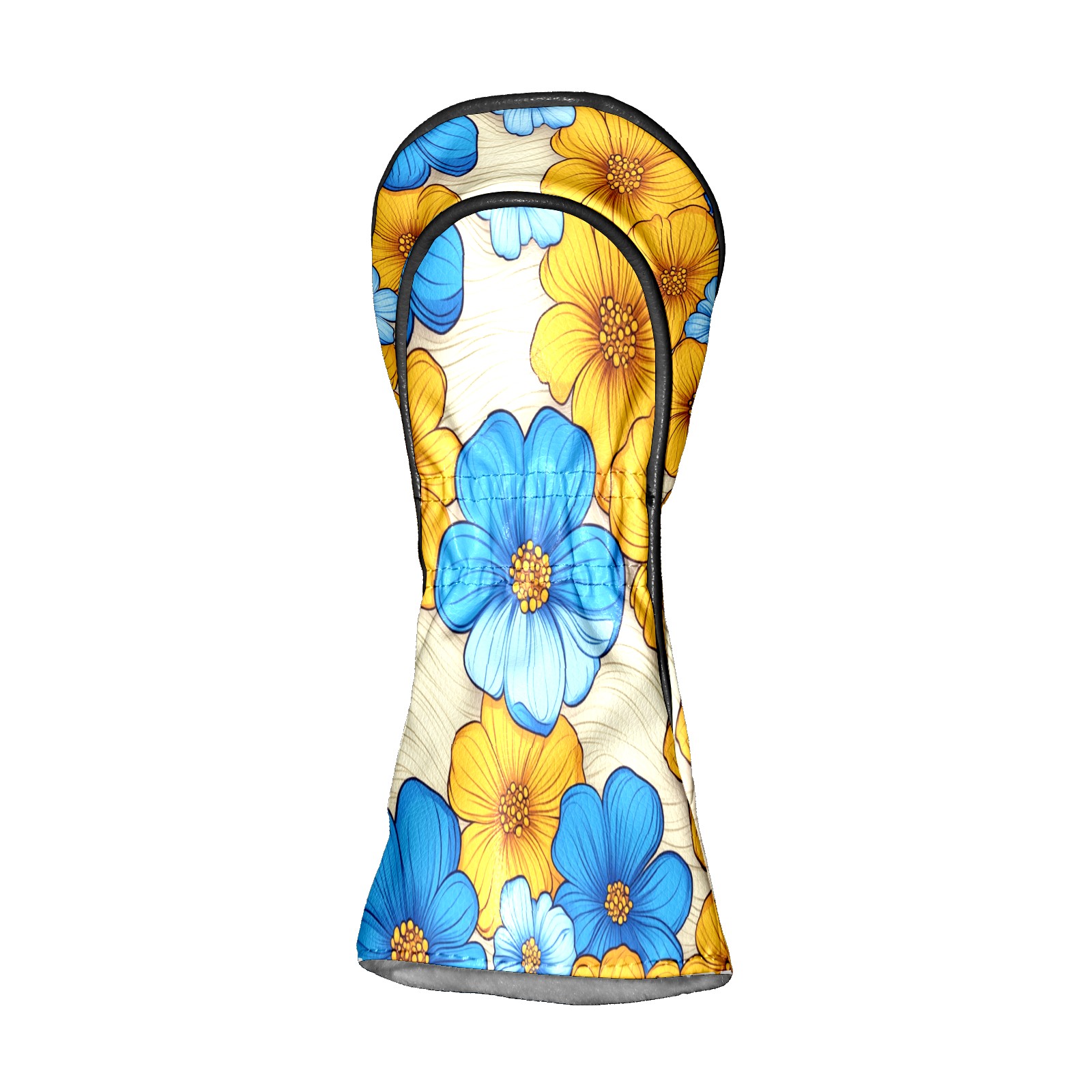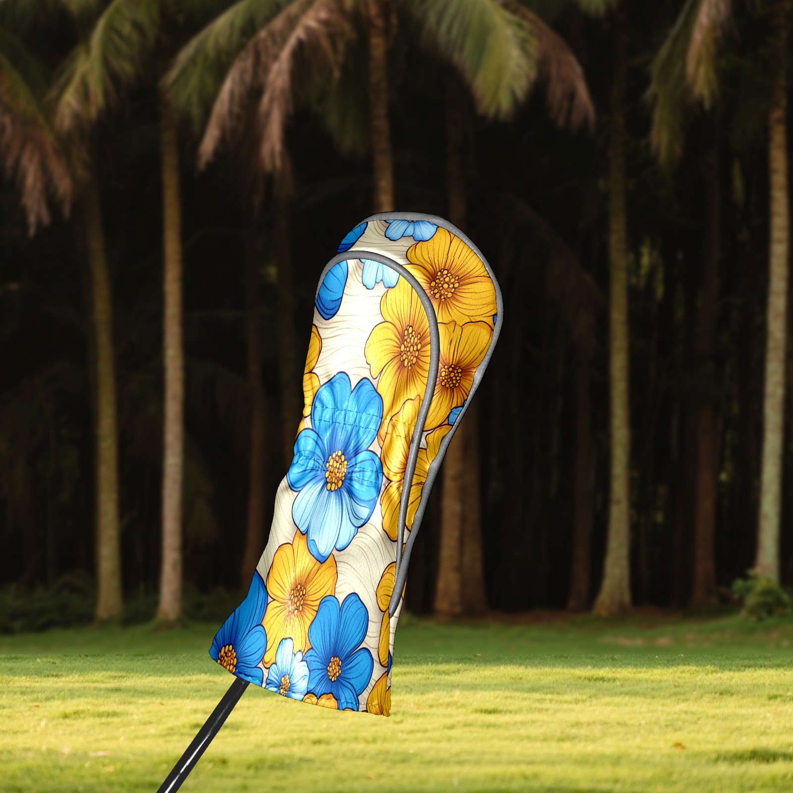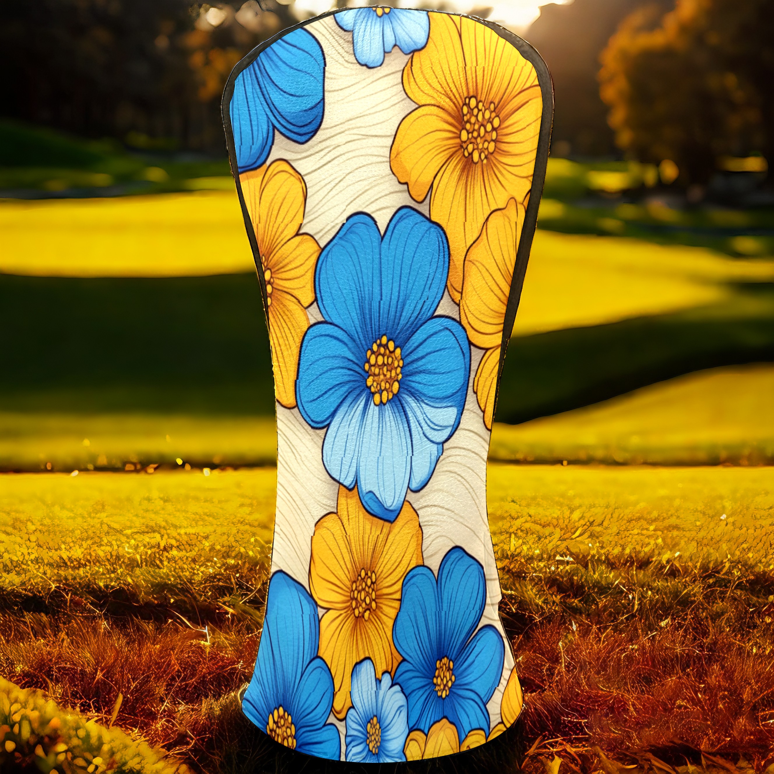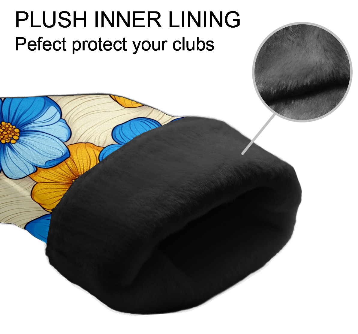 Golf Club Head Cover, High Quality PU Leather Driver and Wood Club Head Cover with Anti-Scratch Lining, Yellow Blue Flowers Universal Gift for Men and Women