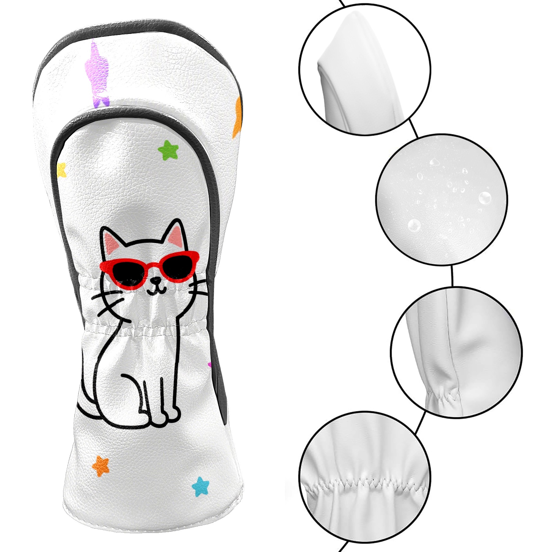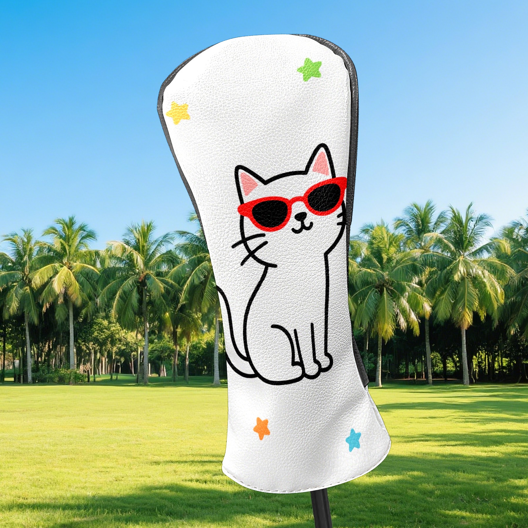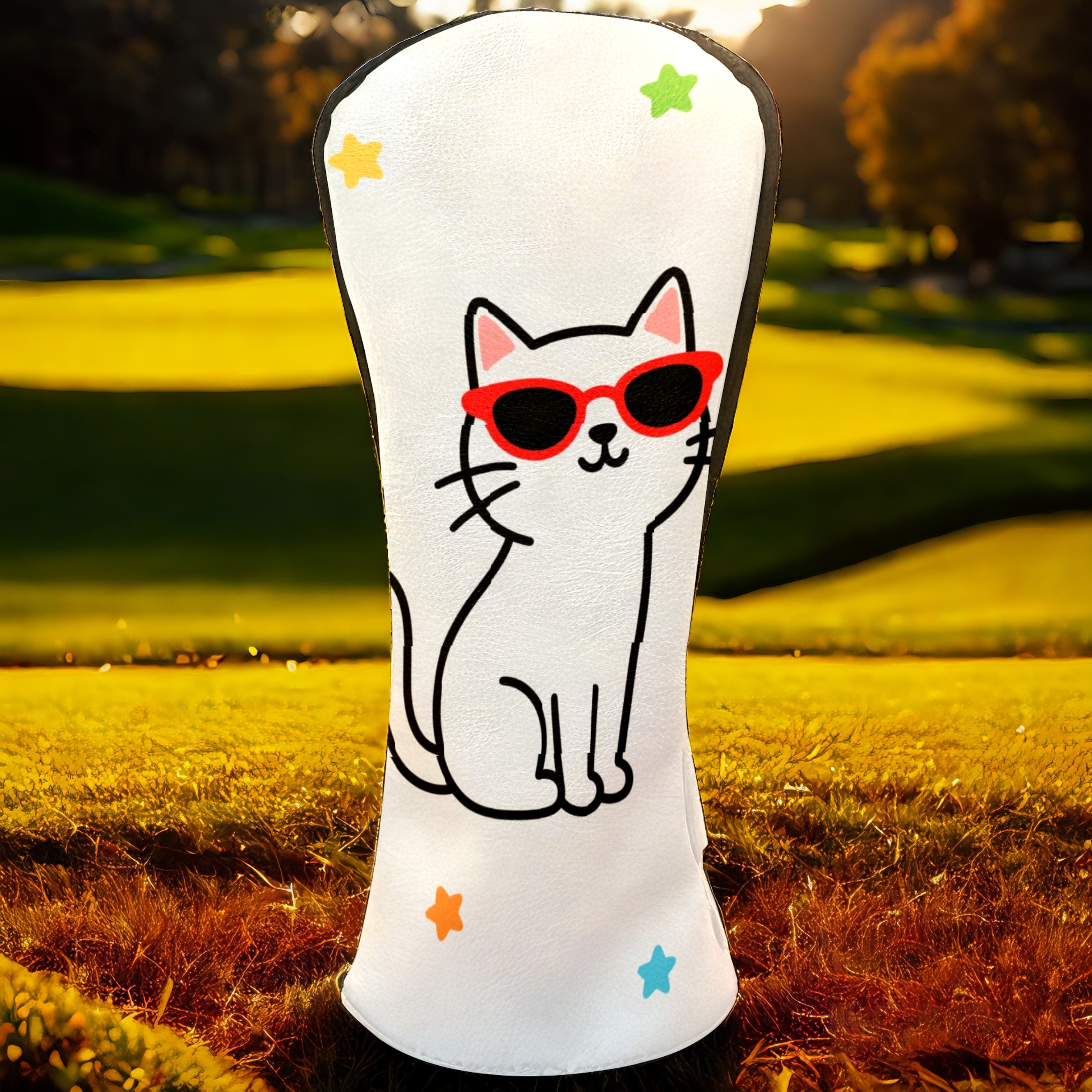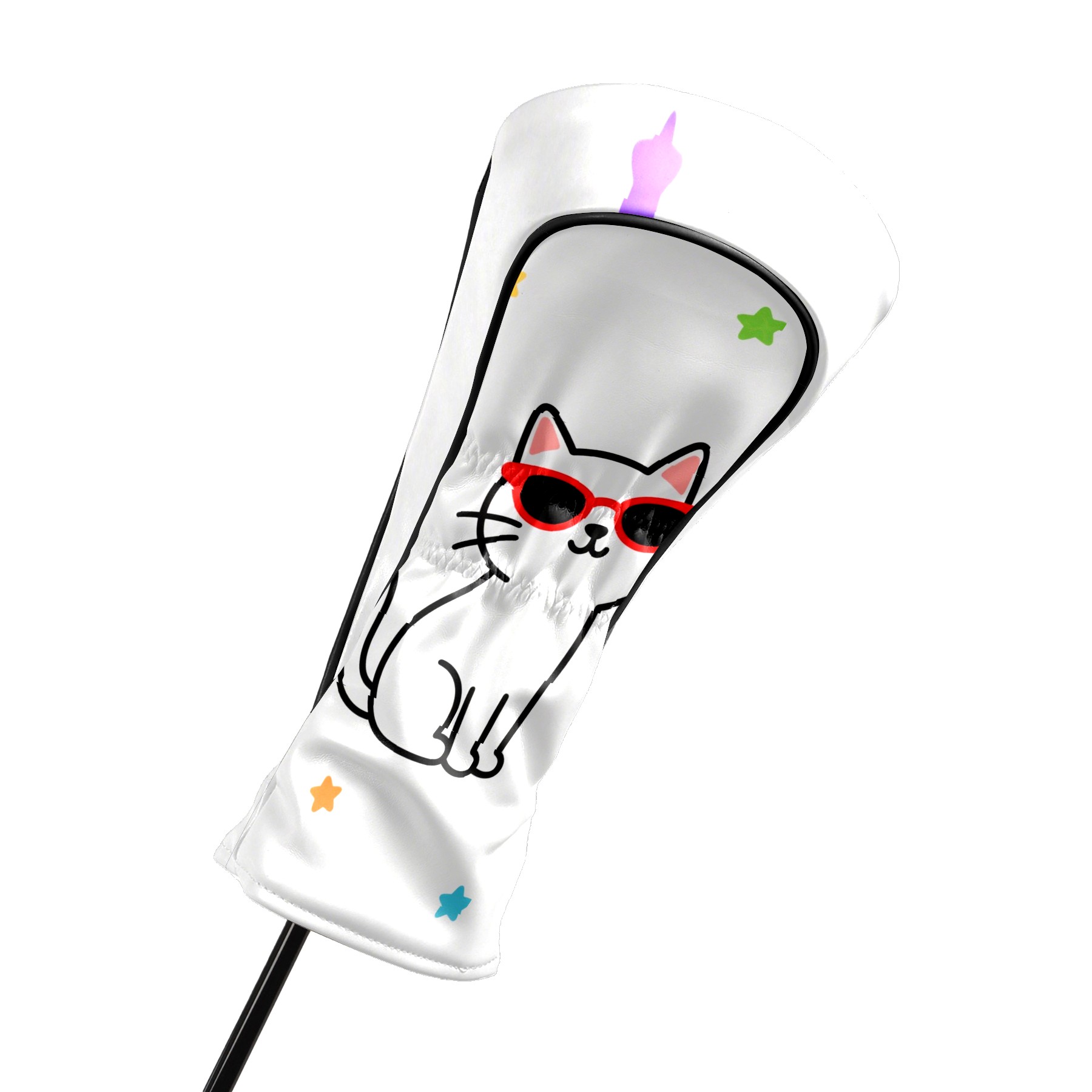 Golf Headcovers Fits Driver Hybrid Fairway 3/5 Wood, Waterproof PU Leather Golf Club Protector, Ideal Sports Accessories & Golfer Gift Cool Cat