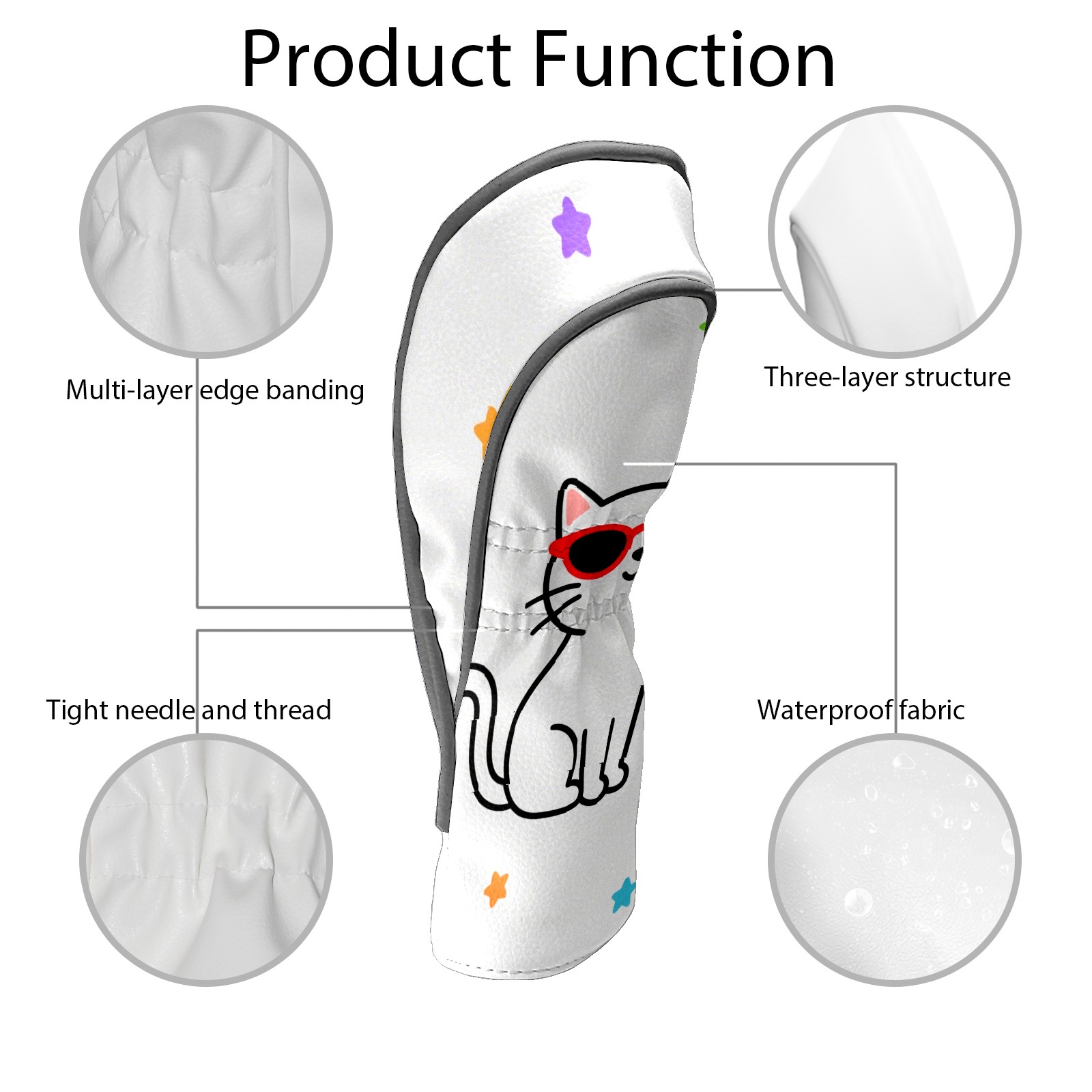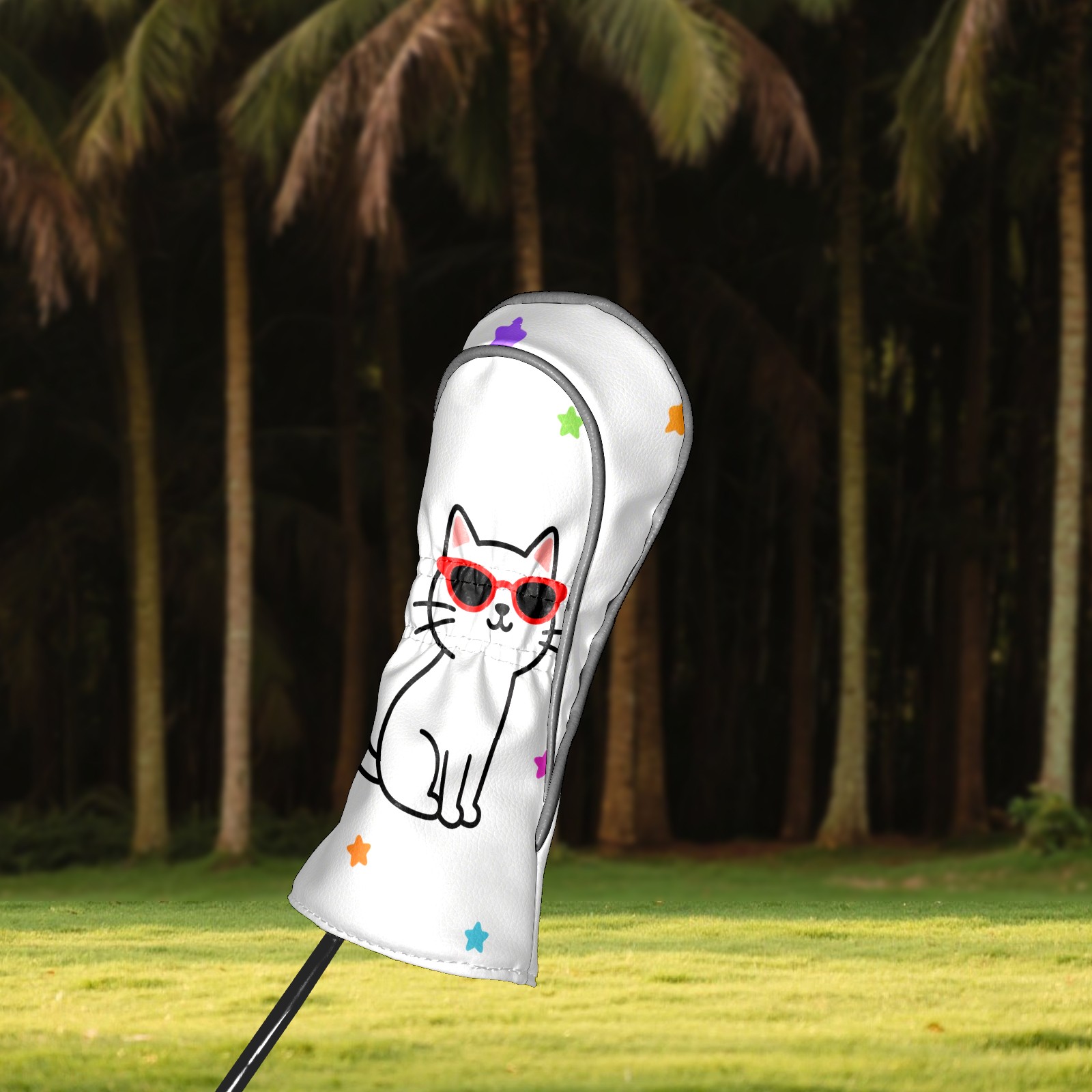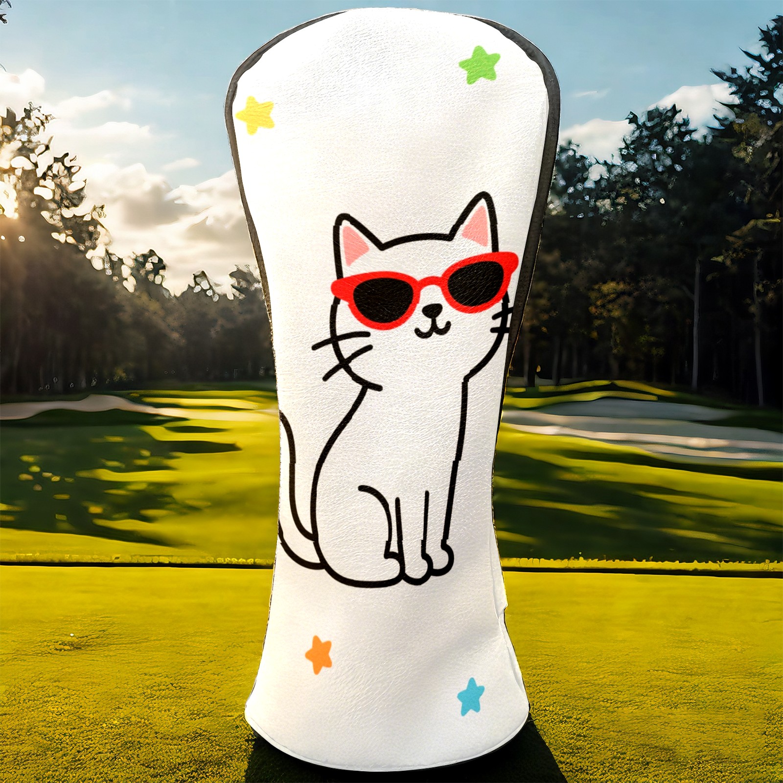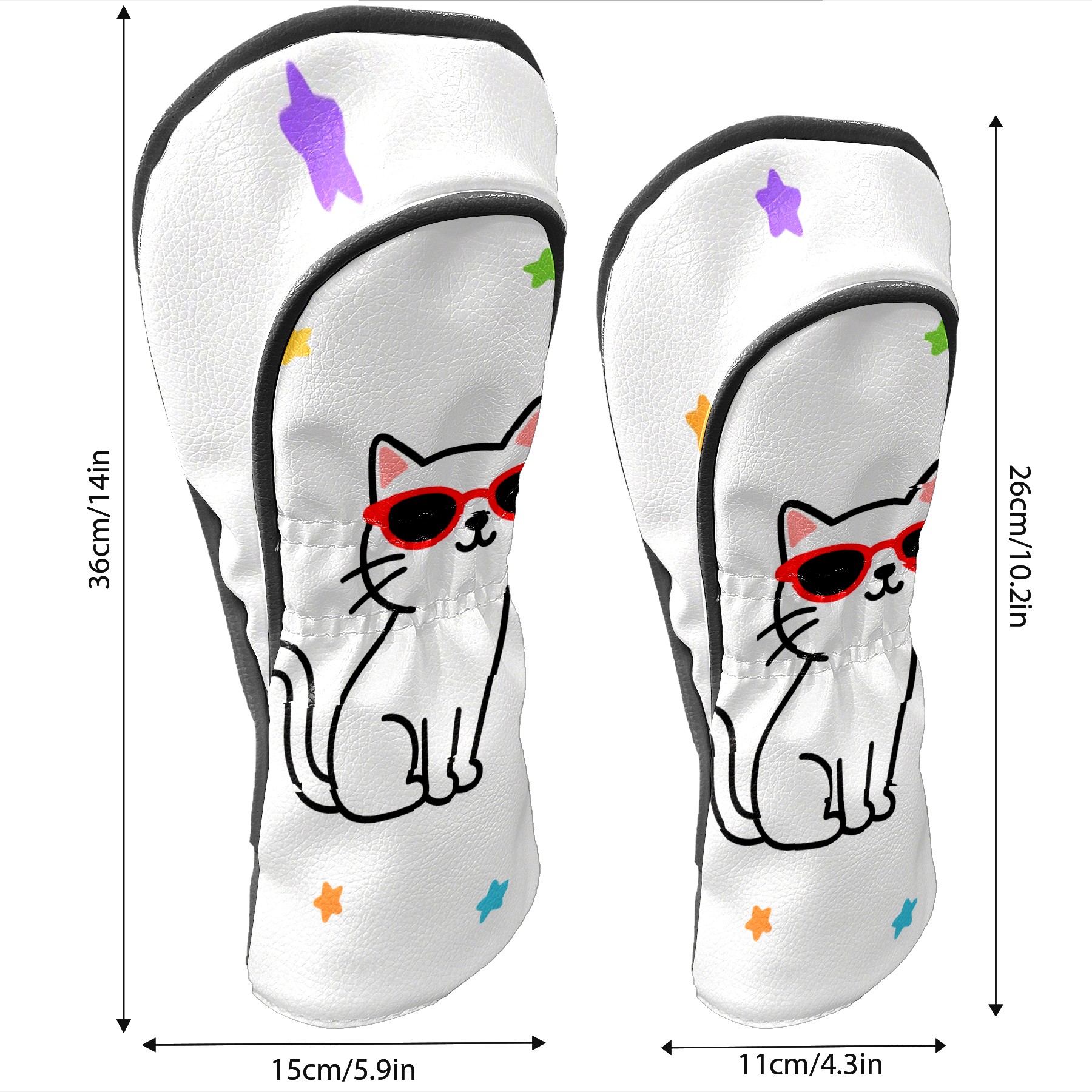 Golf Headcovers Fits Driver Hybrid Fairway 3/5 Wood, Waterproof PU Leather Golf Club Protector, Ideal Sports Accessories & Golfer Gift Cool Cat
