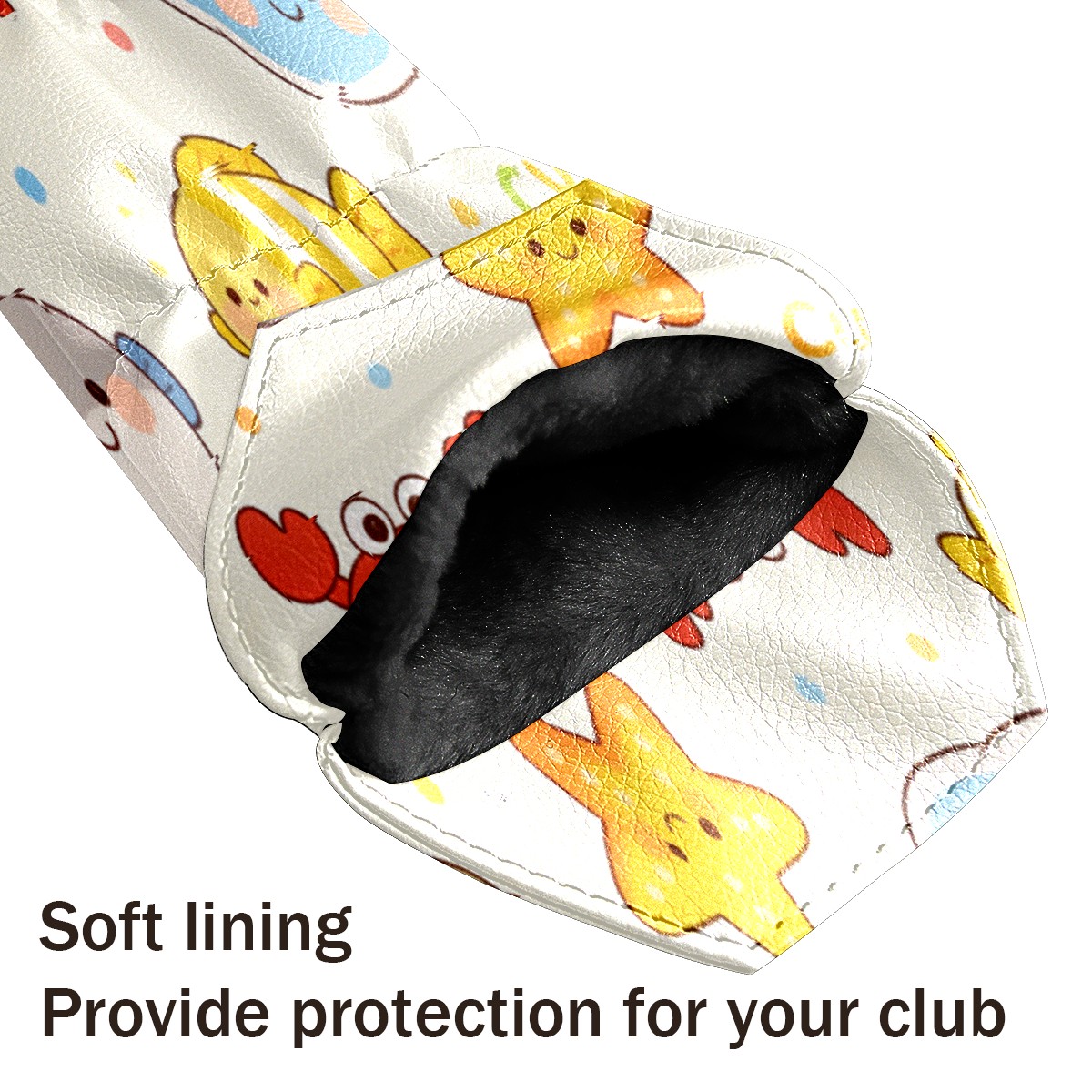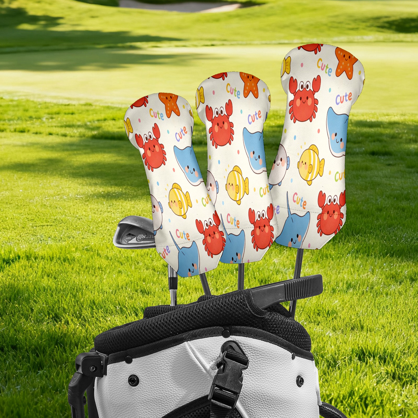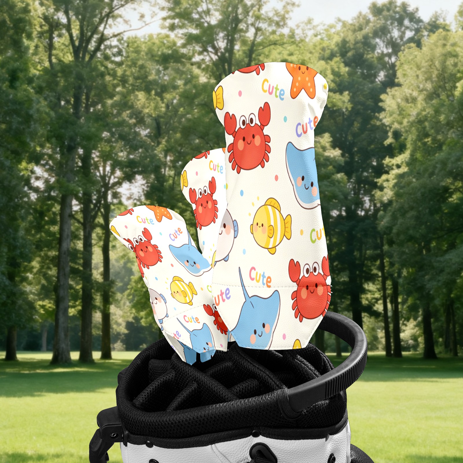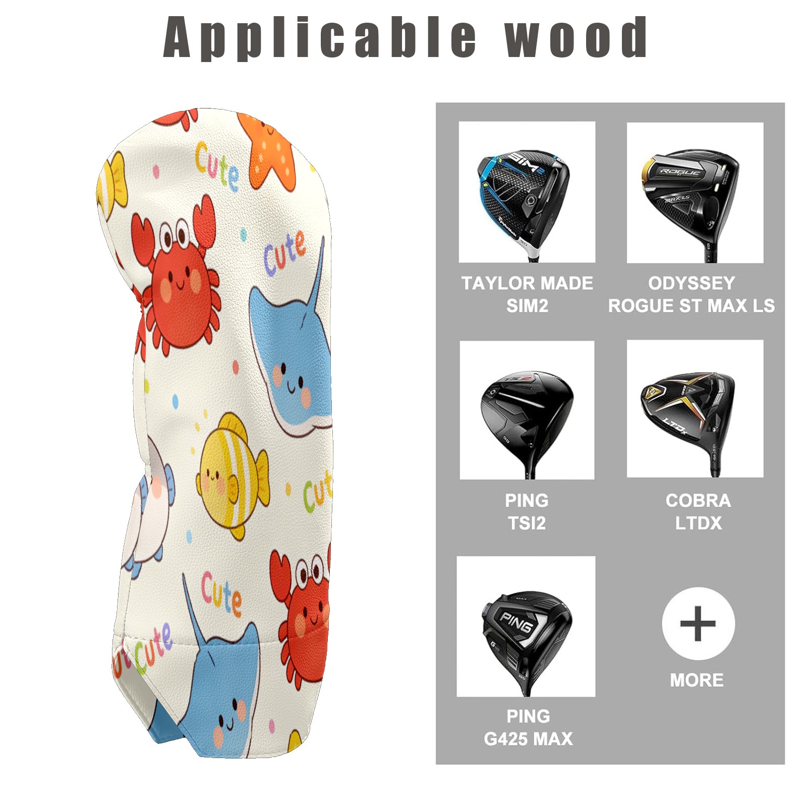 Golf Club Covers for Woods and Driver Hybrid Velvet Cover Leather Golf Headcover for Most Brand Club Men Women Cartoon Marine Life