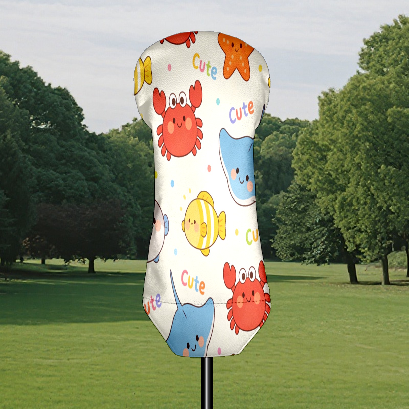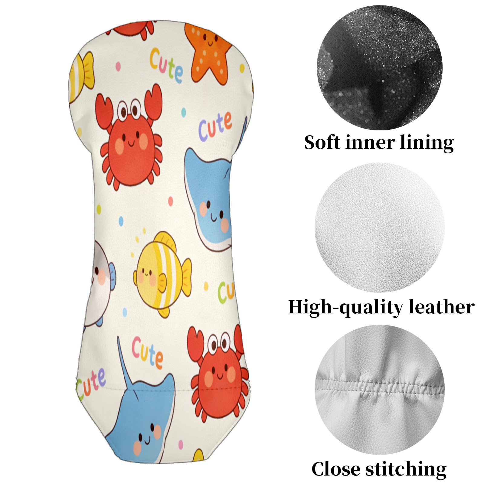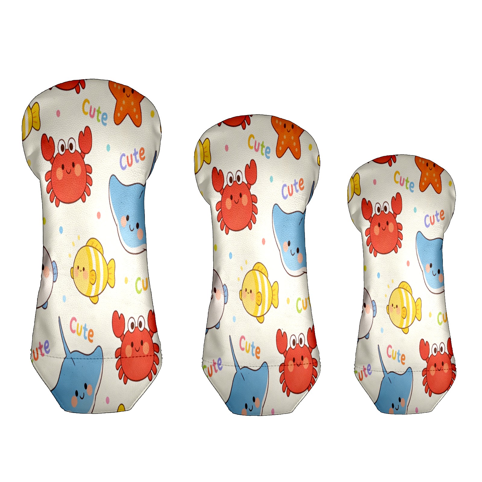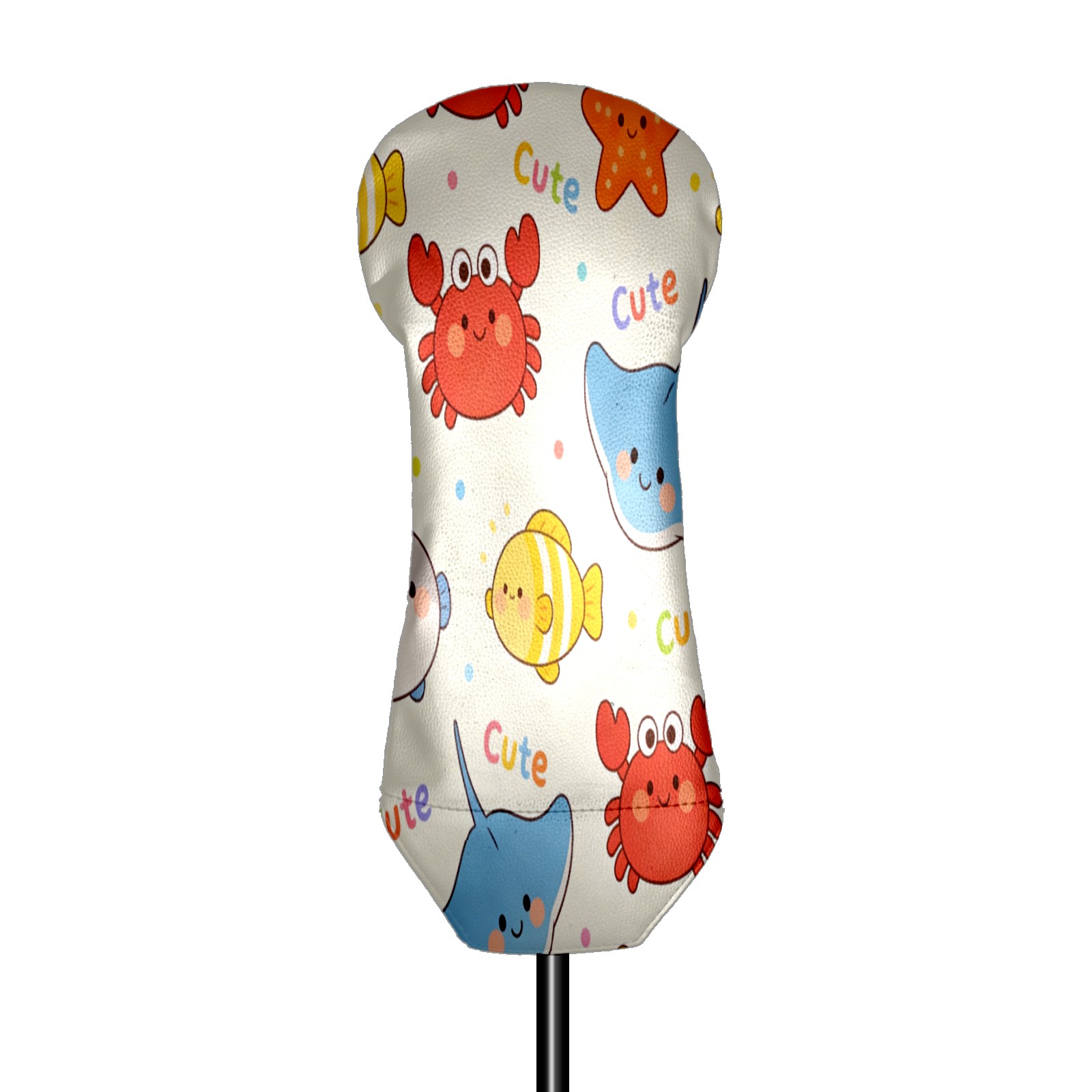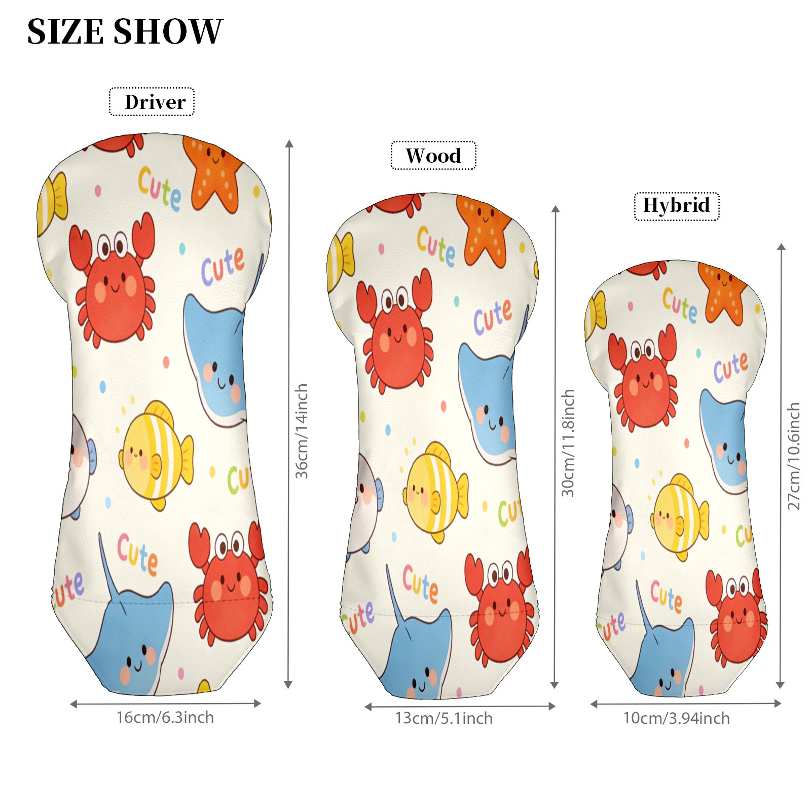 Golf Club Covers for Woods and Driver Hybrid Velvet Cover Leather Golf Headcover for Most Brand Club Men Women Cartoon Marine Life