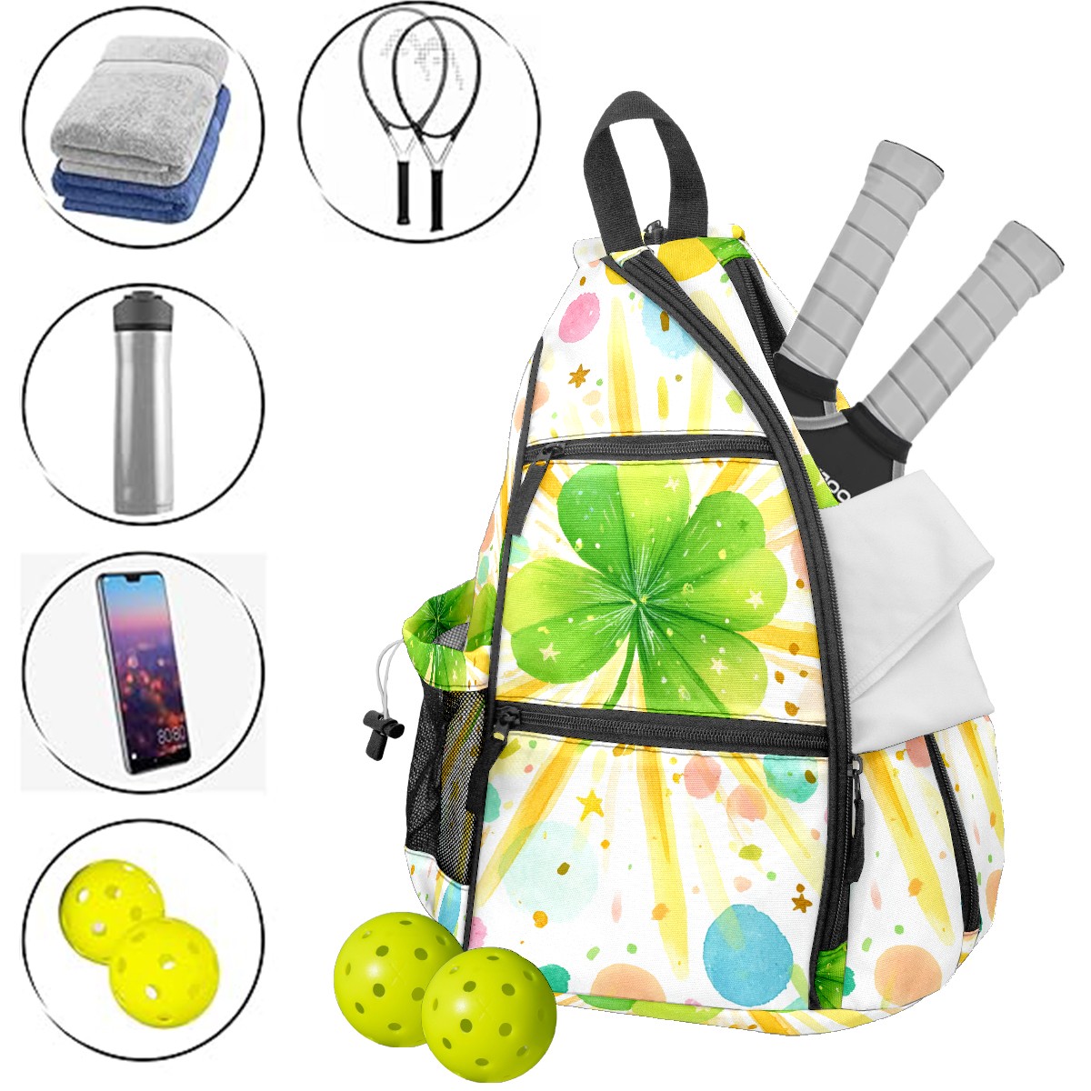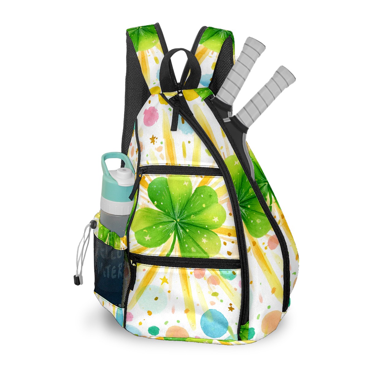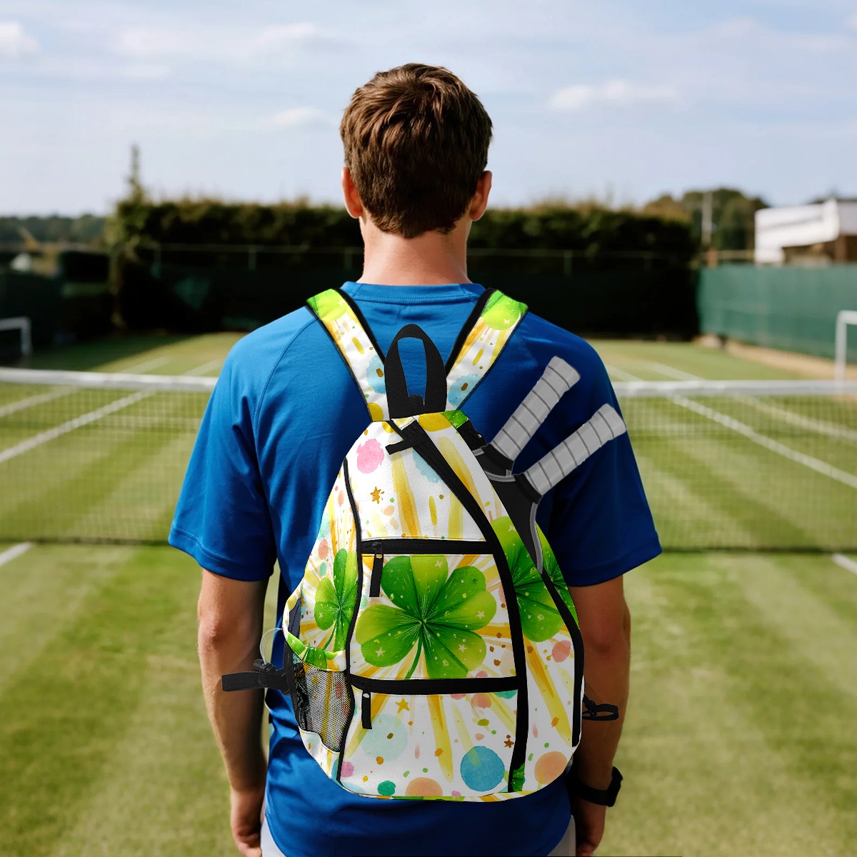 Pickleball Backpack - Convertible Shoulder Straps, Lightweight Breathable Fresh Clover Multi Bag, Fits 2 Paddles, Balls & Gear (45x35x15cm)