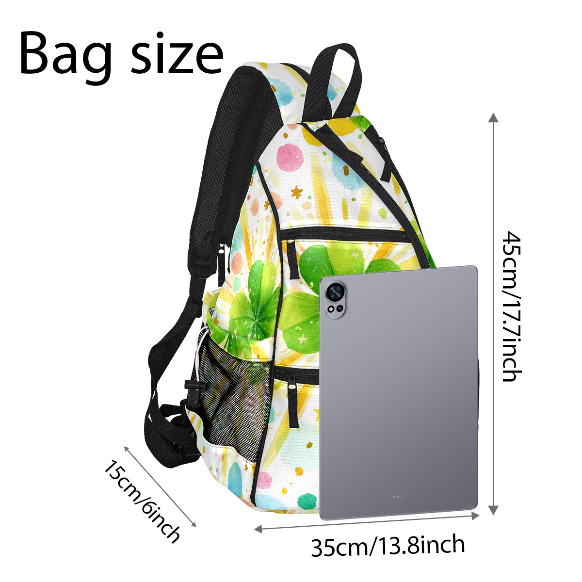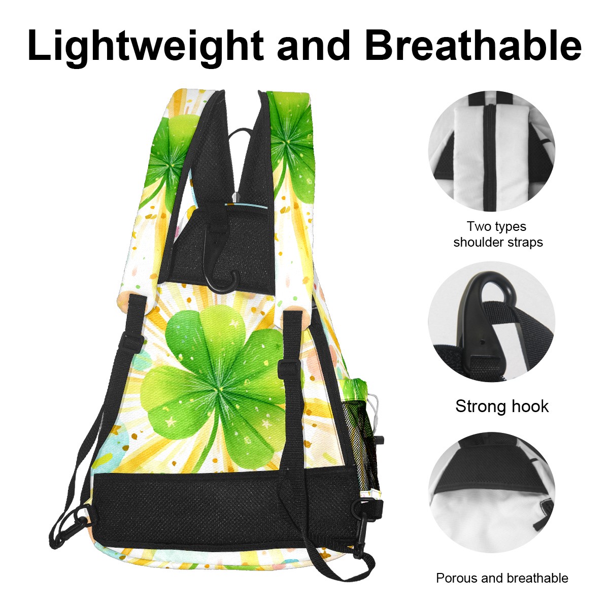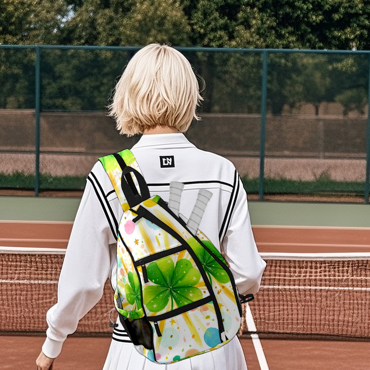 Pickleball Backpack - Convertible Shoulder Straps, Lightweight Breathable Fresh Clover Multi Bag, Fits 2 Paddles, Balls & Gear (45x35x15cm)
