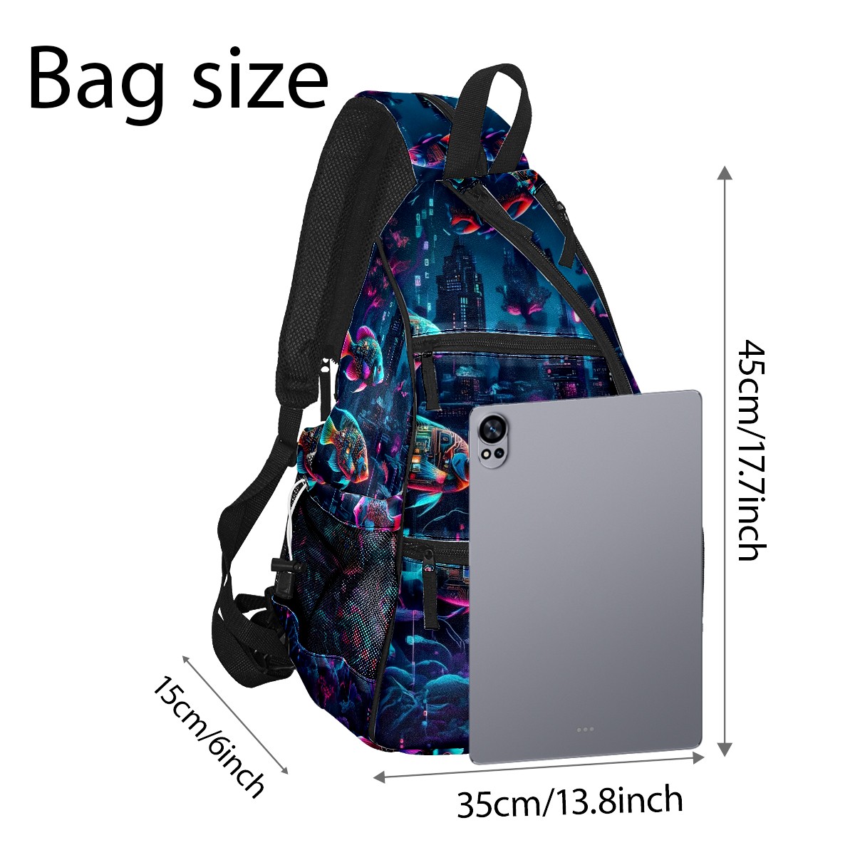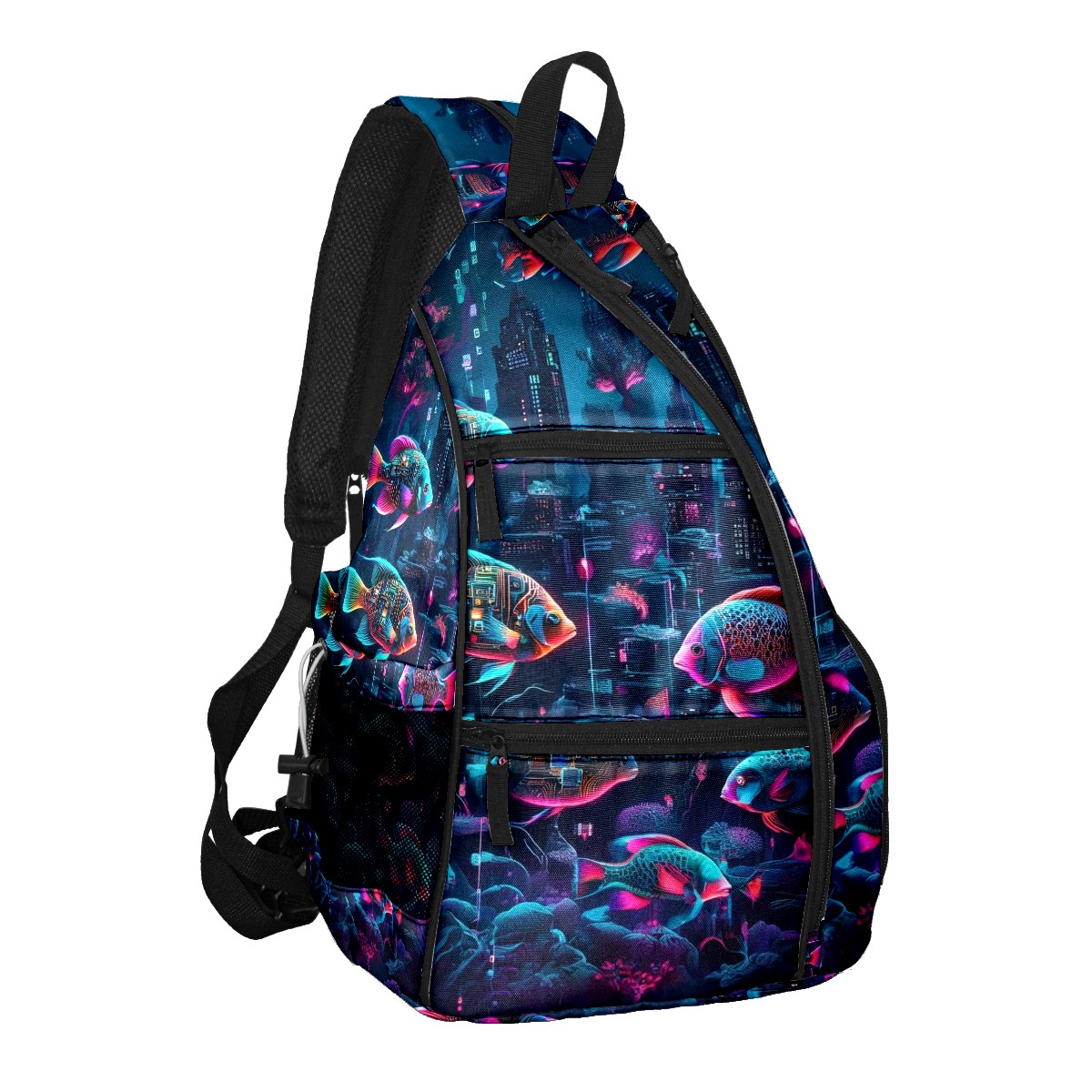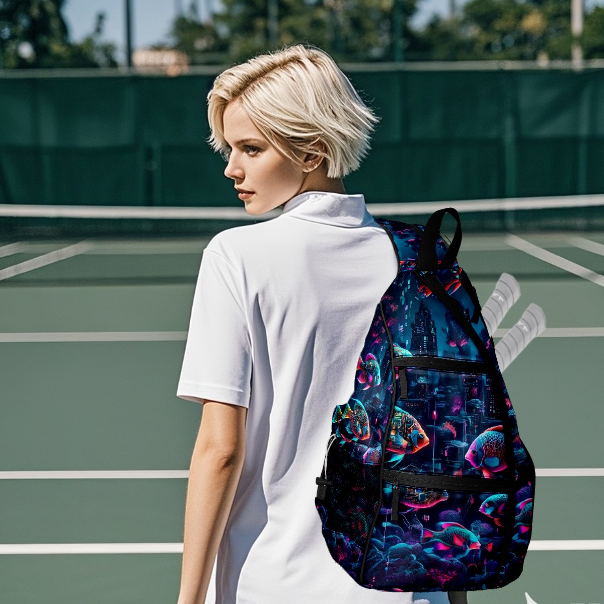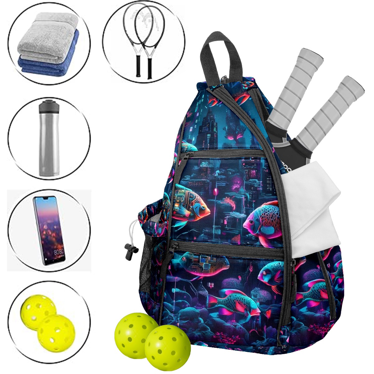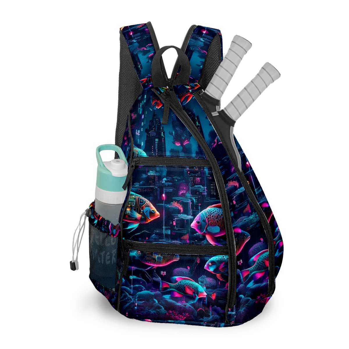 Pickleball Backpack - Convertible Shoulder Straps, Lightweight Breathable Mysterious Fish Purple Bag, Fits 2 Paddles, Balls & Gear (45x35x15cm)