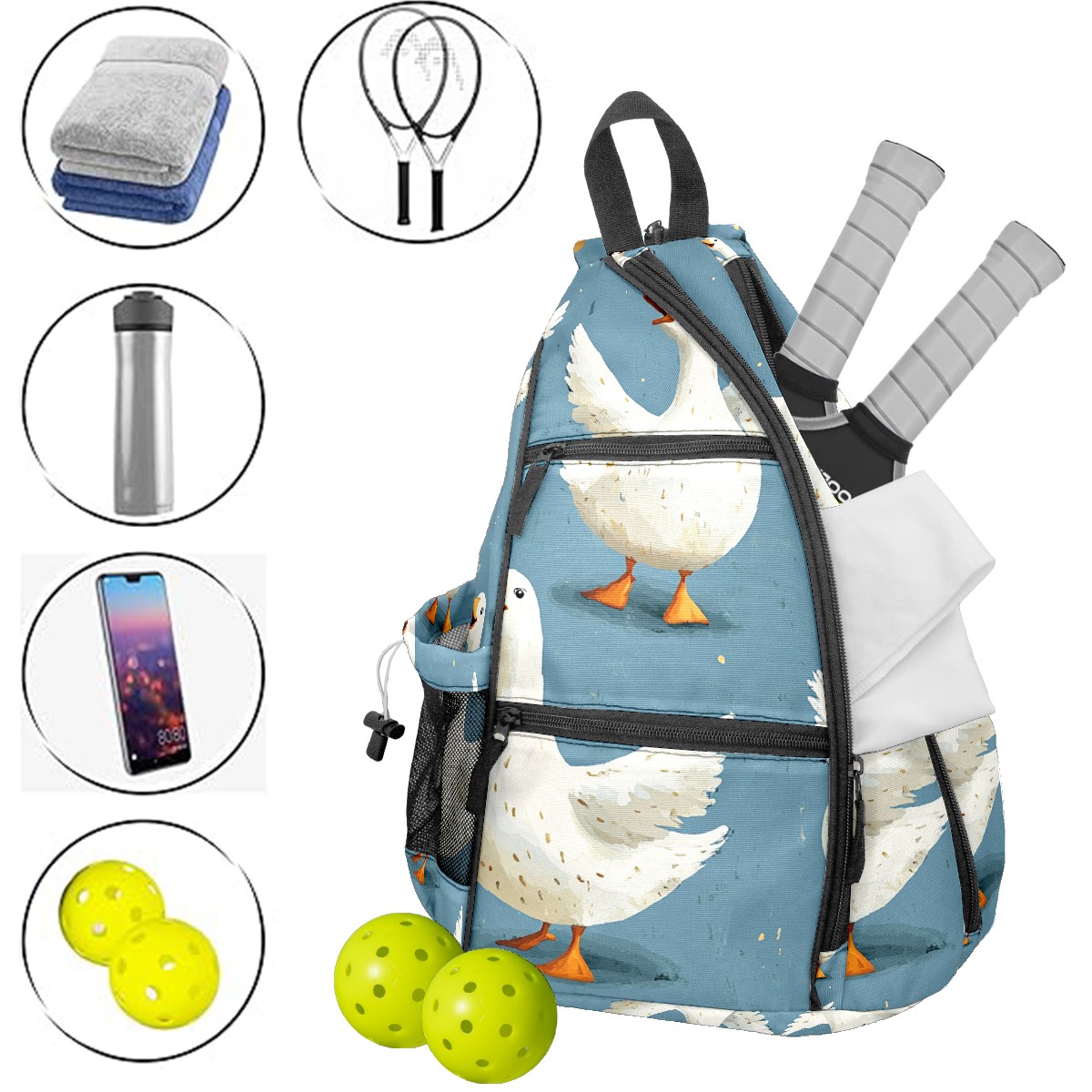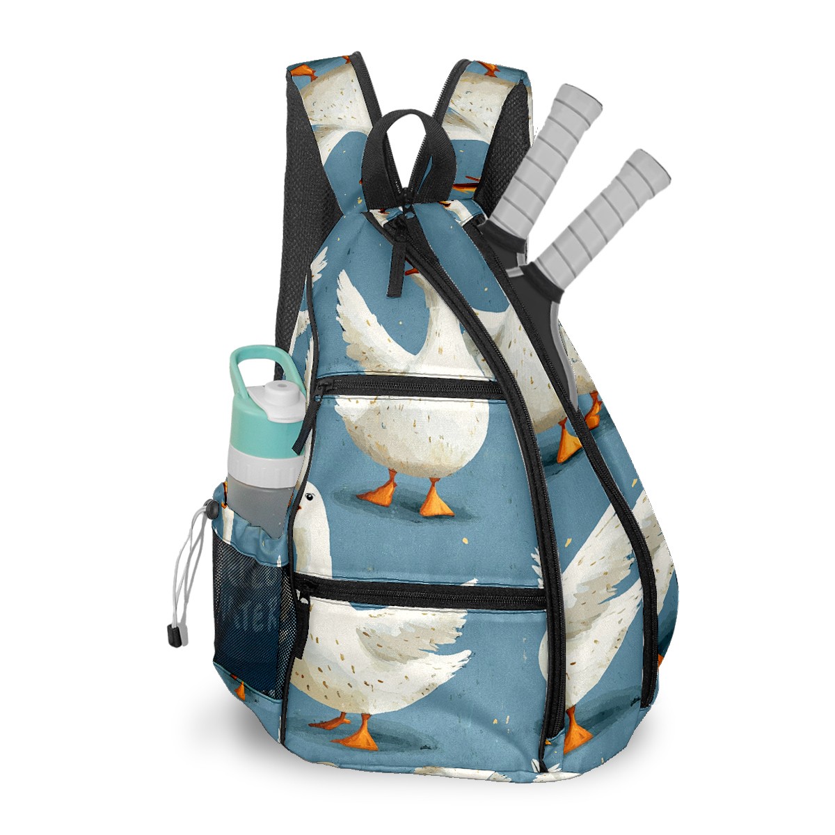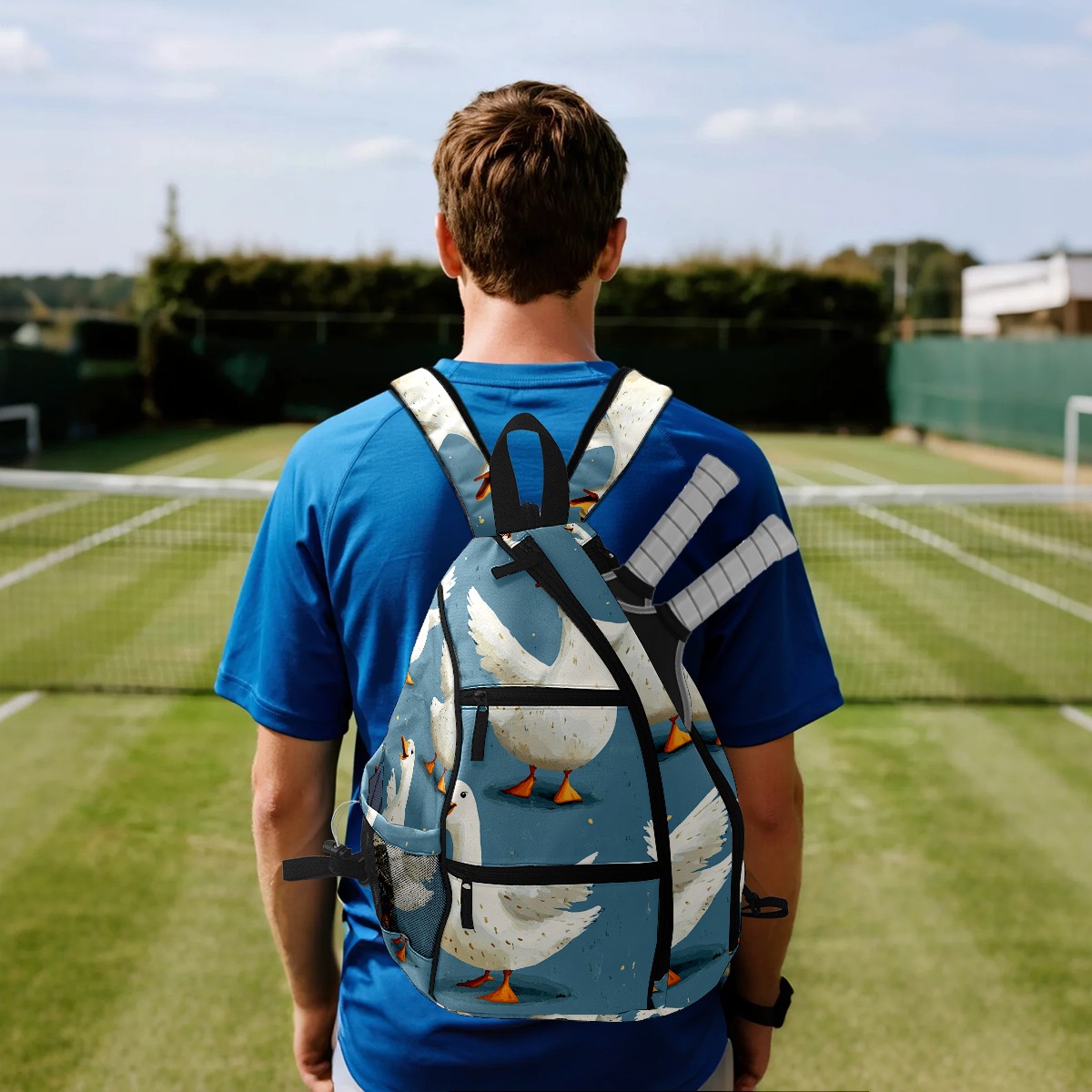 Pickleball Backpack - Convertible Shoulder Straps, Lightweight Breathable Blue Silly Geese Bag, Fits 2 Paddles, Balls & Gear (45x35x15cm)