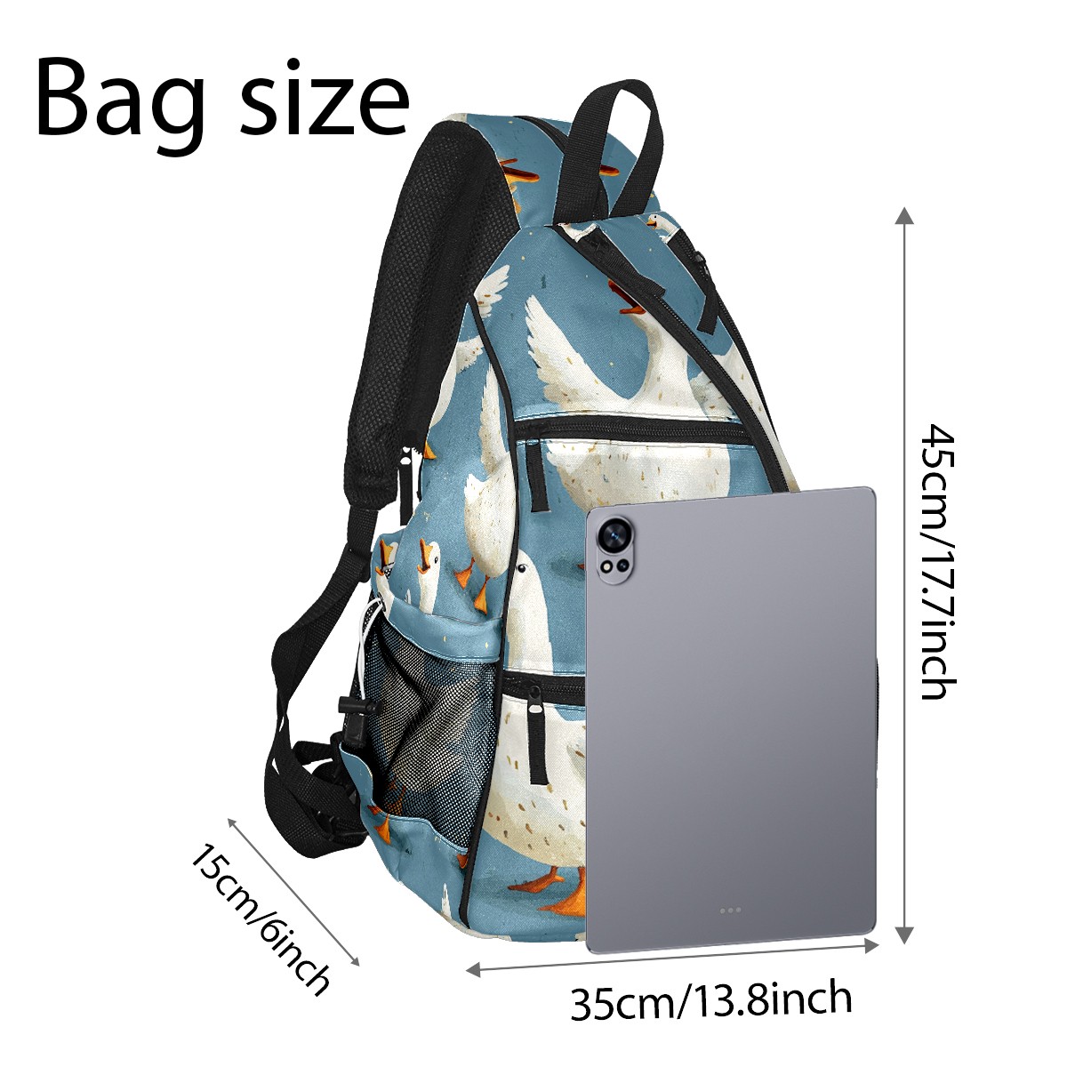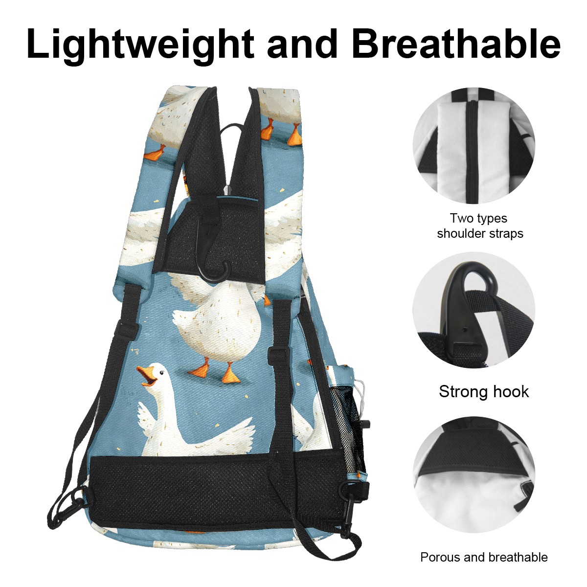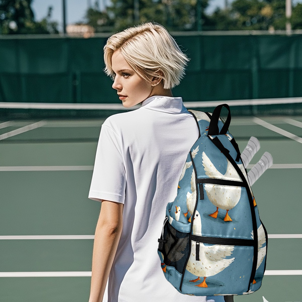 Pickleball Backpack - Convertible Shoulder Straps, Lightweight Breathable Blue Silly Geese Bag, Fits 2 Paddles, Balls & Gear (45x35x15cm)