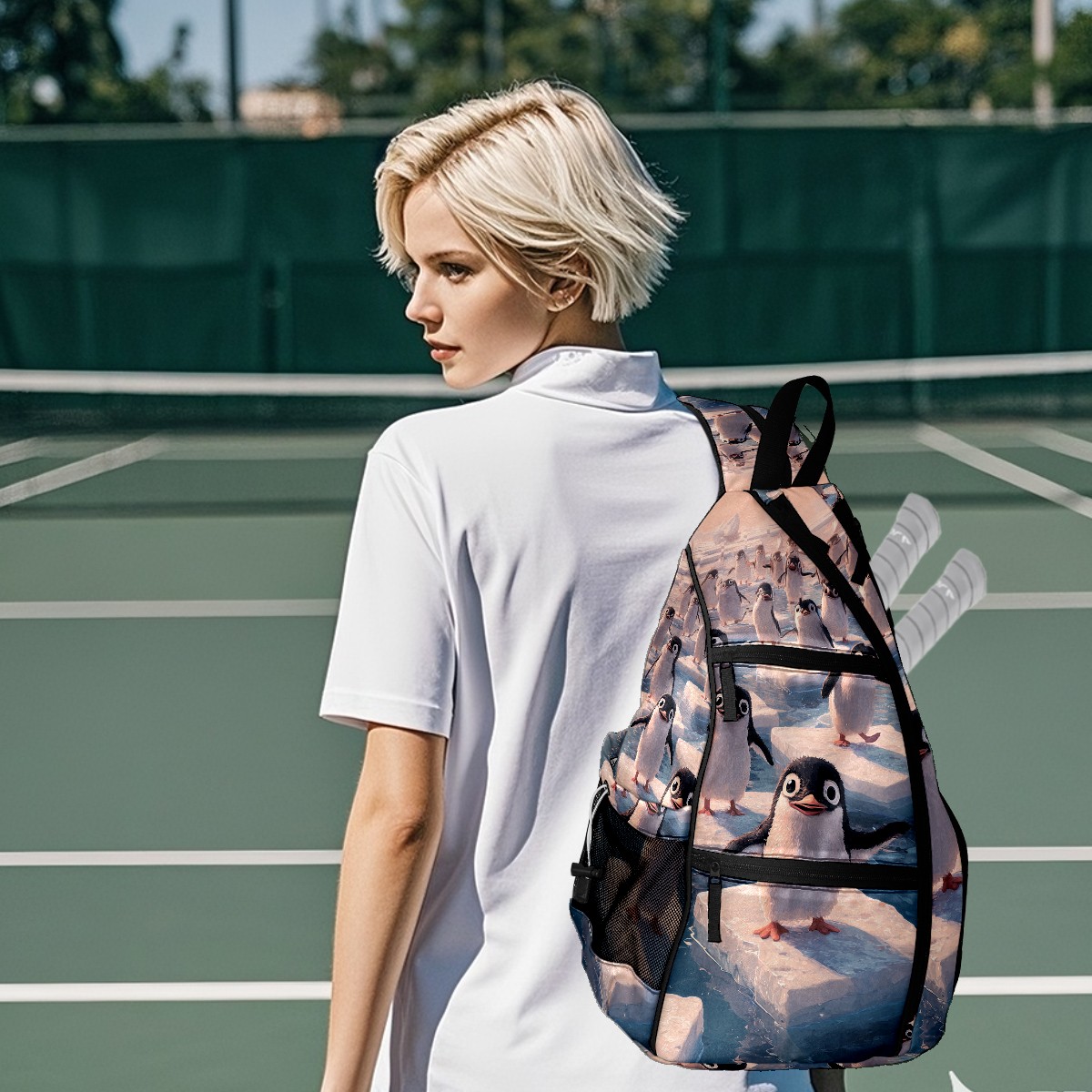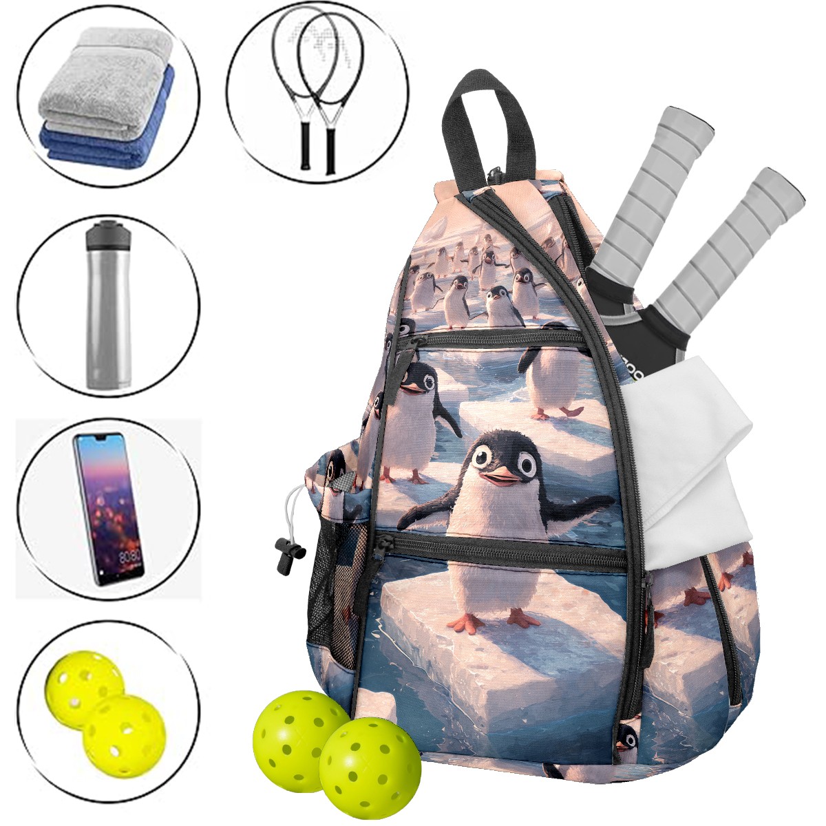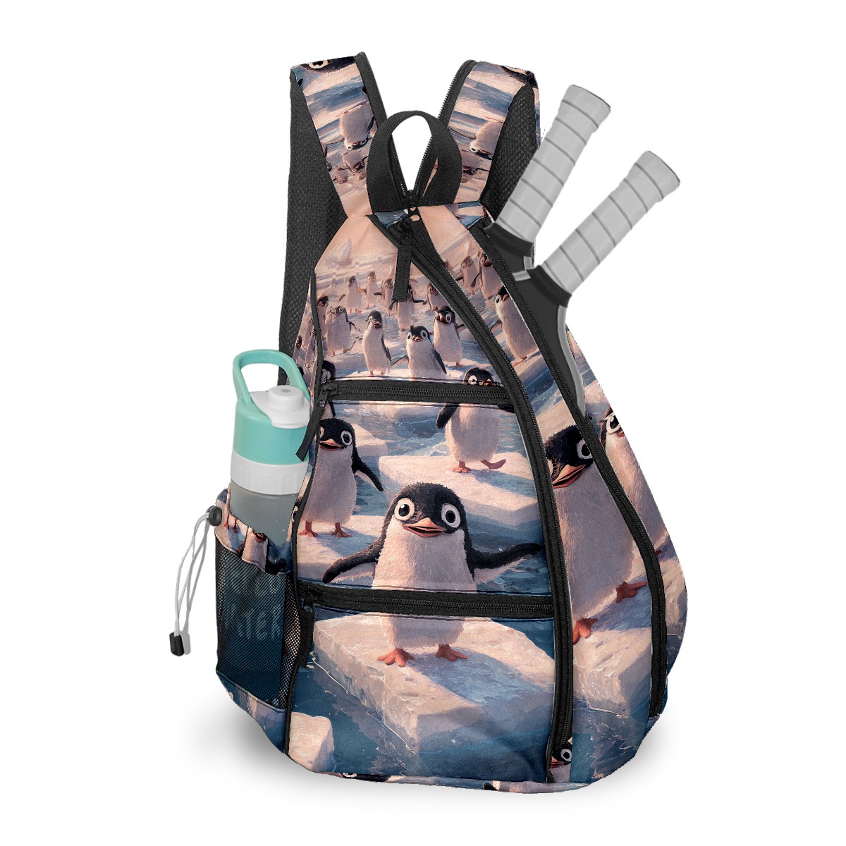 Pickleball Backpack - Convertible Shoulder Straps, Lightweight Breathable Arctic Penguin Ice Floes Bag, Fits 2 Paddles, Balls & Gear (45x35x15cm)
