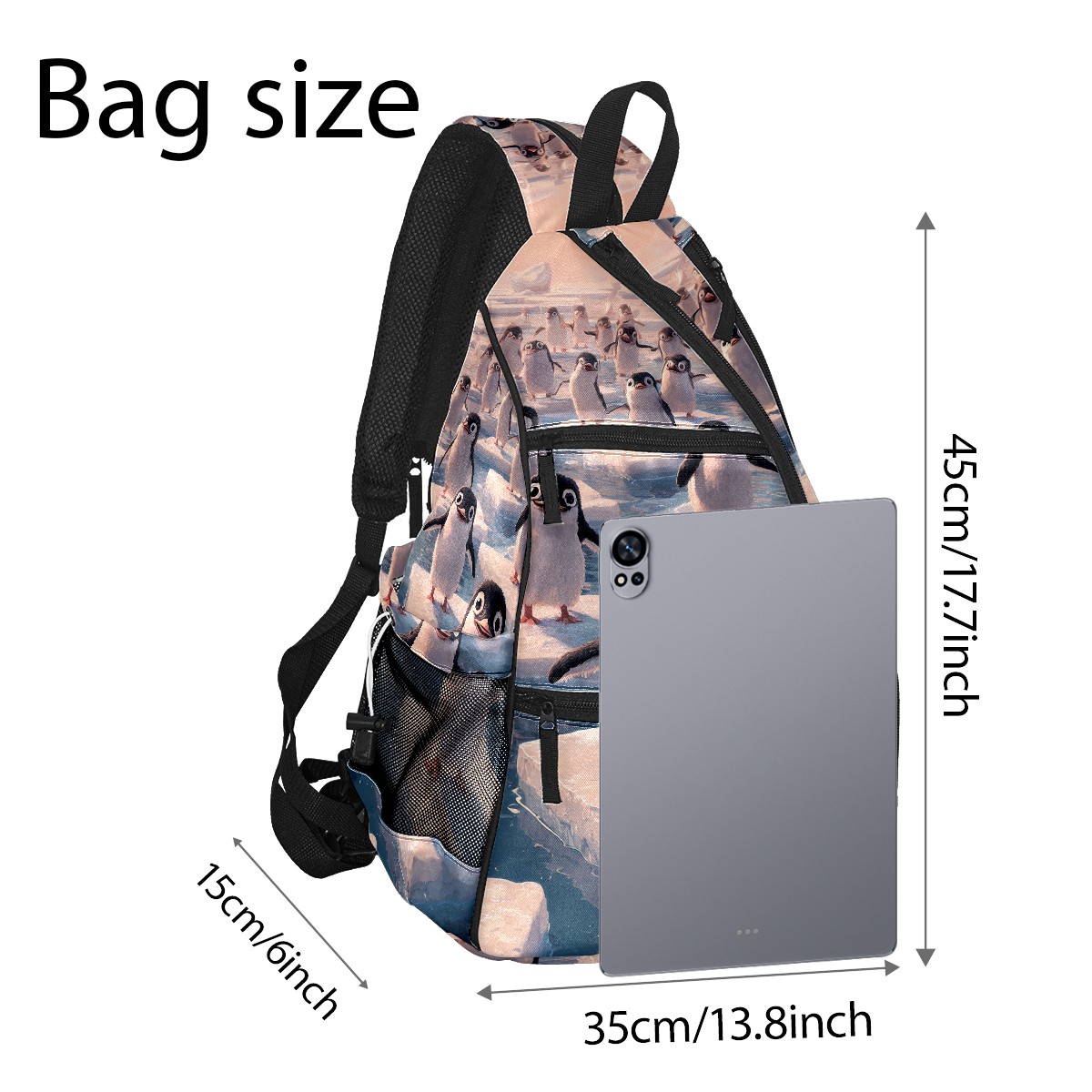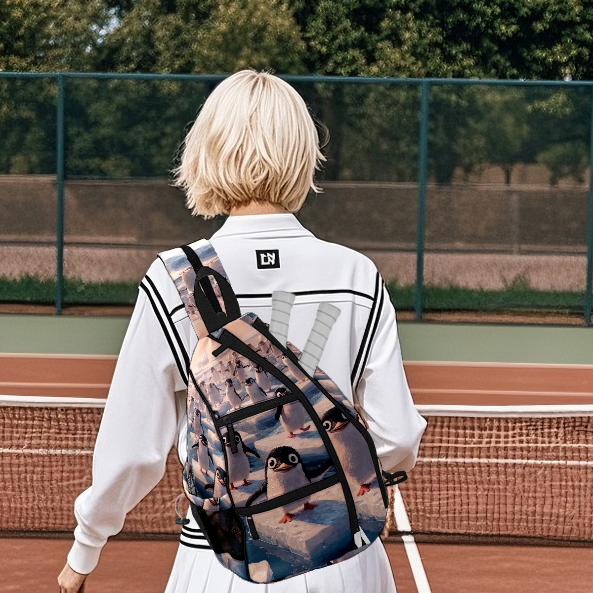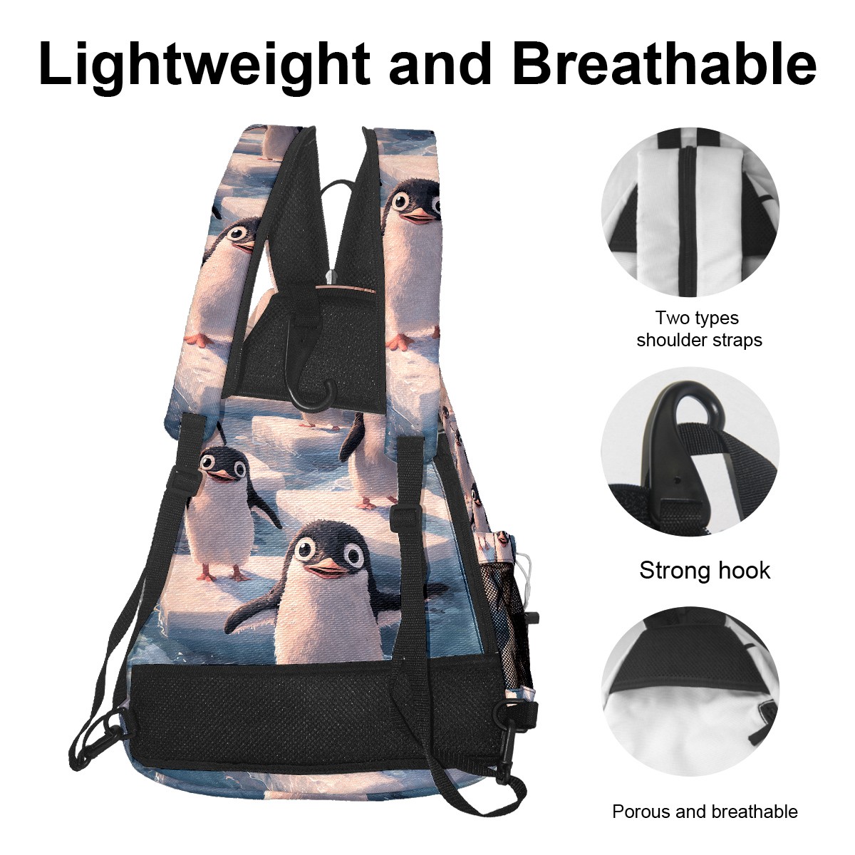 Pickleball Backpack - Convertible Shoulder Straps, Lightweight Breathable Arctic Penguin Ice Floes Bag, Fits 2 Paddles, Balls & Gear (45x35x15cm)