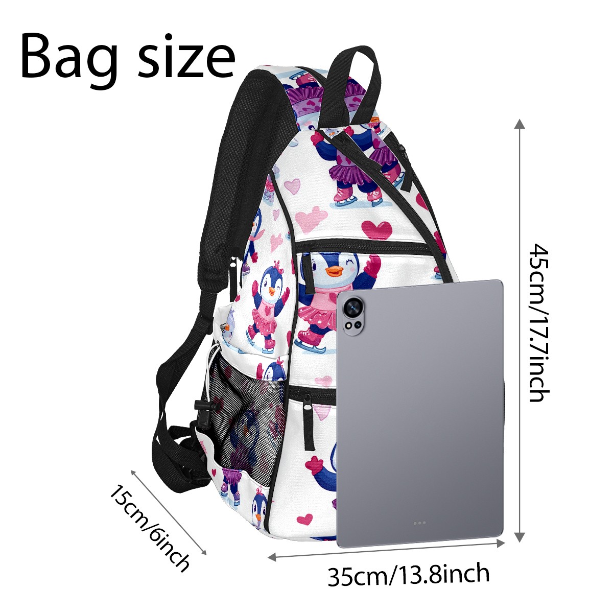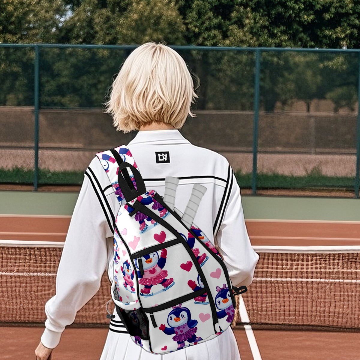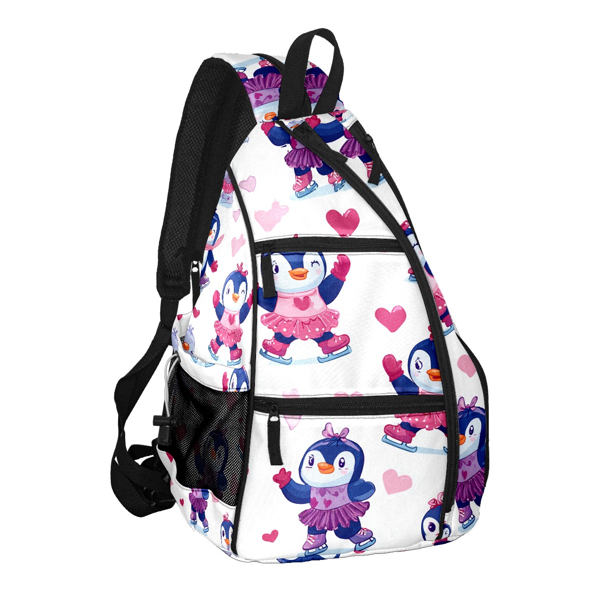Pickleball Backpack - Convertible Shoulder Straps, Lightweight Breathable Pink Heart Penguins Bag, Fits 2 Paddles, Balls & Gear (45x35x15cm)