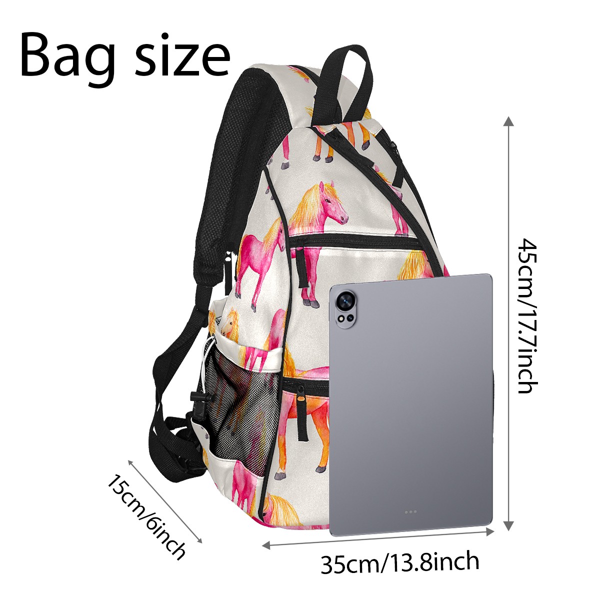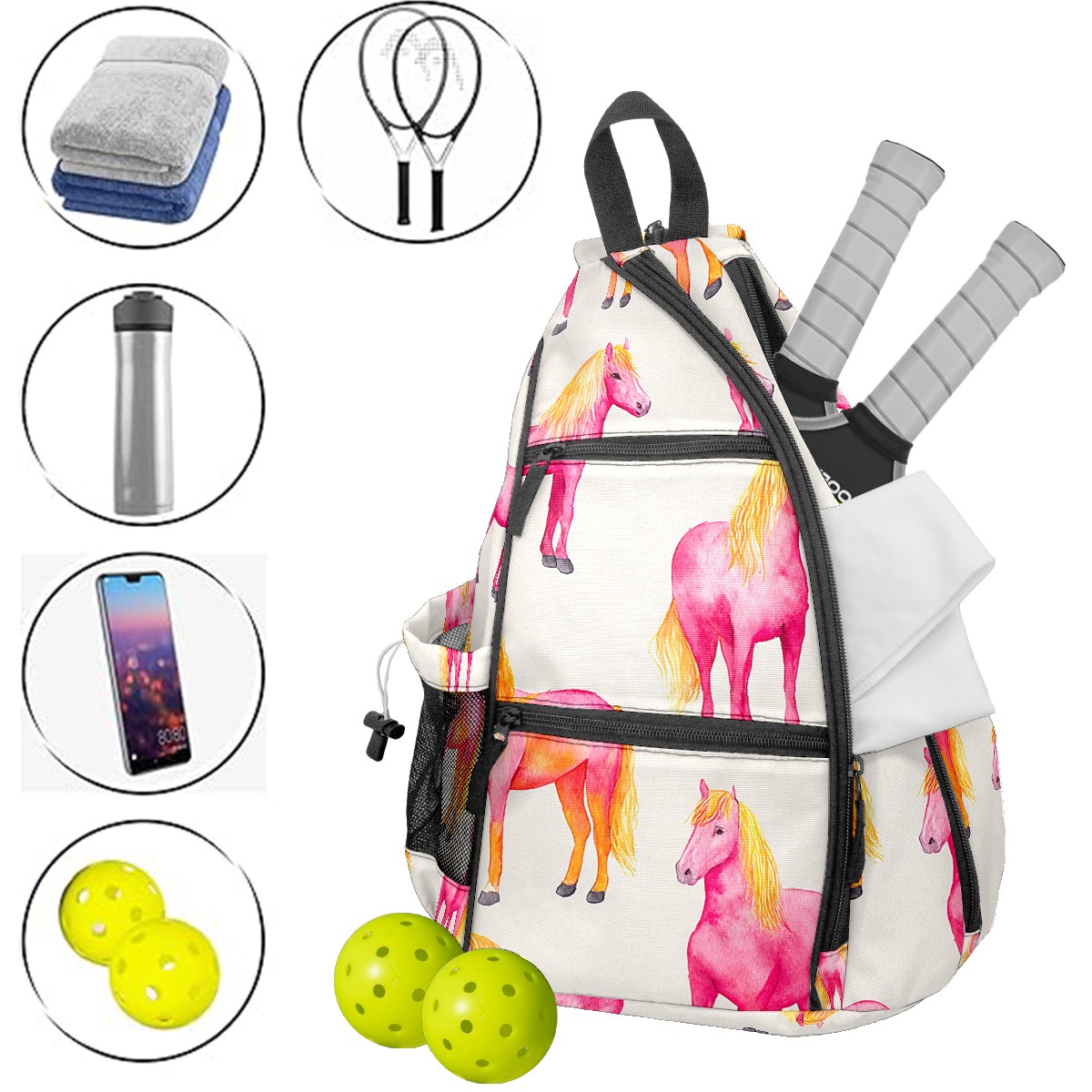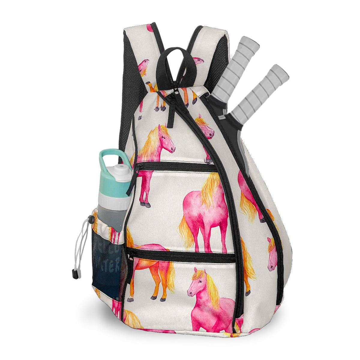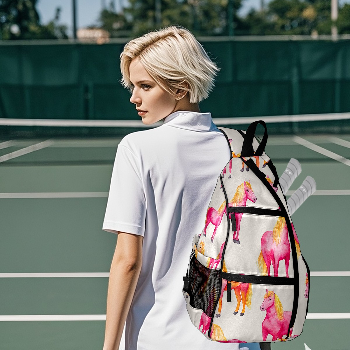 Pickleball Backpack - Convertible Shoulder Straps, Lightweight Breathable Light Pink Horses Bag, Fits 2 Paddles, Balls & Gear (45x35x15cm)