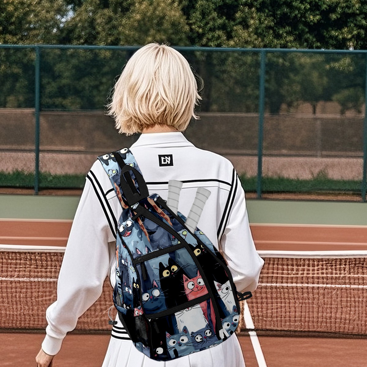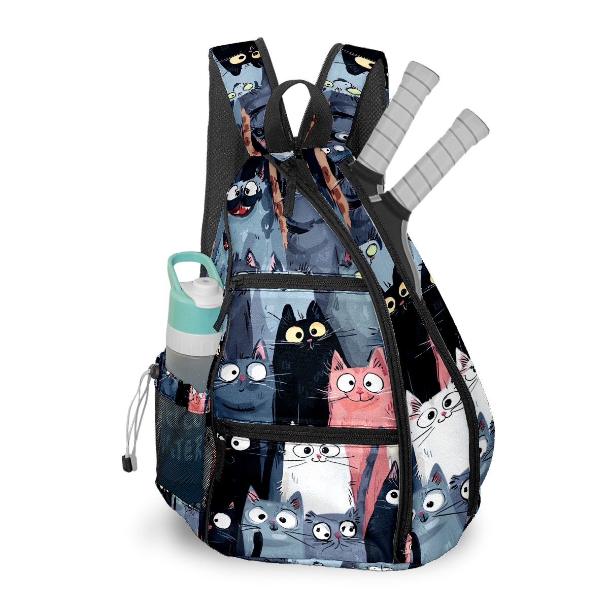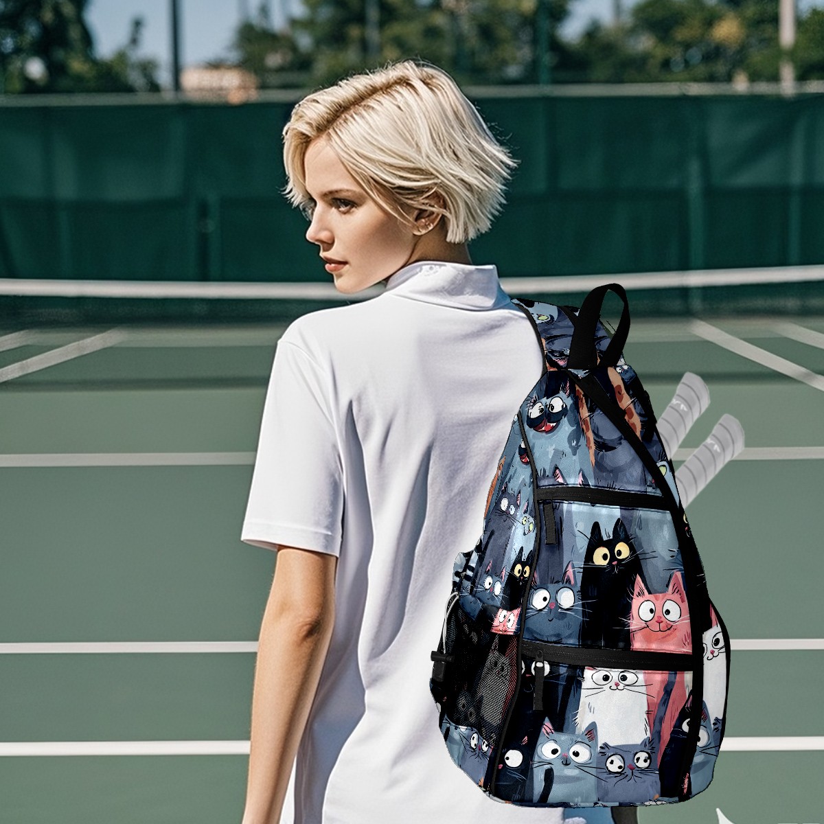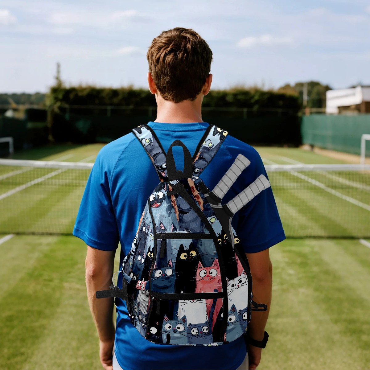 Pickleball Backpack - Convertible Shoulder Straps, Lightweight Breathable Colorful Cartoon Cats Bag, Fits 2 Paddles, Balls & Gear (45x35x15cm)