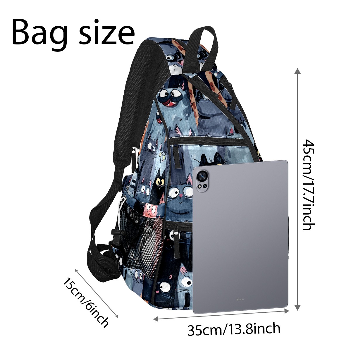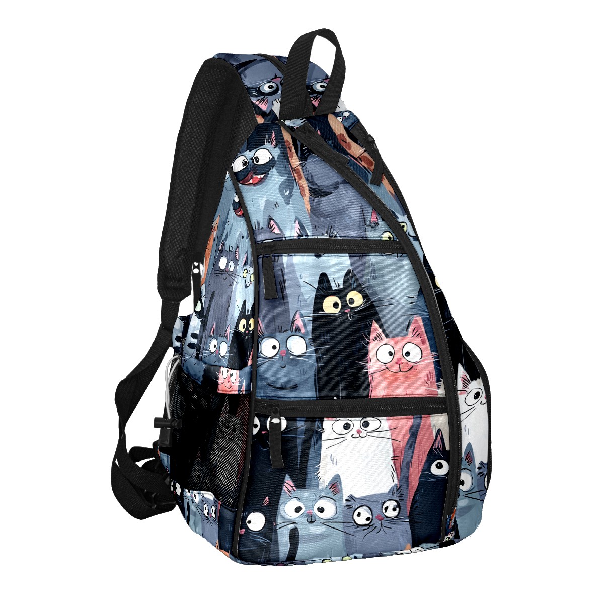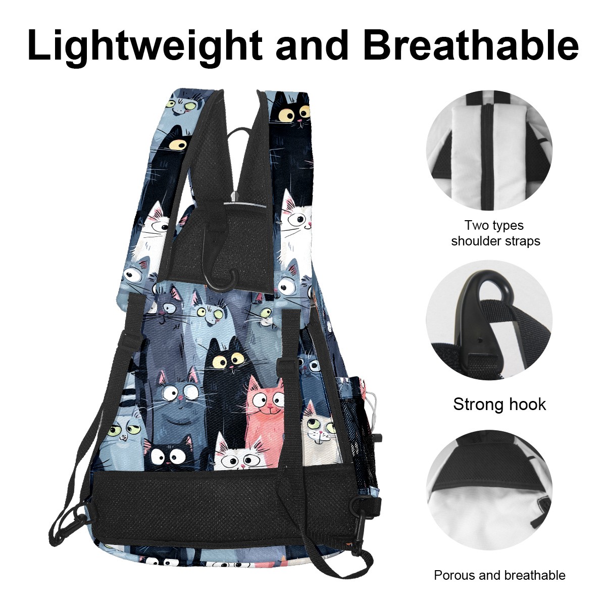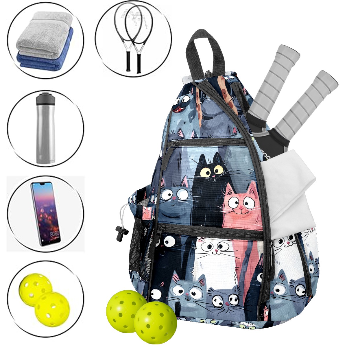 Pickleball Backpack - Convertible Shoulder Straps, Lightweight Breathable Colorful Cartoon Cats Bag, Fits 2 Paddles, Balls & Gear (45x35x15cm)