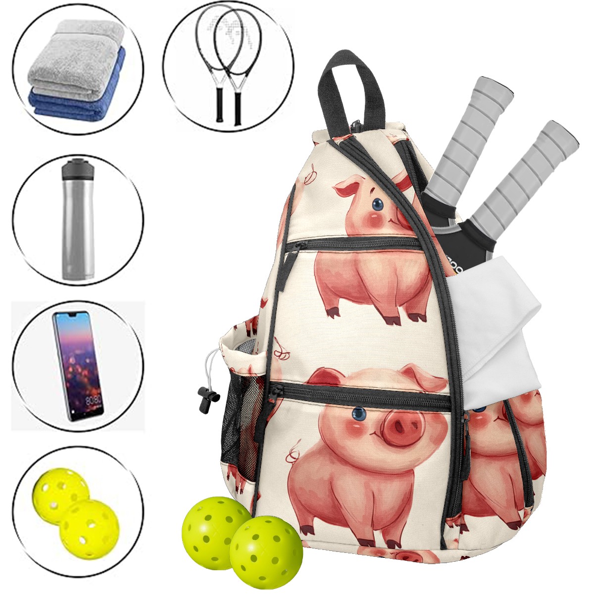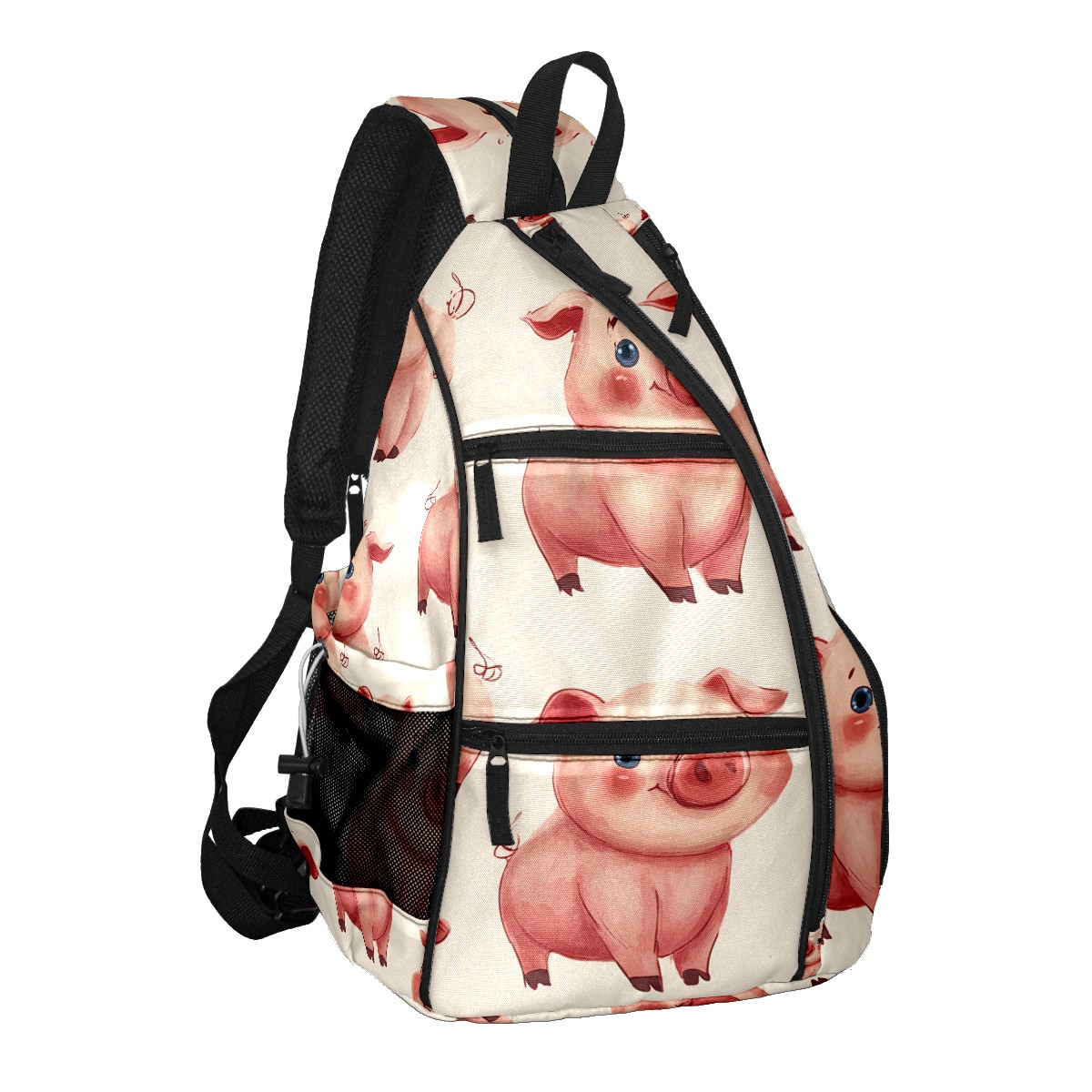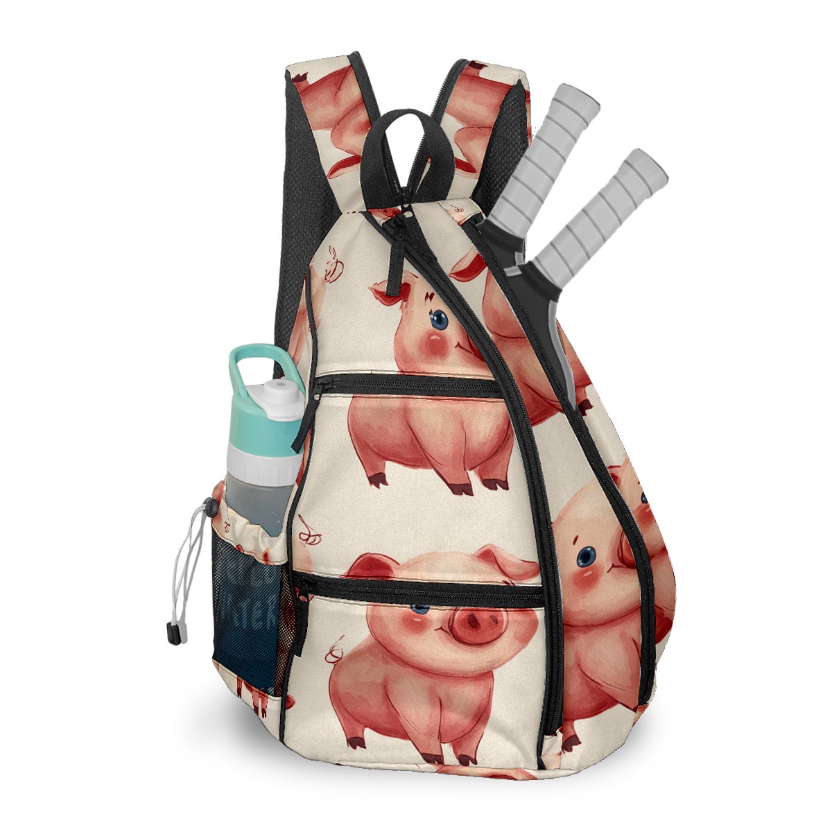 Pickleball Backpack - Convertible Shoulder Straps, Lightweight Breathable Pink Cute Pig Bag, Fits 2 Paddles, Balls & Gear (45x35x15cm)