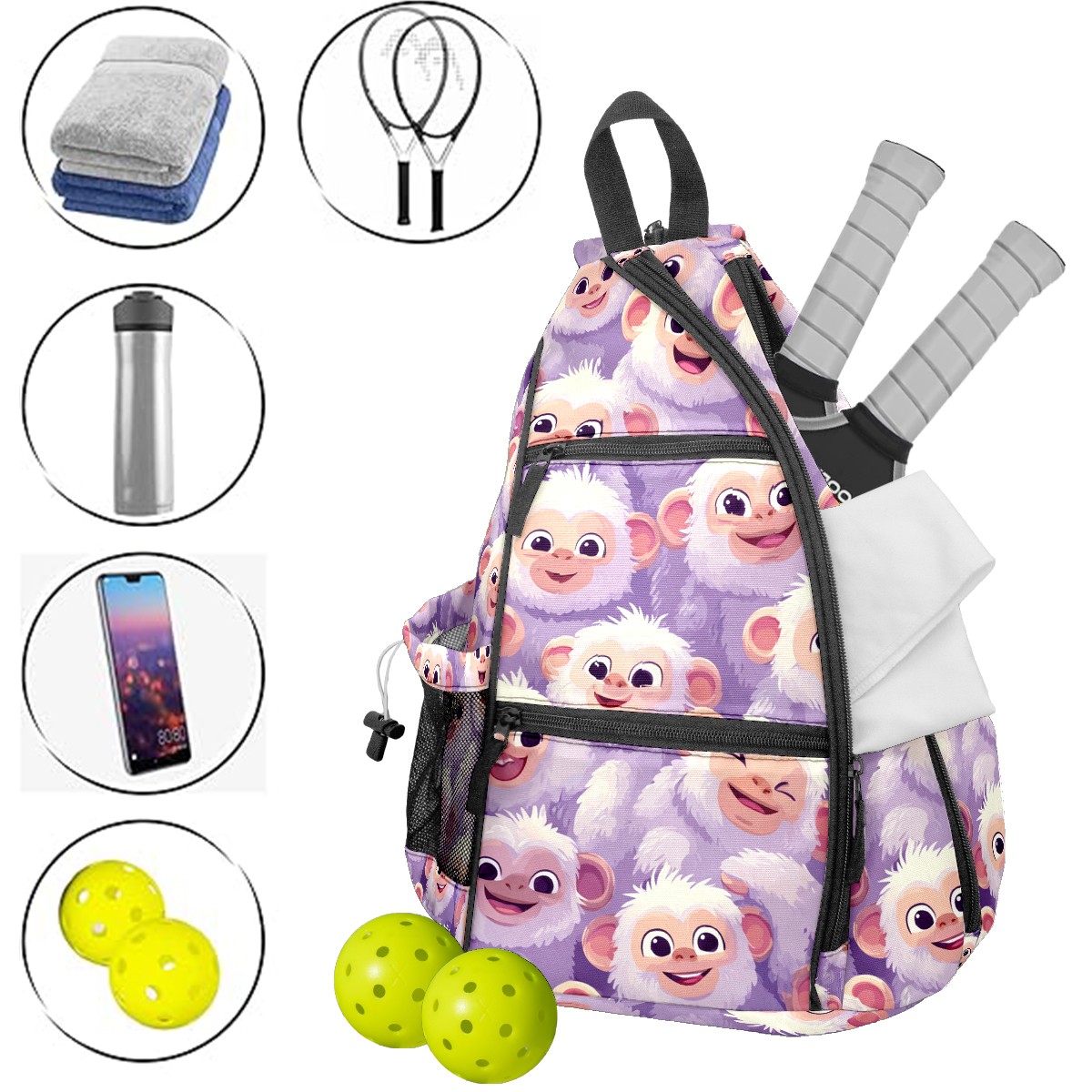 Pickleball Backpack - Convertible Shoulder Straps, Lightweight Breathable Purple Baby Animals Bag, Fits 2 Paddles, Balls & Gear (45x35x15cm)
