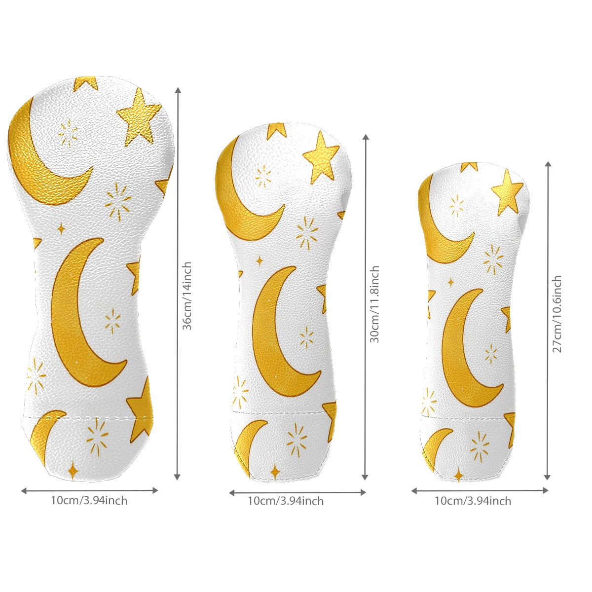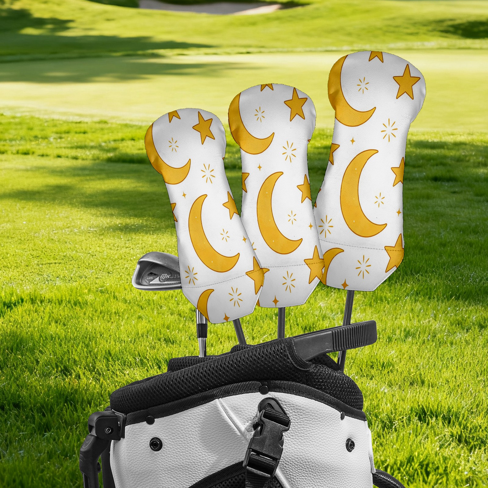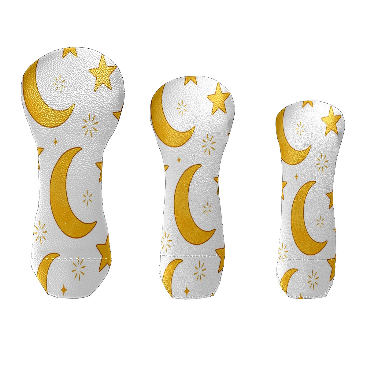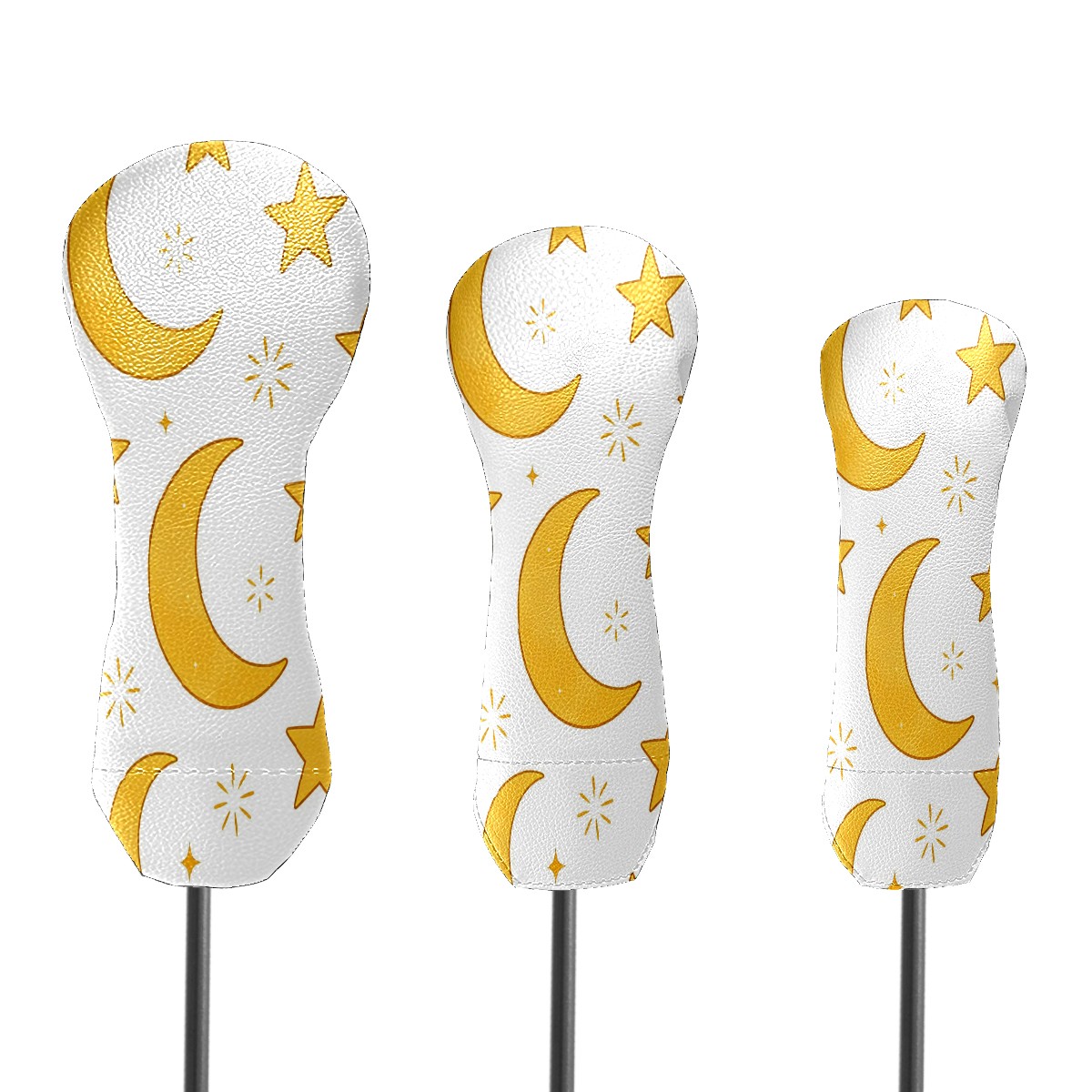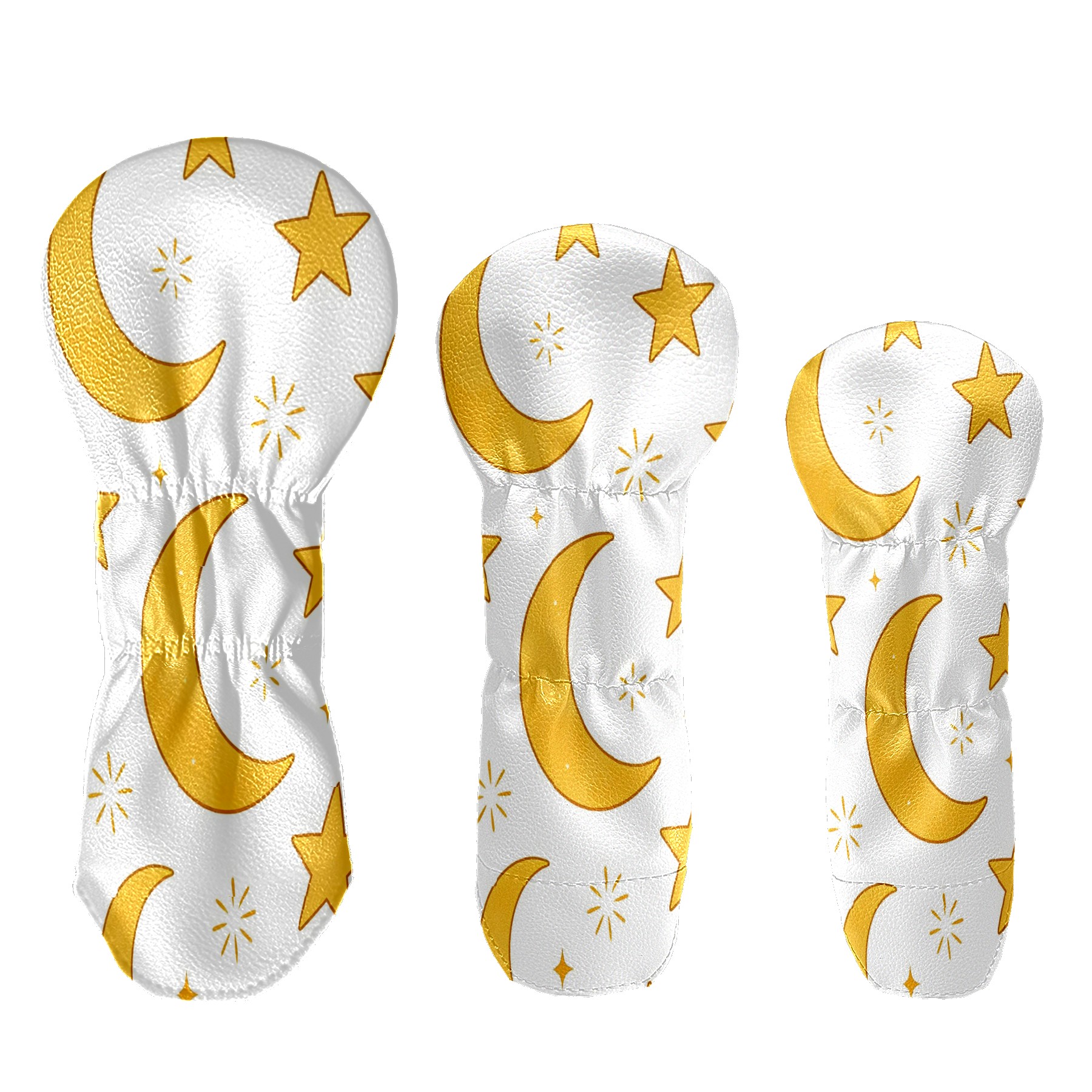 3 Pack PU Leather Golf Club Head Covers - Driver, Fairway Wood & Hybrid, Funny Golf Accessories, Ideal Golf Gift Yellow Star Moon Pattern