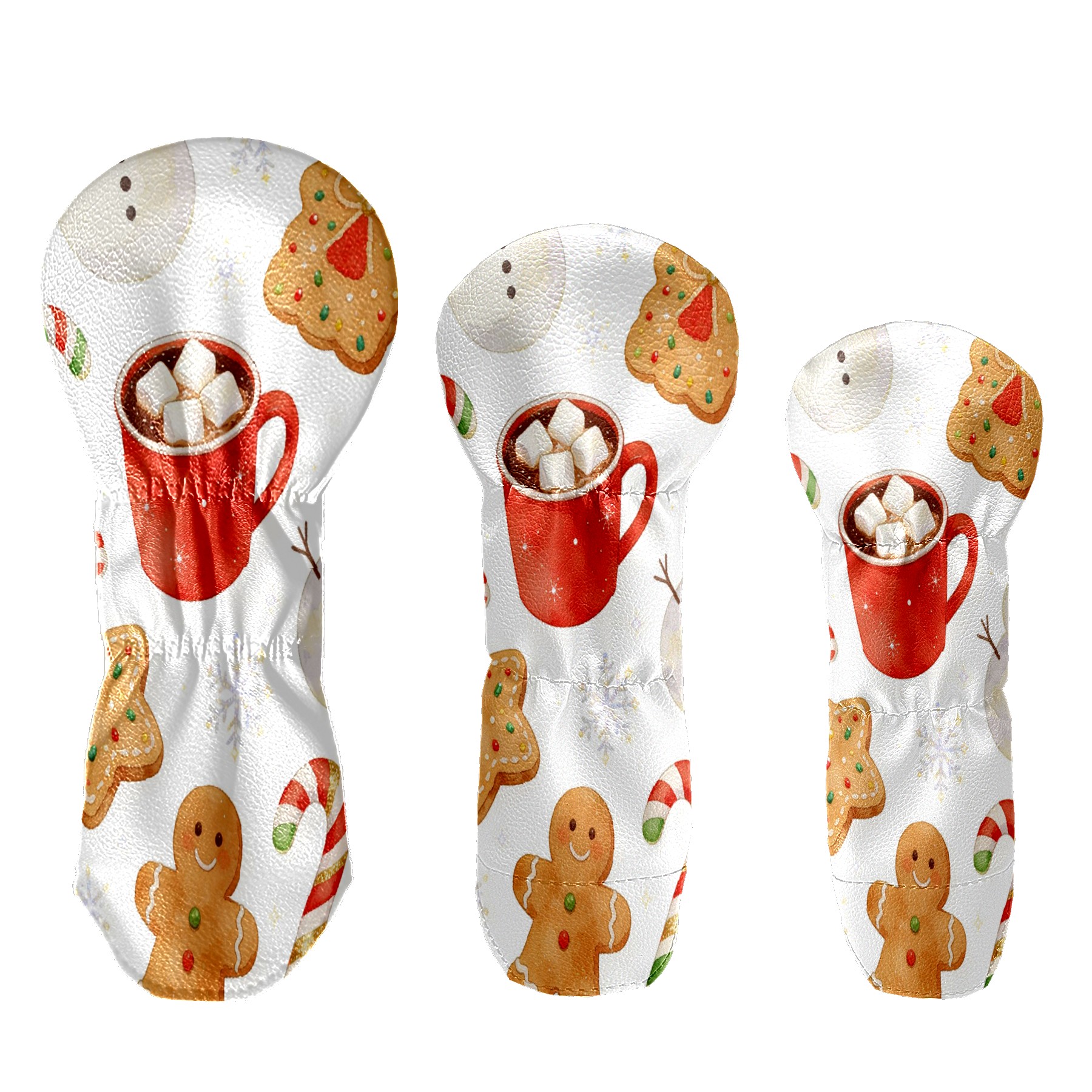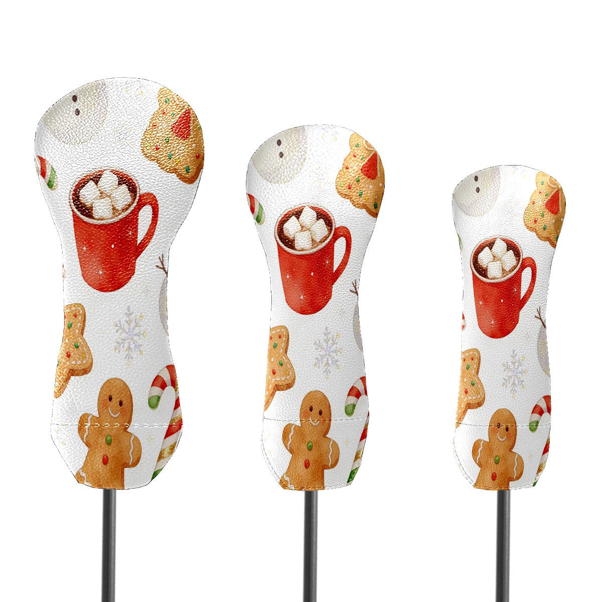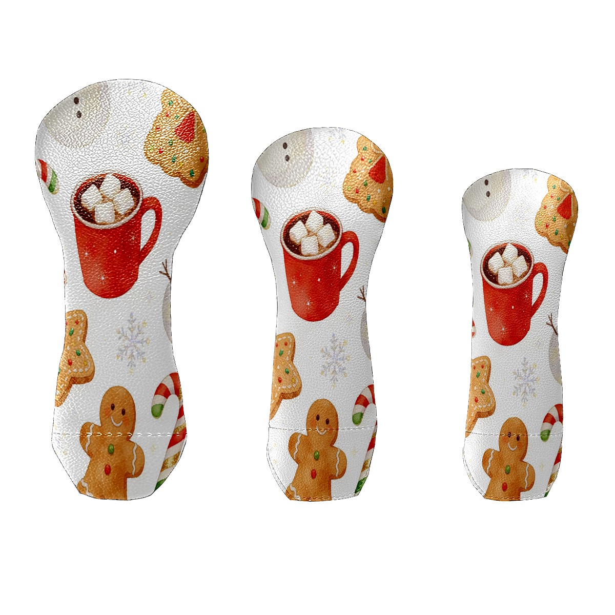 3 Pack PU Leather Golf Club Head Covers - Driver, Fairway Wood & Hybrid, Funny Golf Accessories, Ideal Golf Gift Christmas Cookie Patterns