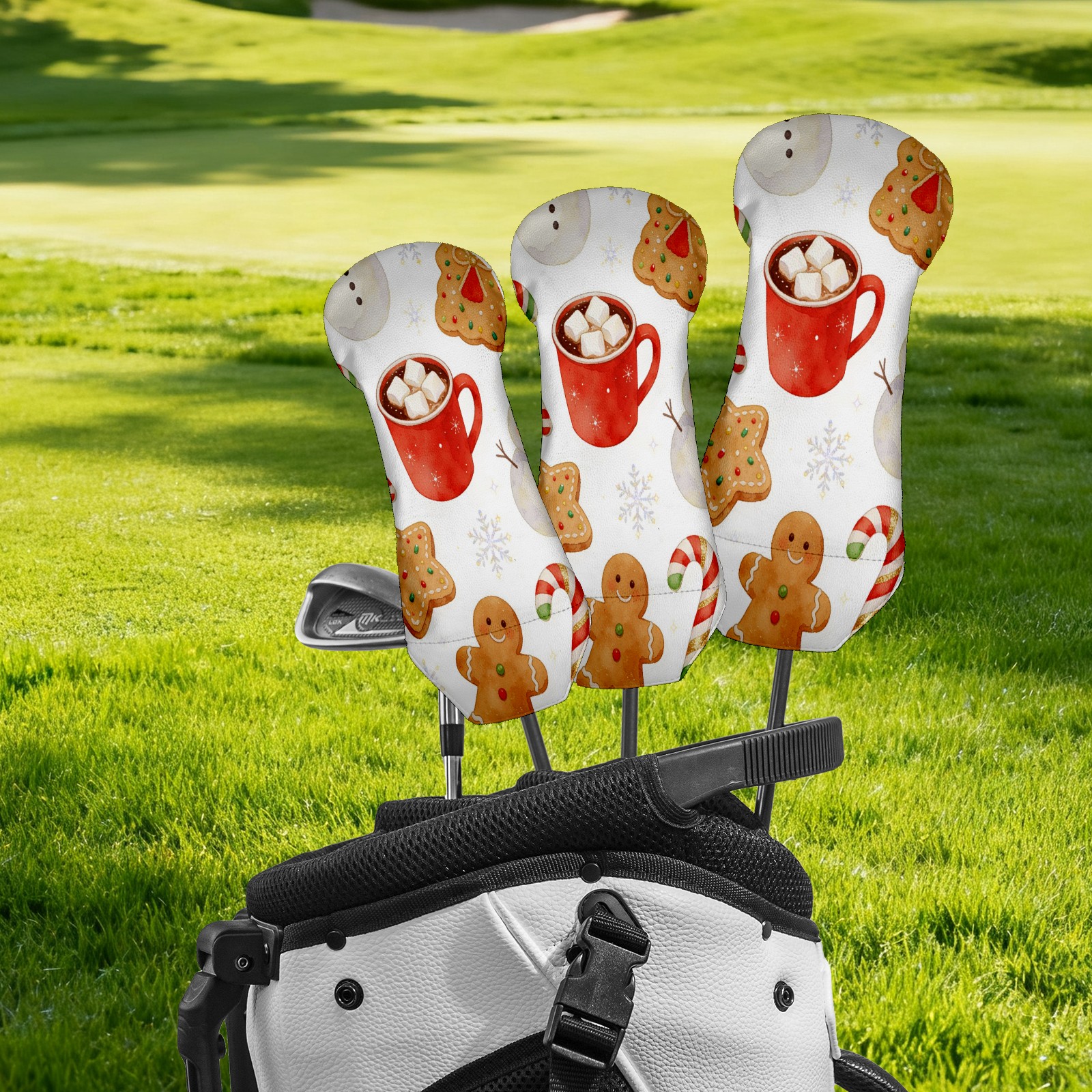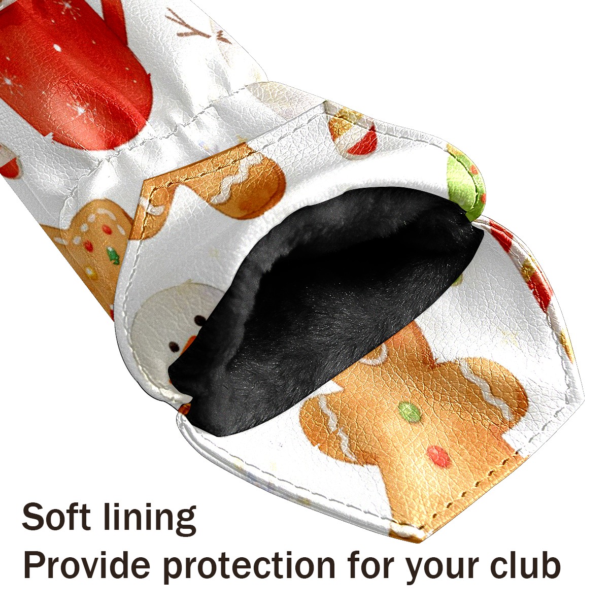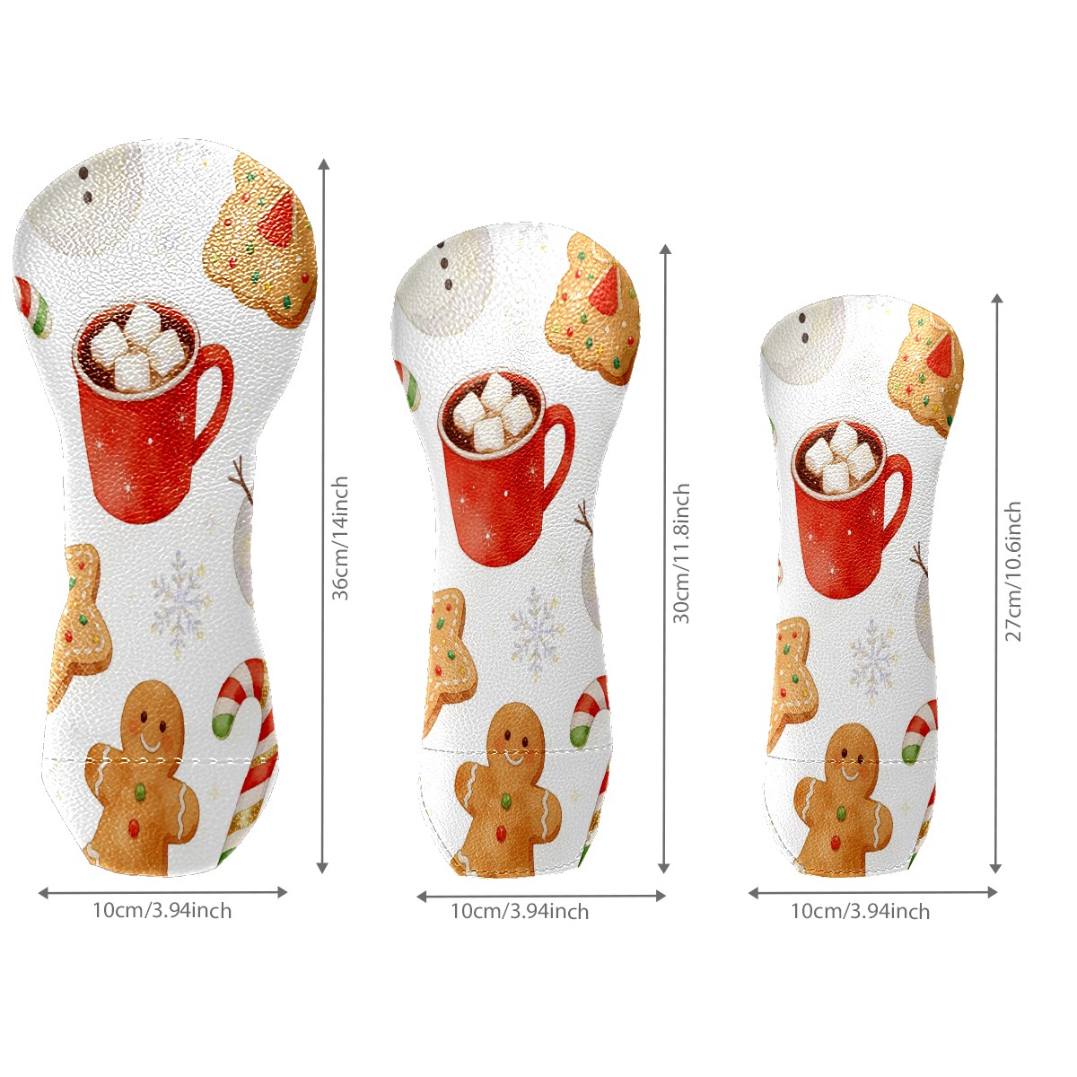 3 Pack PU Leather Golf Club Head Covers - Driver, Fairway Wood & Hybrid, Funny Golf Accessories, Ideal Golf Gift Christmas Cookie Patterns