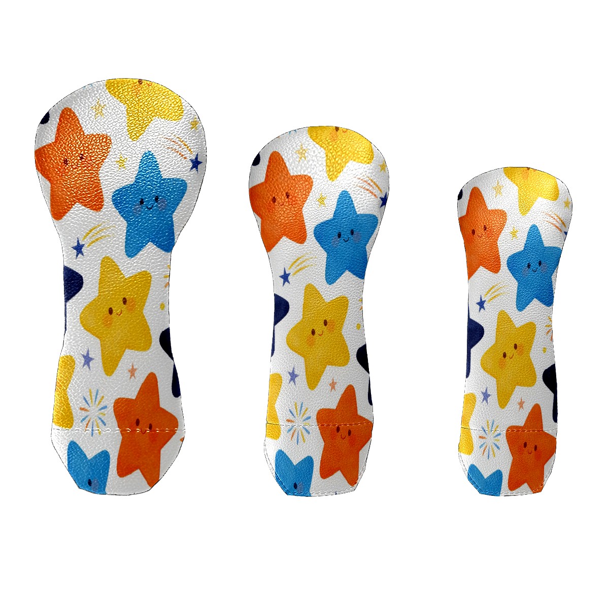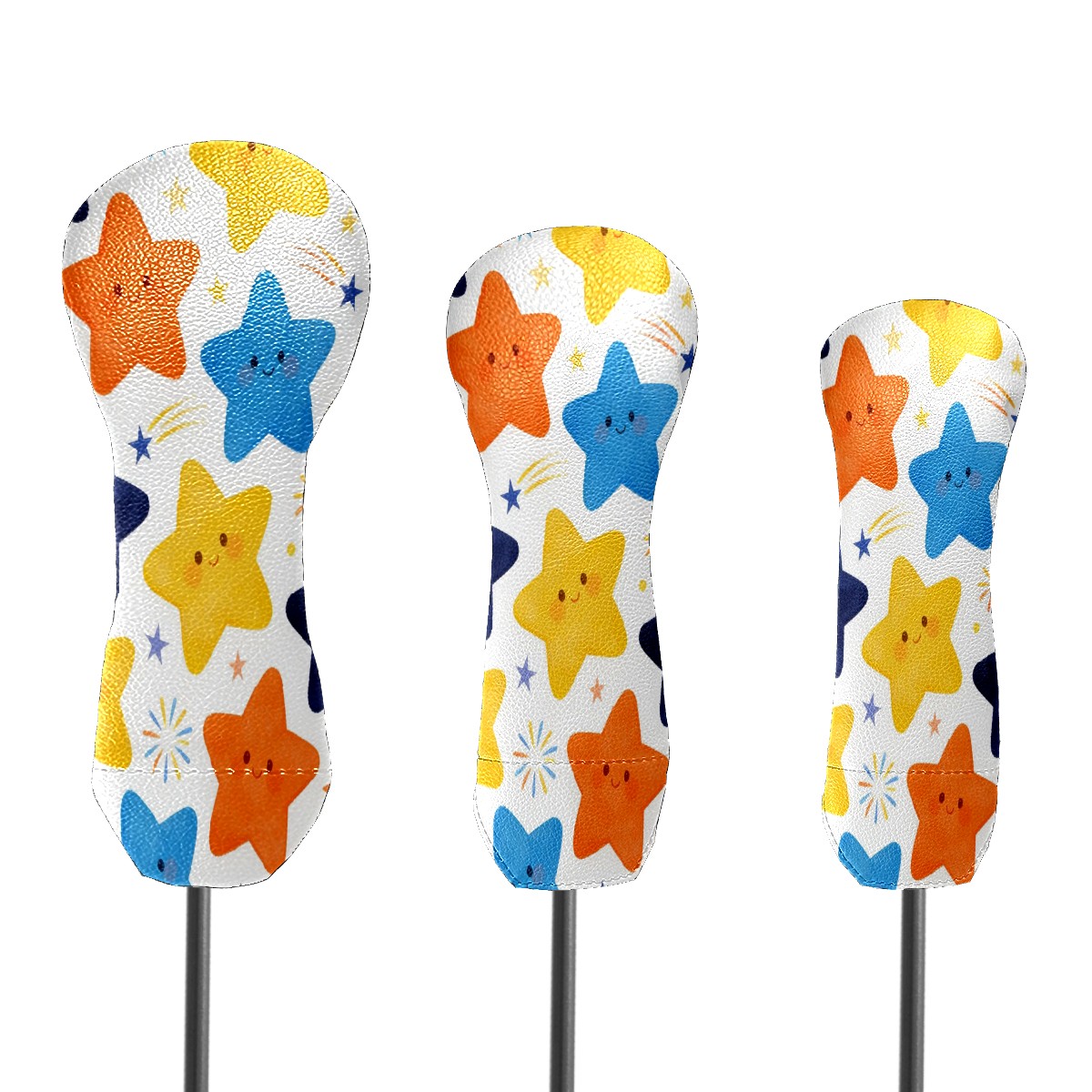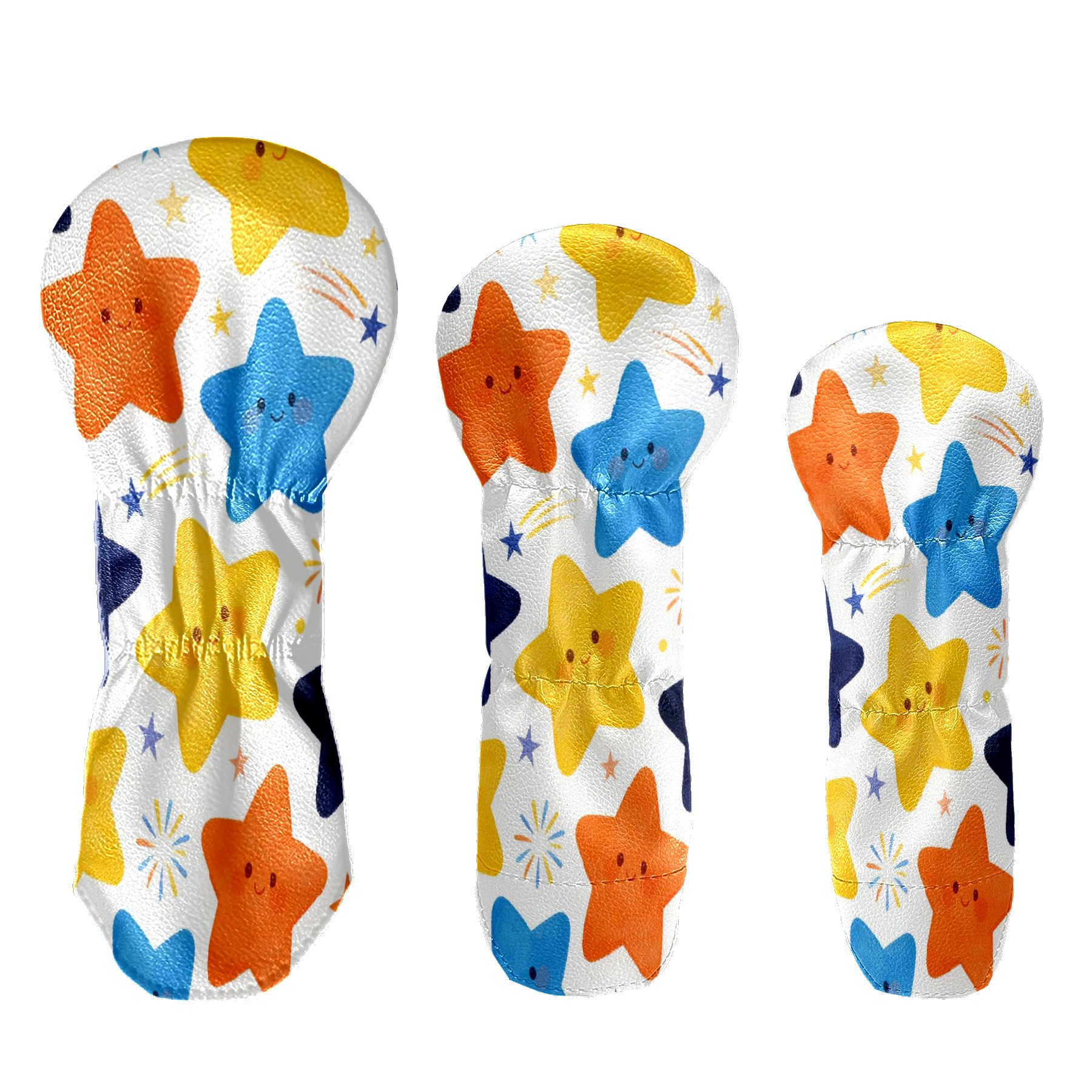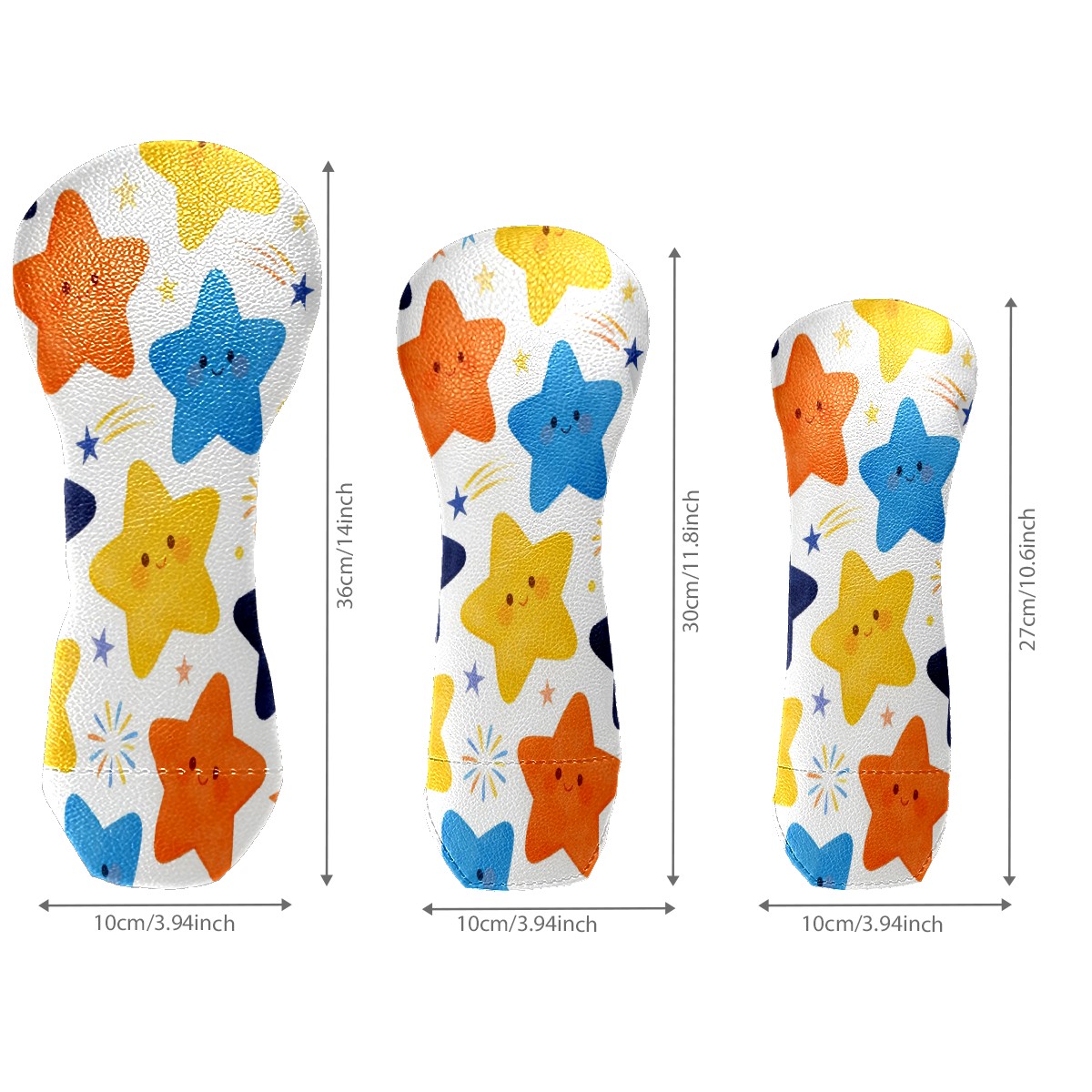 3 Pack PU Leather Golf Club Head Covers - Driver, Fairway Wood & Hybrid, Funny Golf Accessories, Ideal Golf Gift Colorful Star Pattern