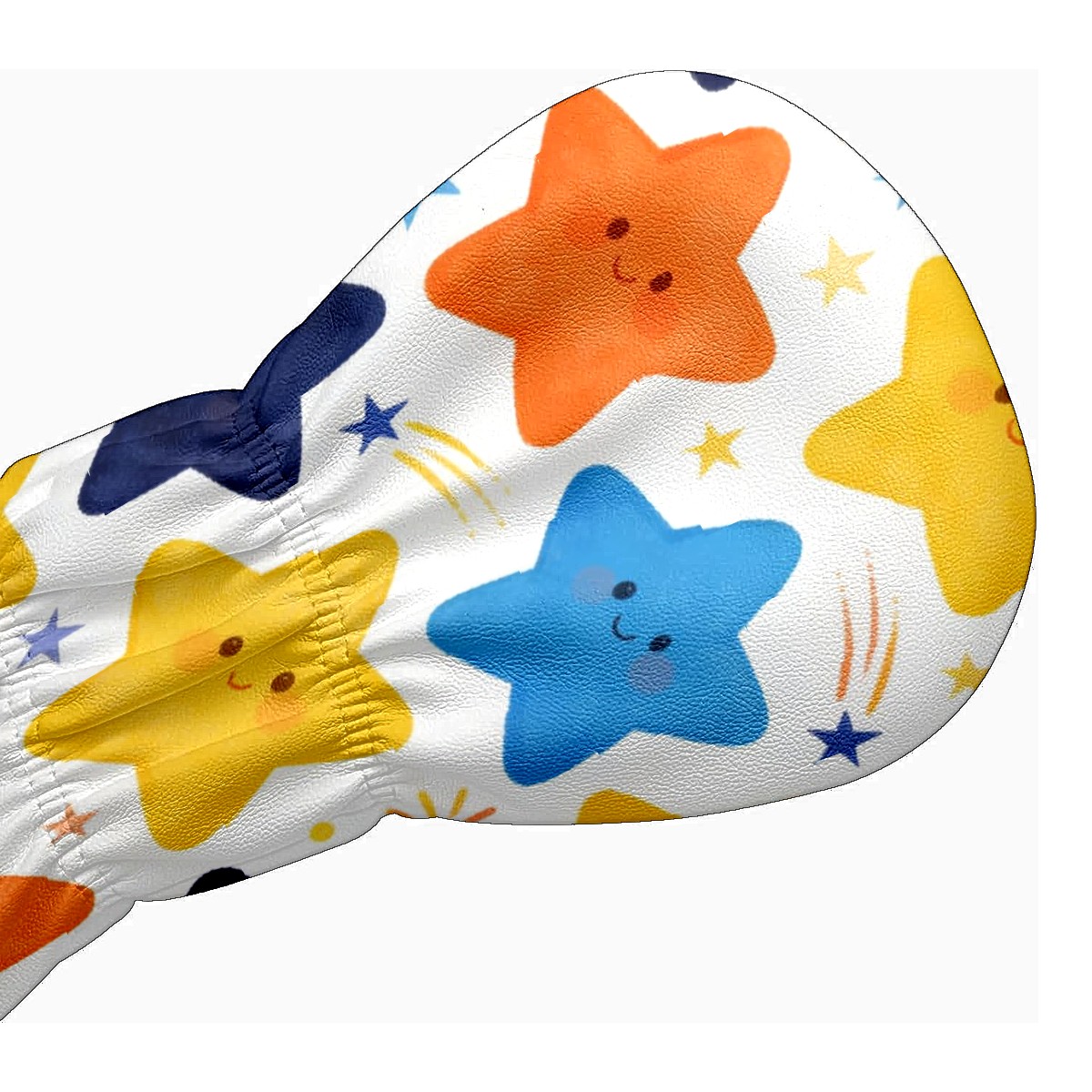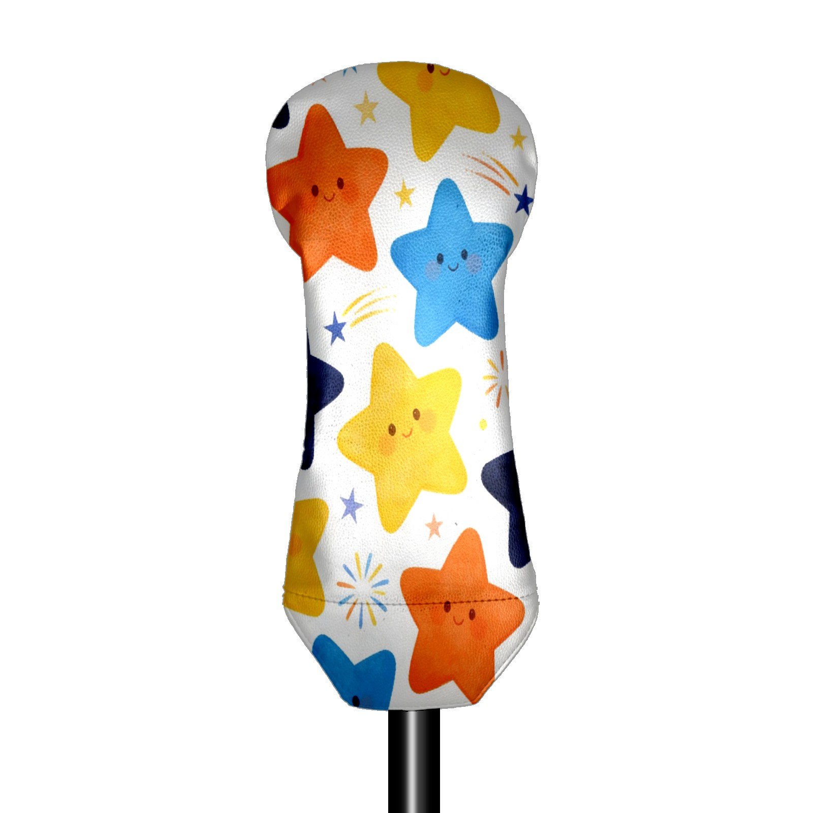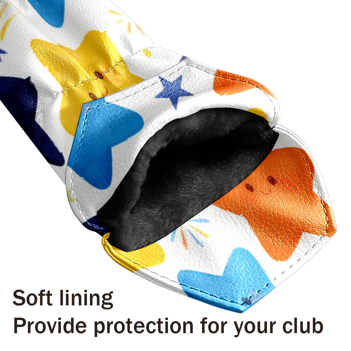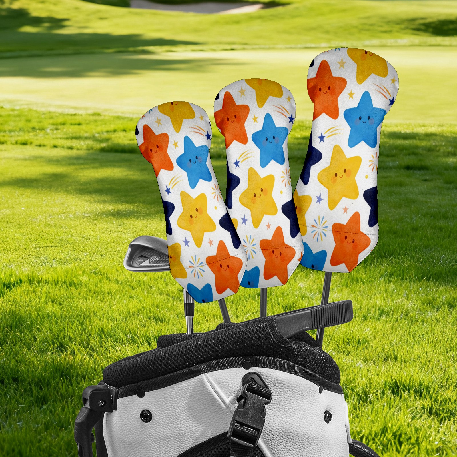 3 Pack PU Leather Golf Club Head Covers - Driver, Fairway Wood & Hybrid, Funny Golf Accessories, Ideal Golf Gift Colorful Star Pattern
