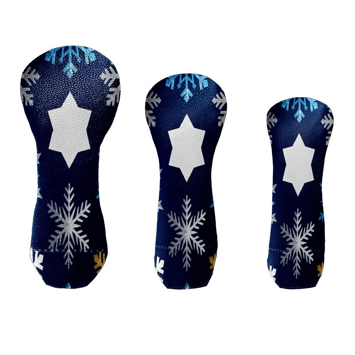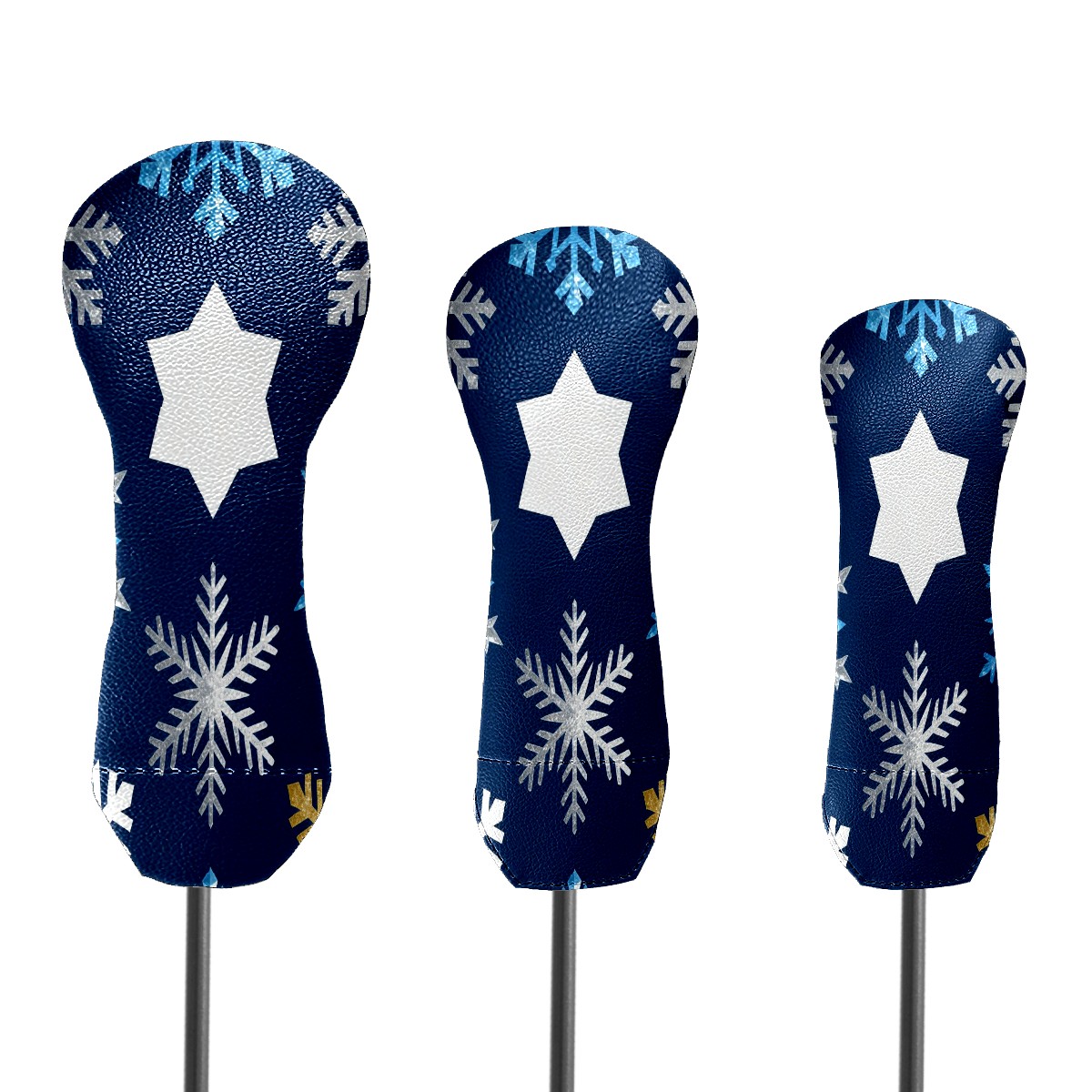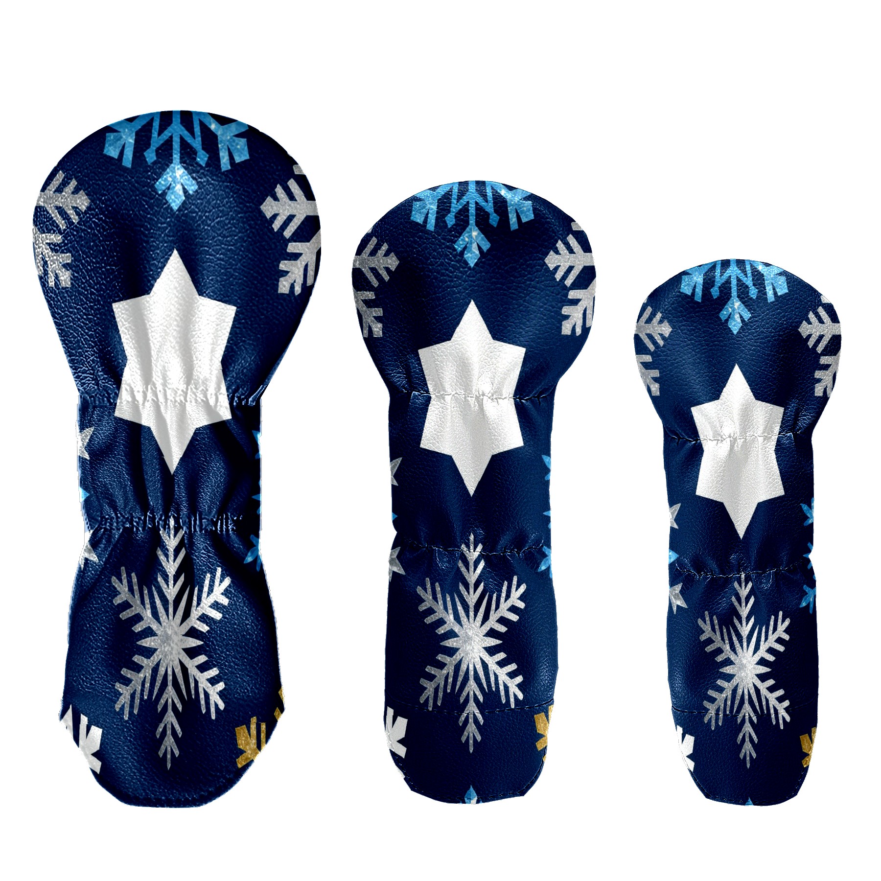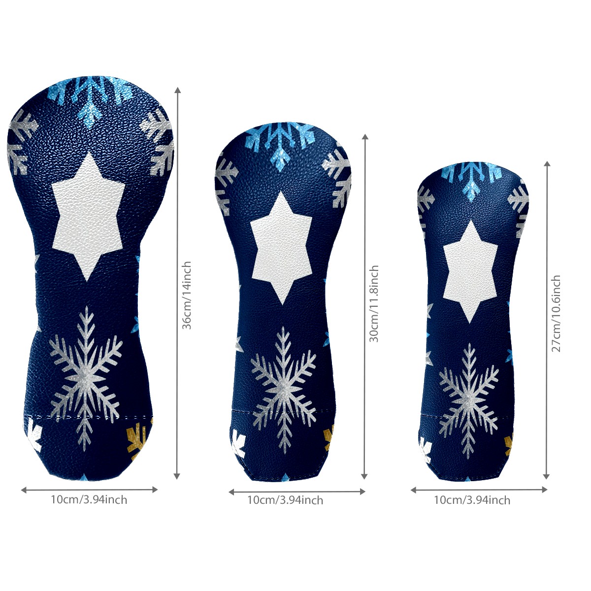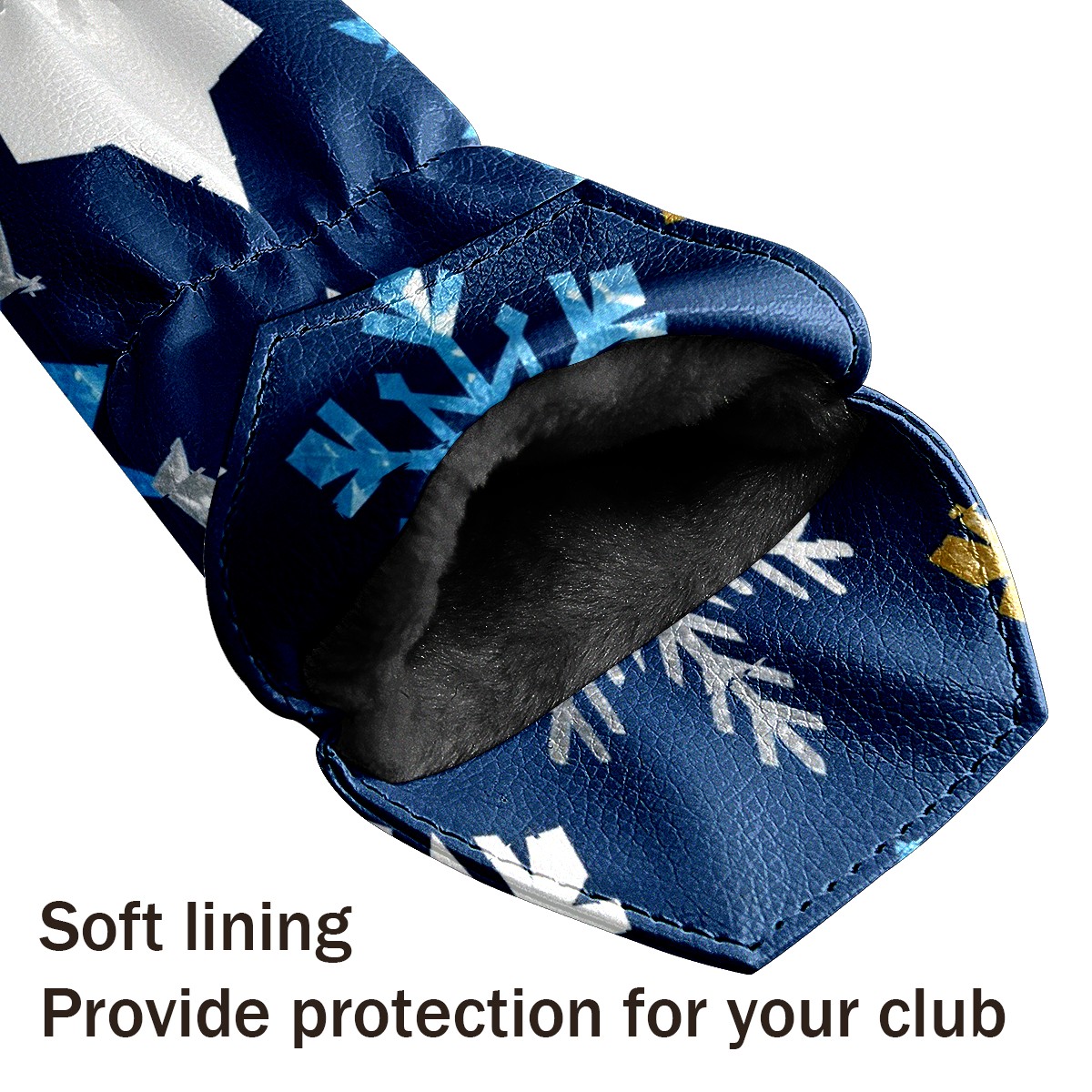 3 Pack PU Leather Golf Club Head Covers - Driver, Fairway Wood & Hybrid, Funny Golf Accessories, Ideal Golf Gift Blue Snowflake Pattern