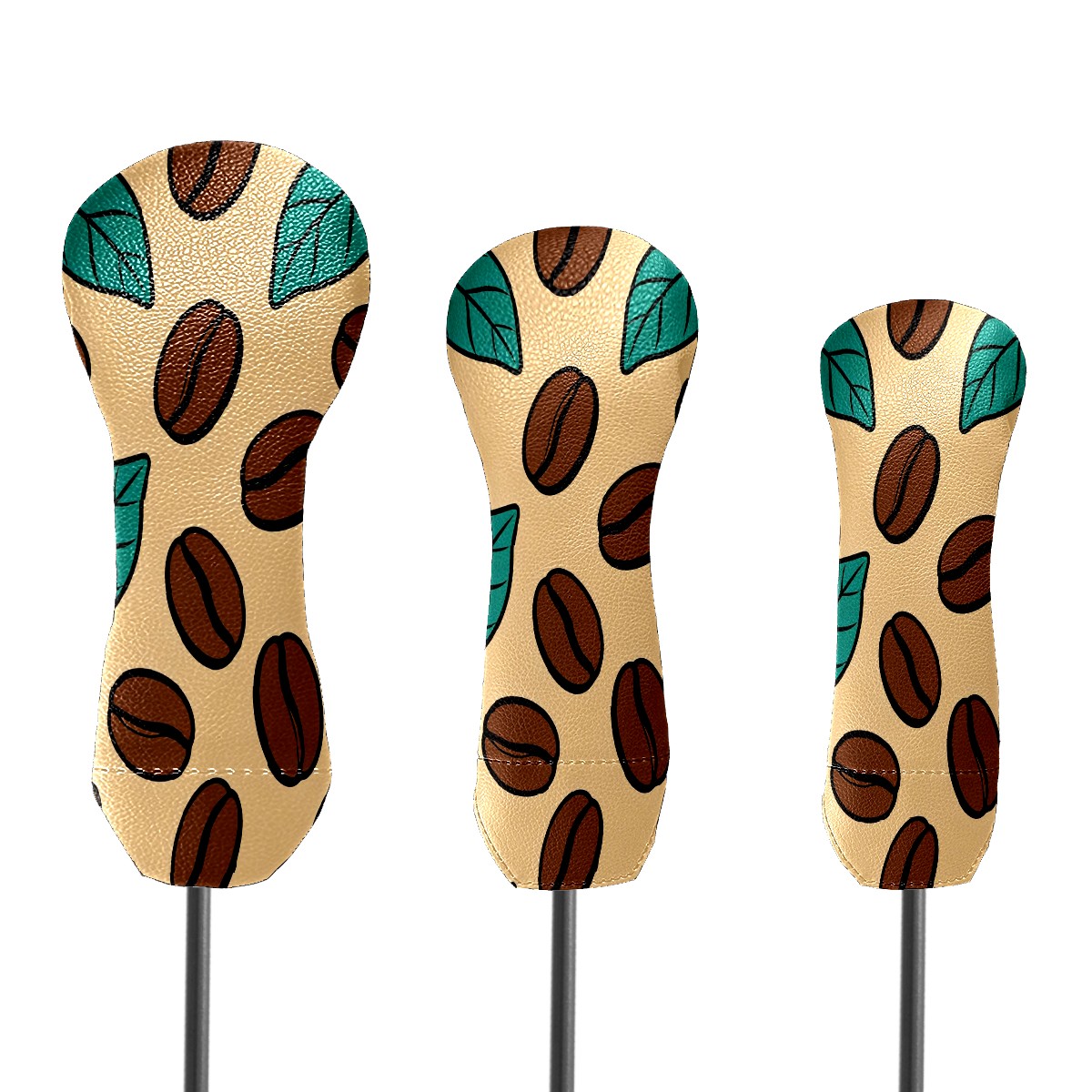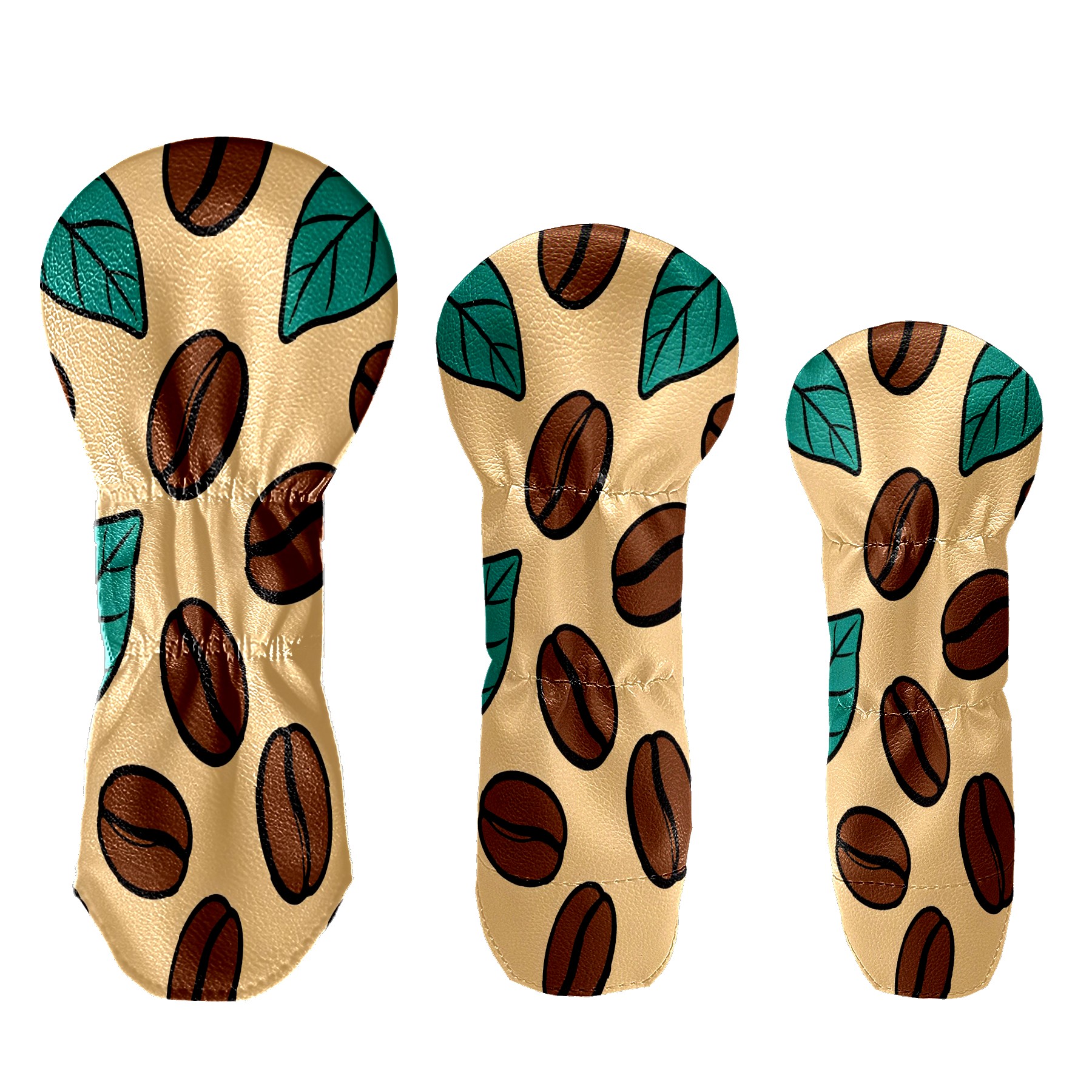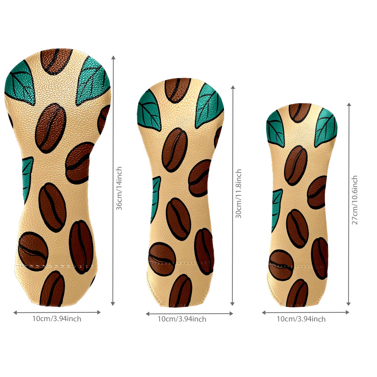 3 Pack PU Leather Golf Club Head Covers - Driver, Fairway Wood & Hybrid, Funny Golf Accessories, Ideal Golf Gift Coffee Bean Pattern