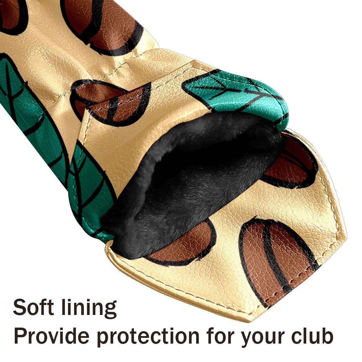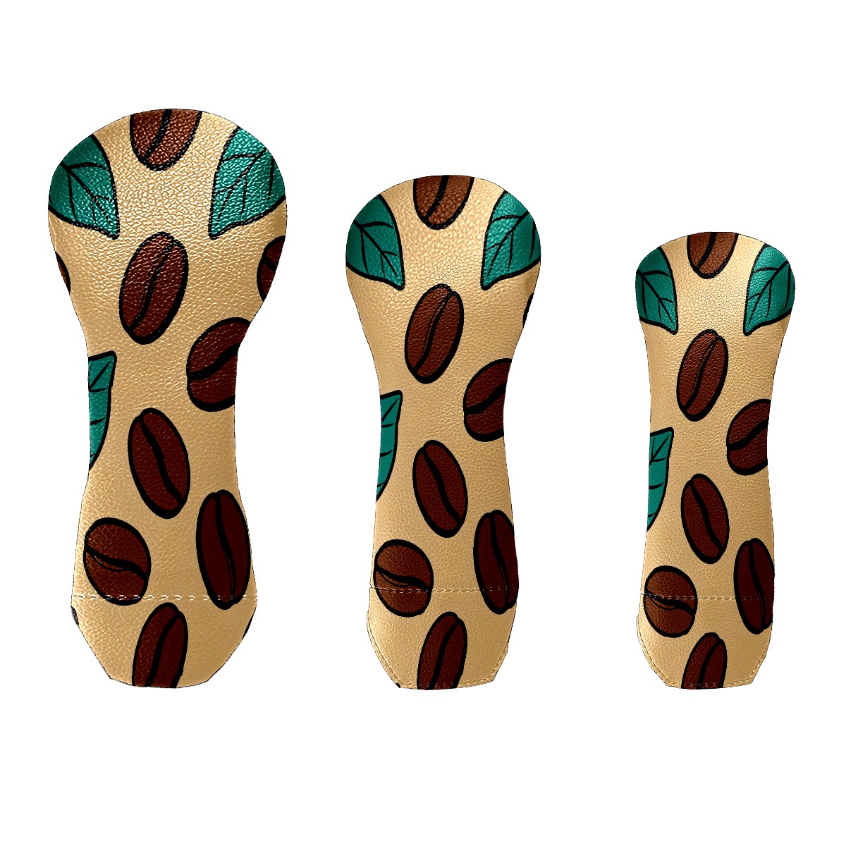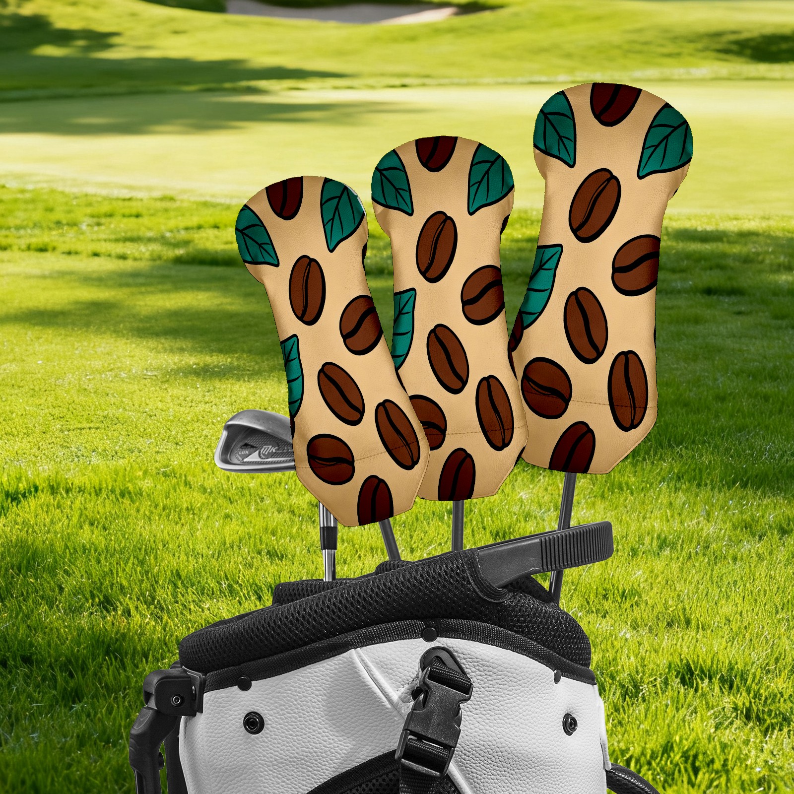 3 Pack PU Leather Golf Club Head Covers - Driver, Fairway Wood & Hybrid, Funny Golf Accessories, Ideal Golf Gift Coffee Bean Pattern