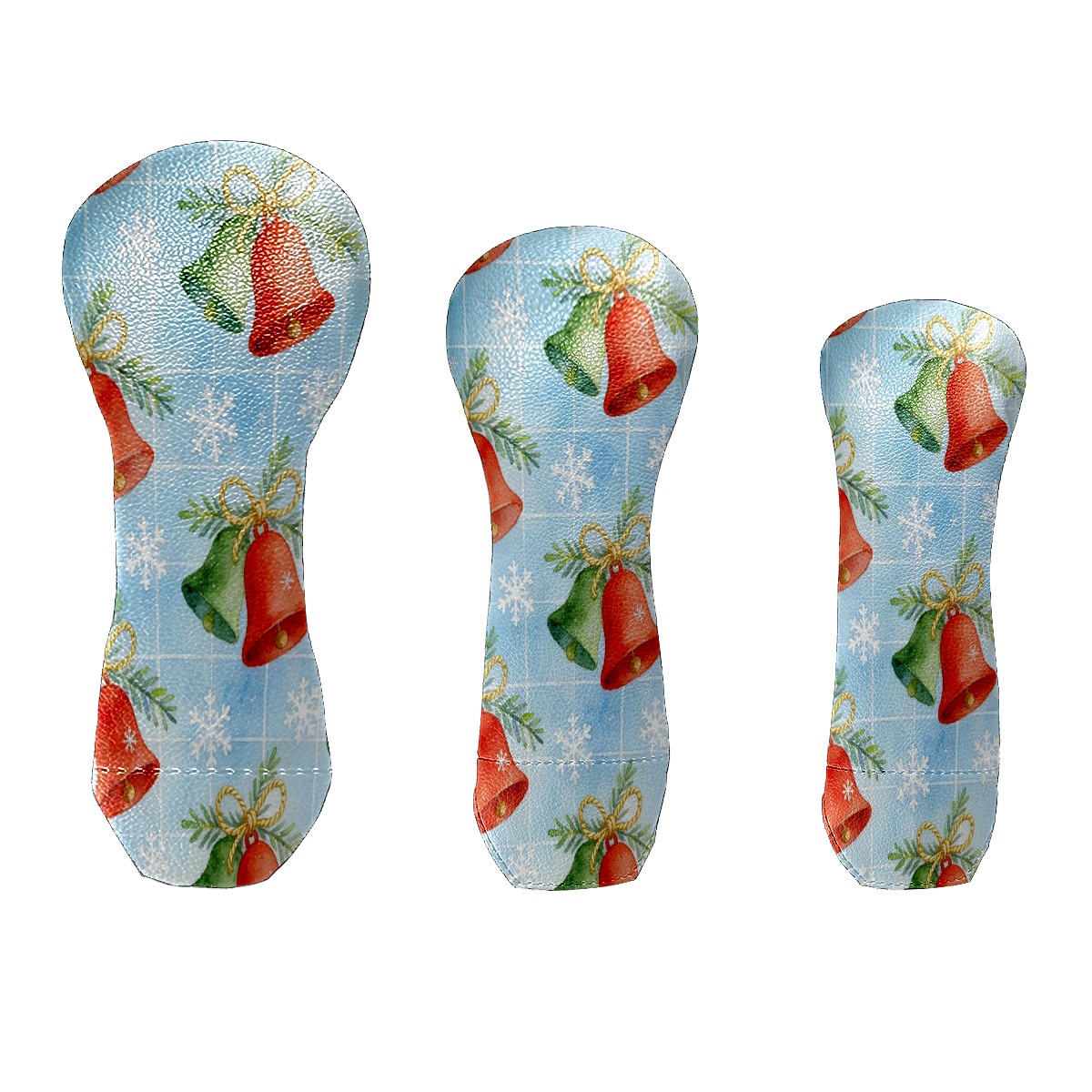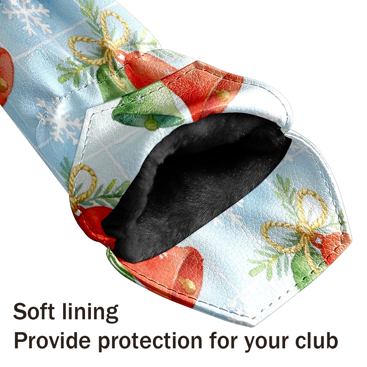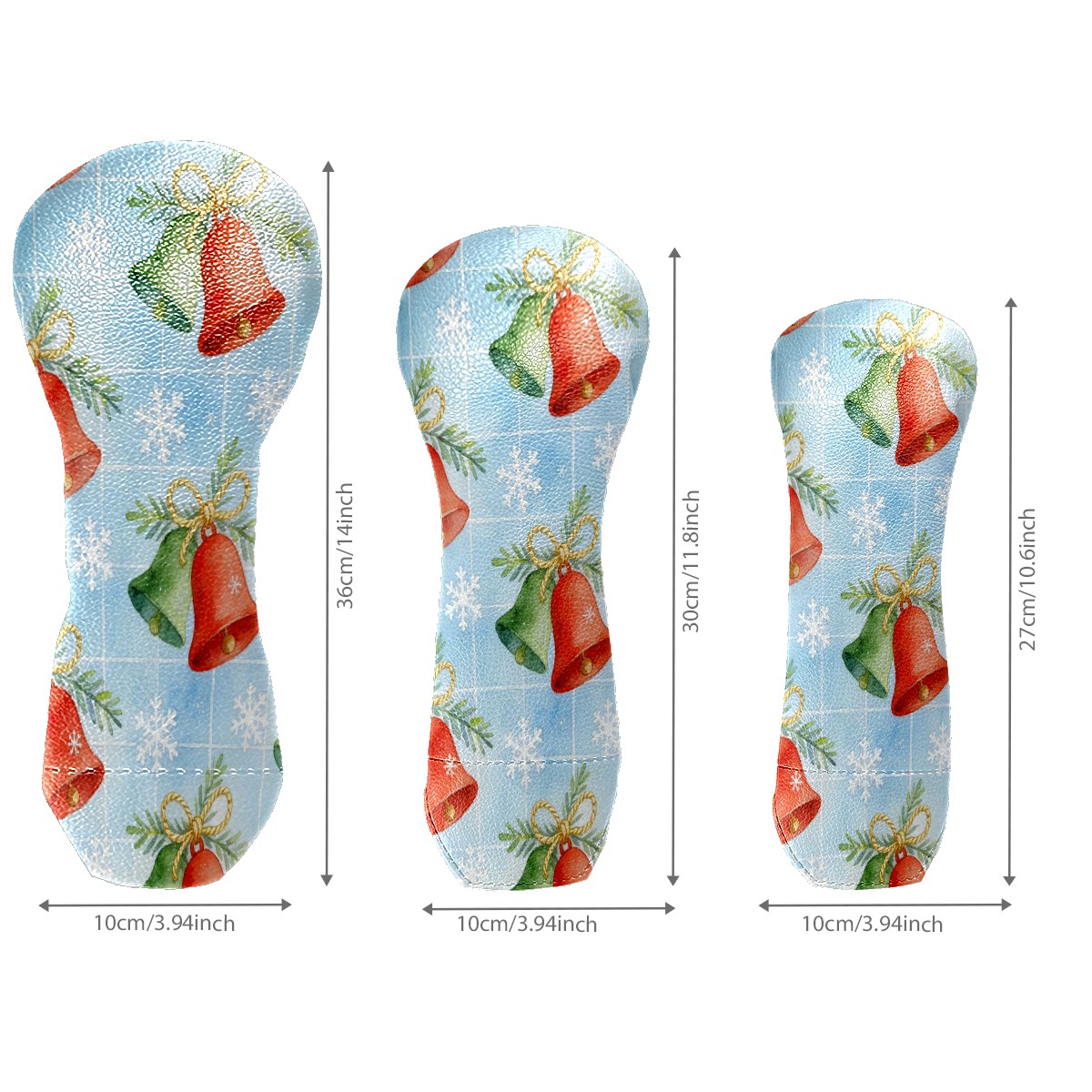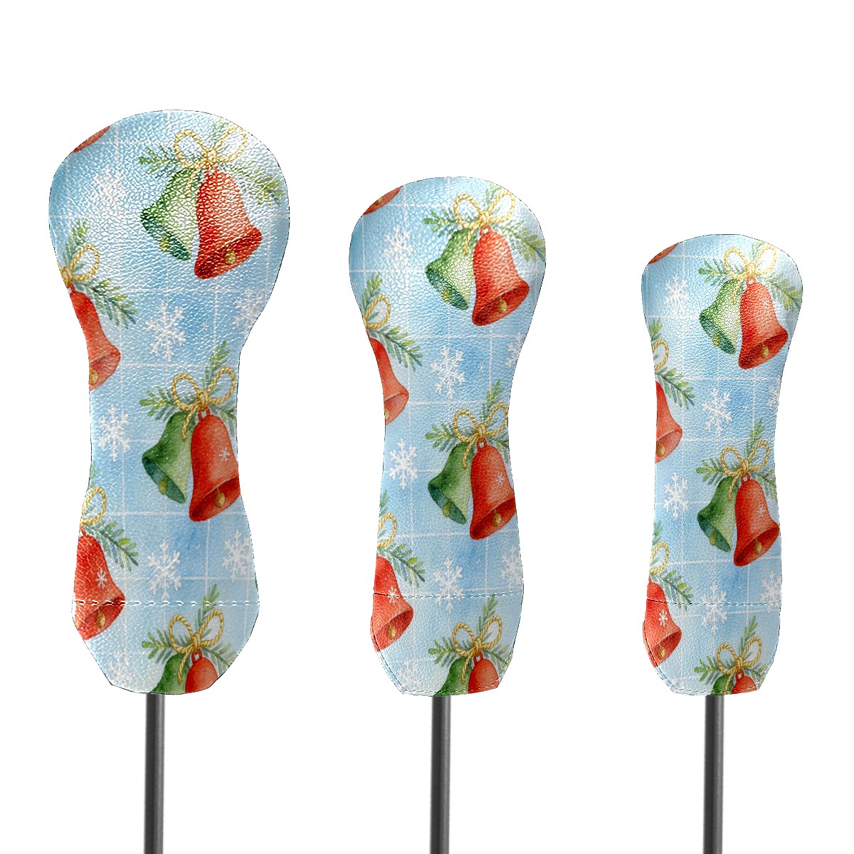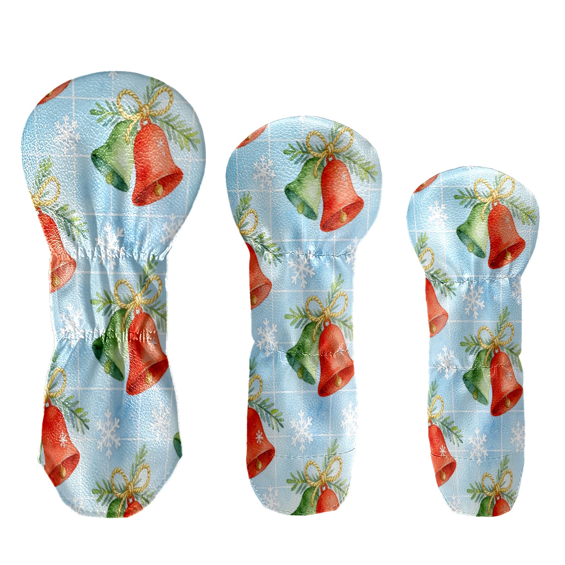 3 Pack PU Leather Golf Club Head Covers - Driver, Fairway Wood & Hybrid, Funny Golf Accessories, Ideal Golf Gift Christmas Bell Pattern