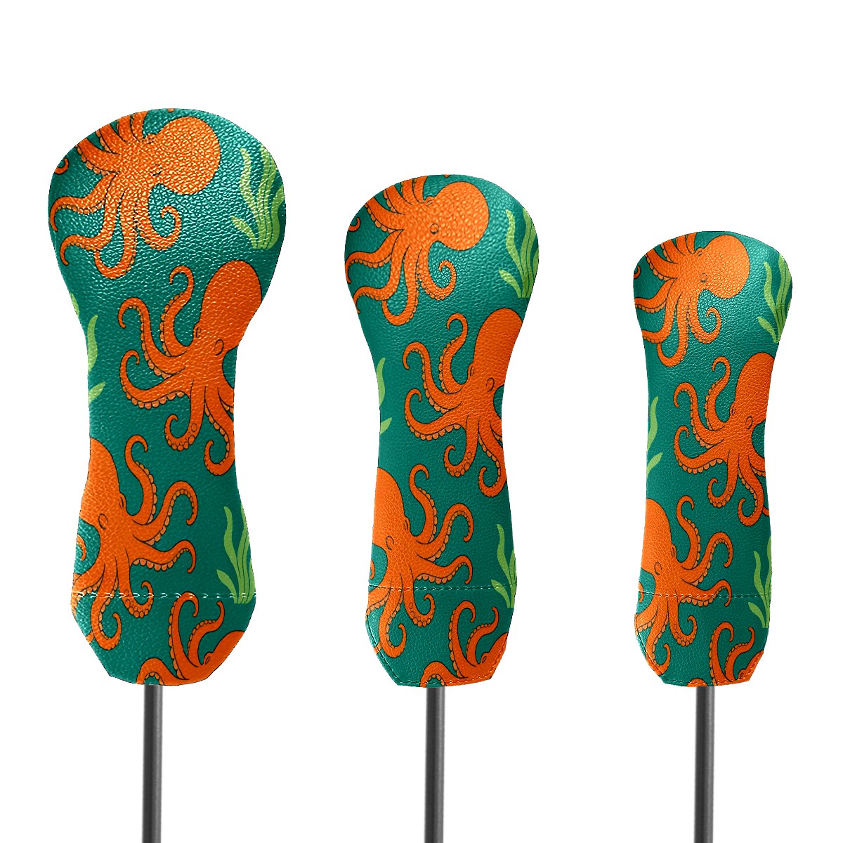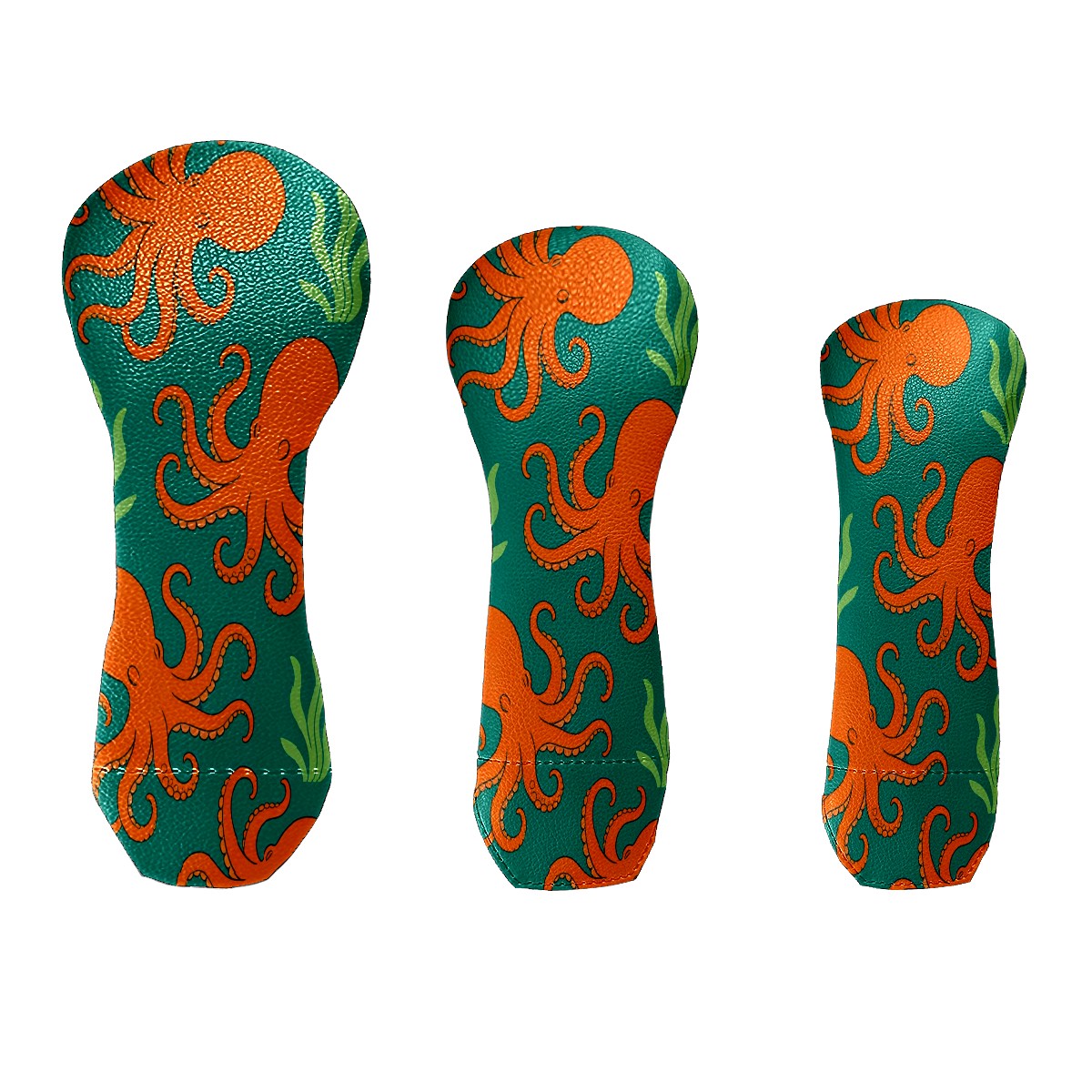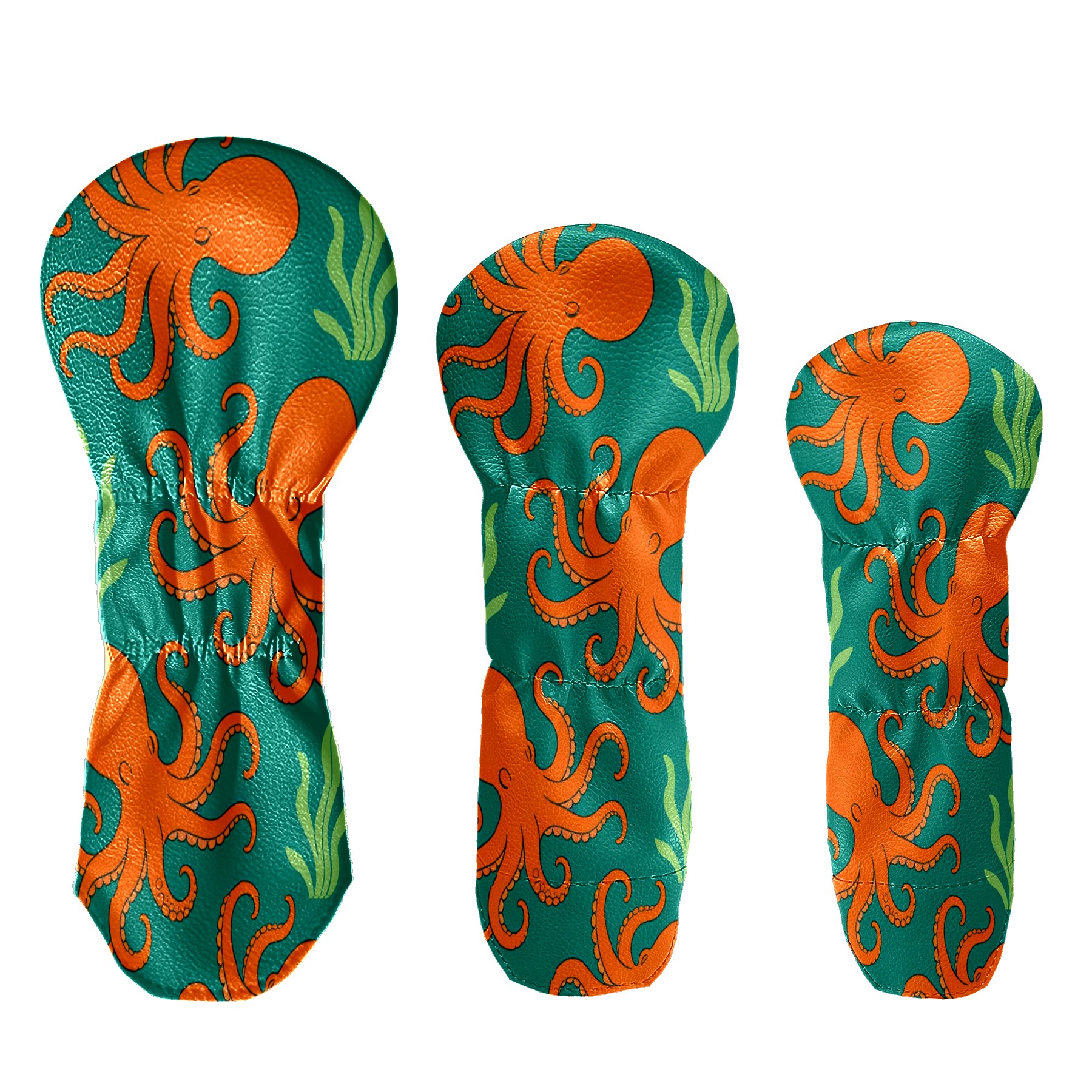 3 Pack PU Leather Golf Club Head Covers - Driver, Fairway Wood & Hybrid, Funny Golf Accessories, Ideal Golf Gift Orange Octopus Pattern