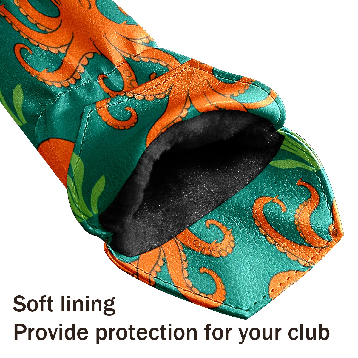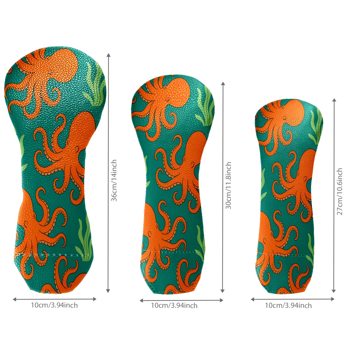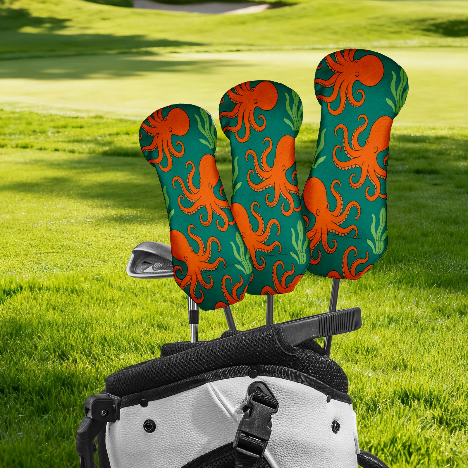 3 Pack PU Leather Golf Club Head Covers - Driver, Fairway Wood & Hybrid, Funny Golf Accessories, Ideal Golf Gift Orange Octopus Pattern