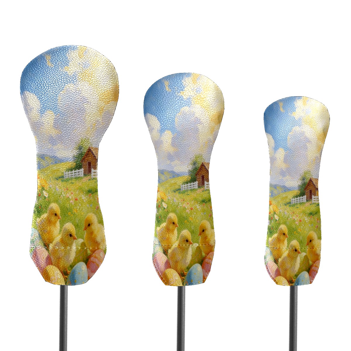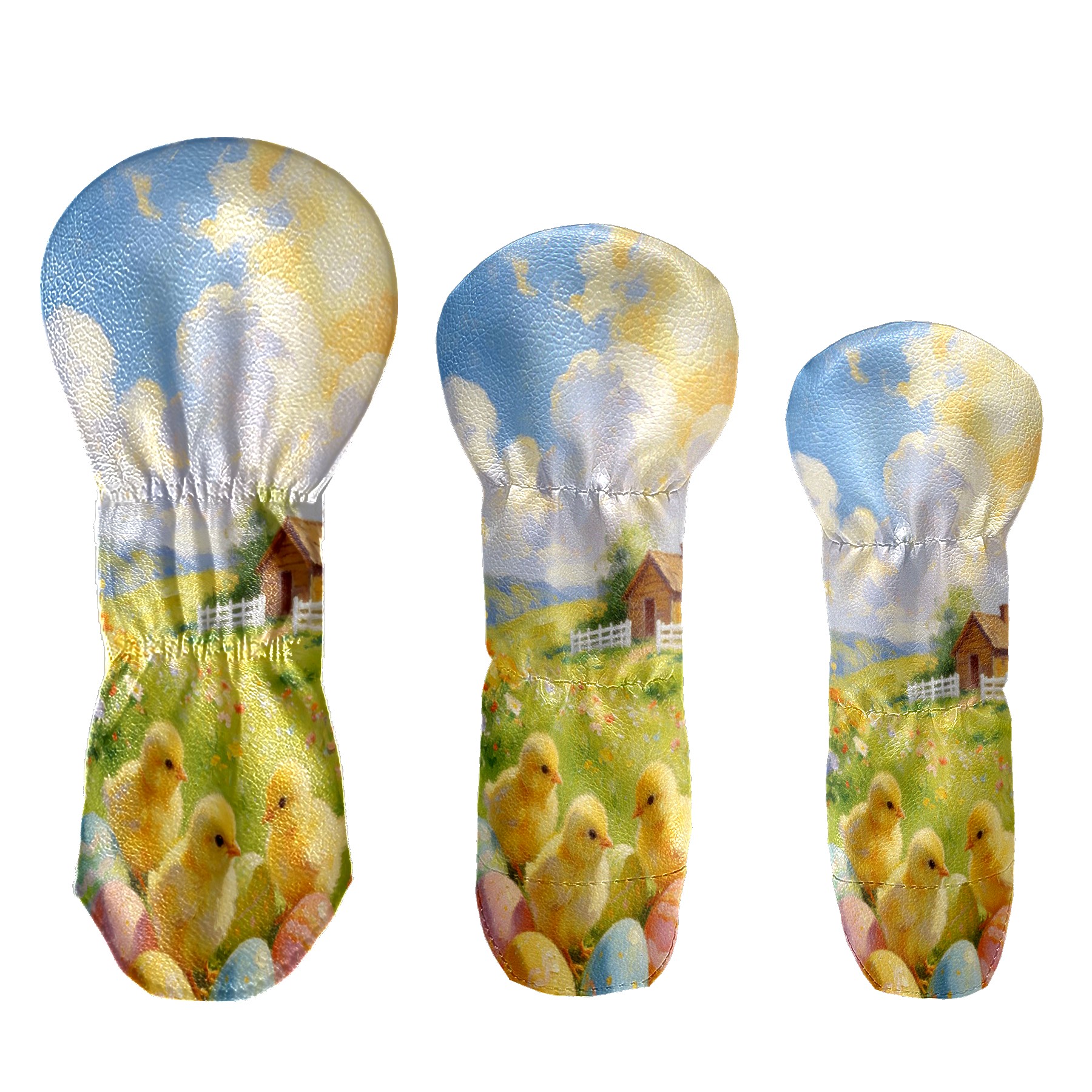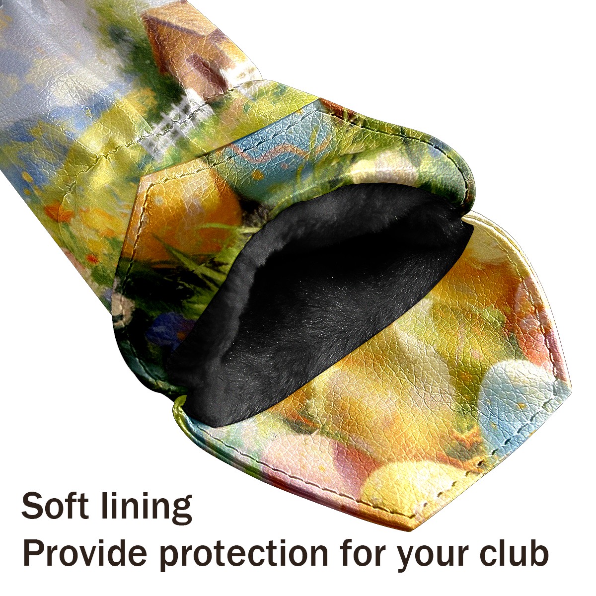 3 Pack PU Leather Golf Club Head Covers - Driver, Fairway Wood & Hybrid, Funny Golf Accessories, Ideal Golf Gift Oil Painting Duck Pattern