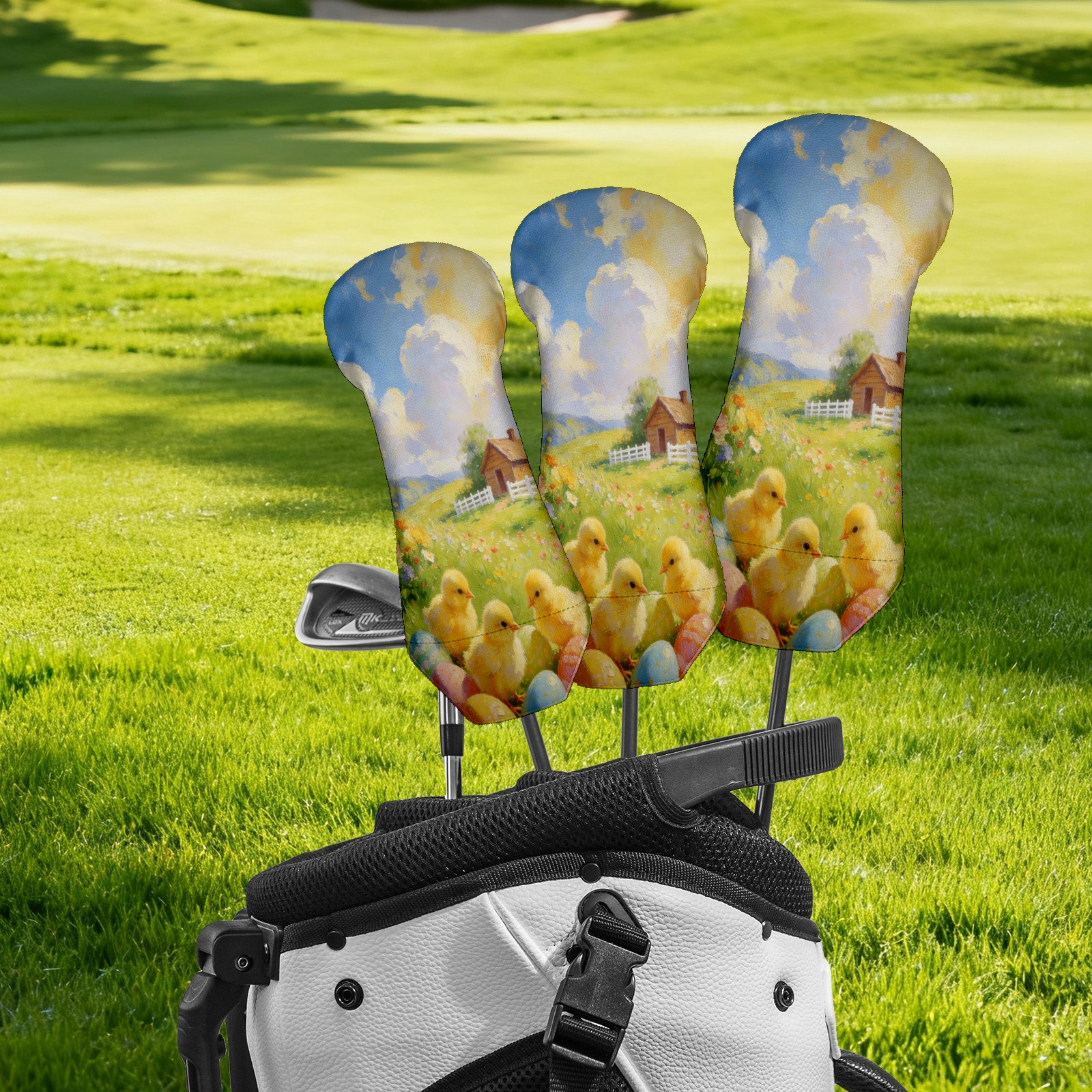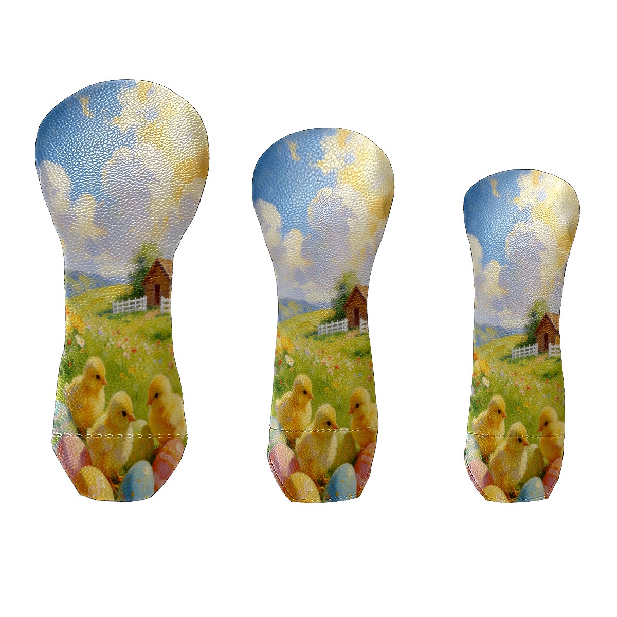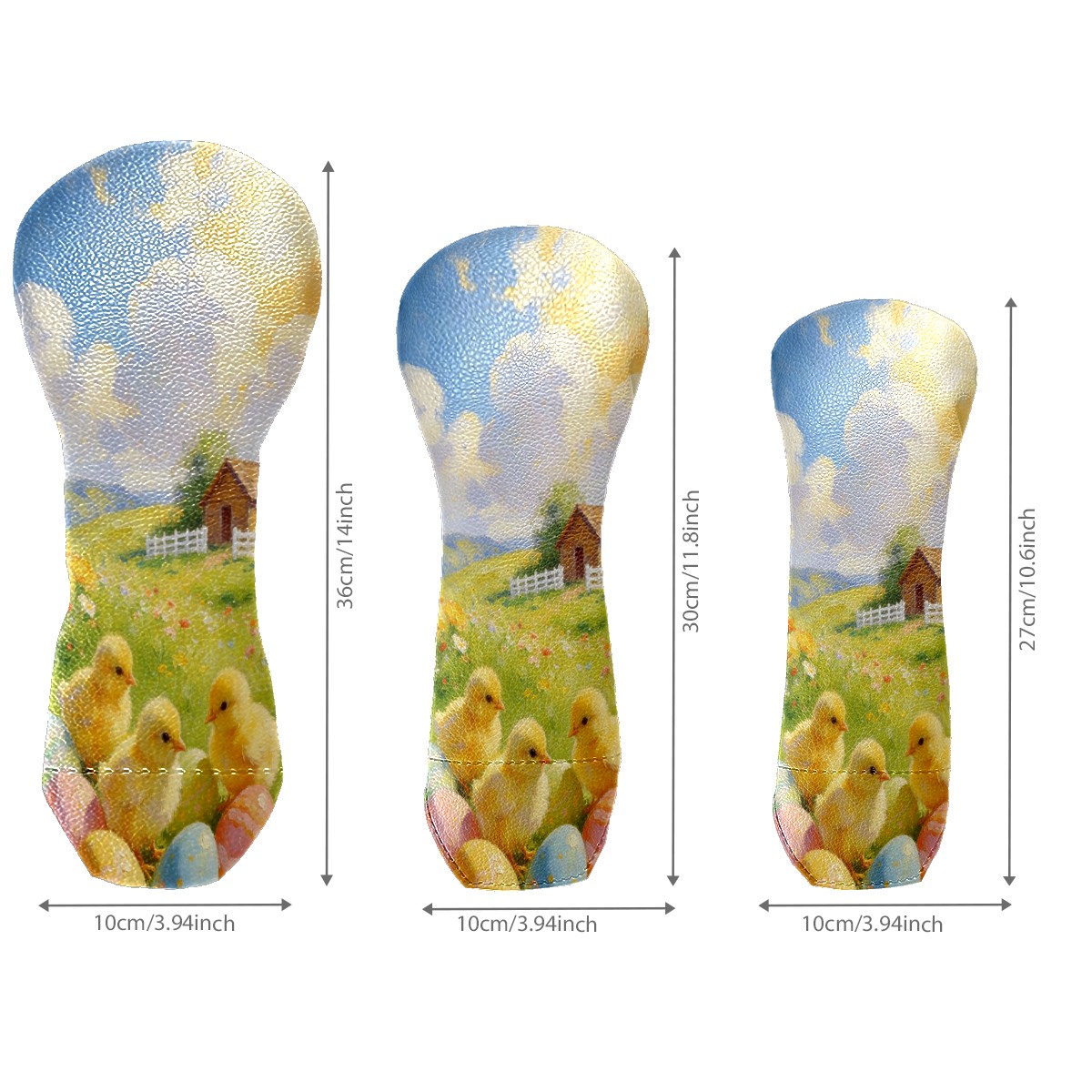 3 Pack PU Leather Golf Club Head Covers - Driver, Fairway Wood & Hybrid, Funny Golf Accessories, Ideal Golf Gift Oil Painting Duck Pattern