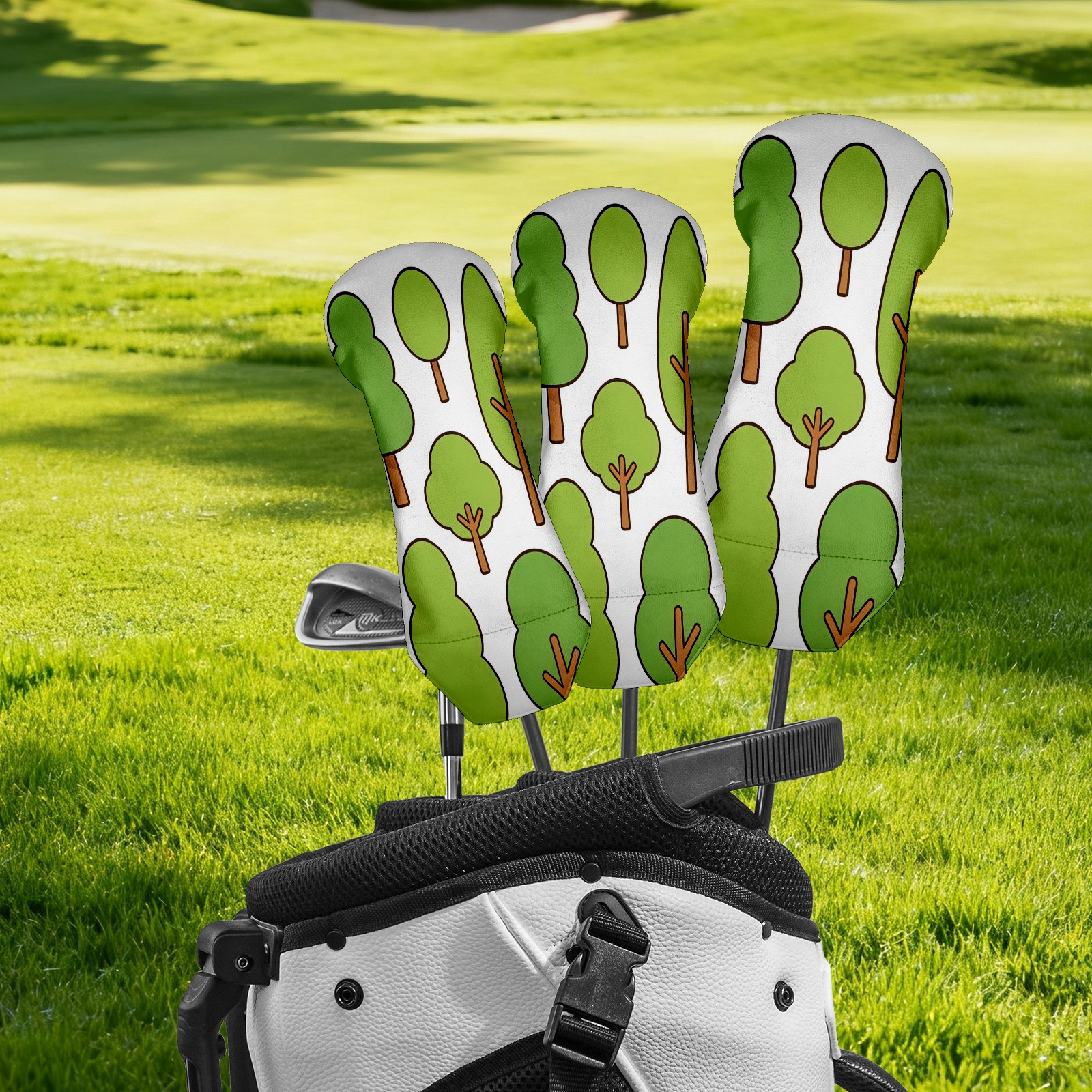 3 Pack PU Leather Golf Club Head Covers - Driver, Fairway Wood & Hybrid, Funny Golf Accessories, Ideal Golf Gift Tree Pattern