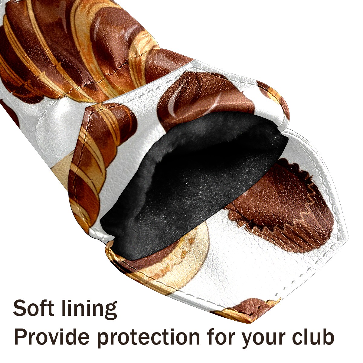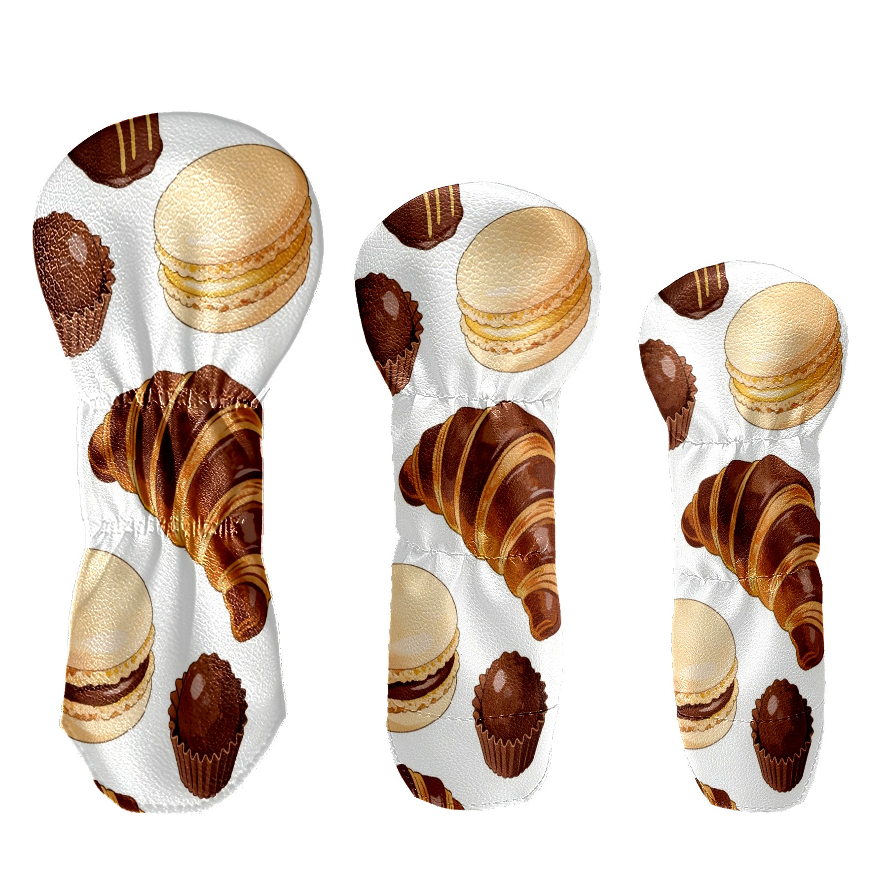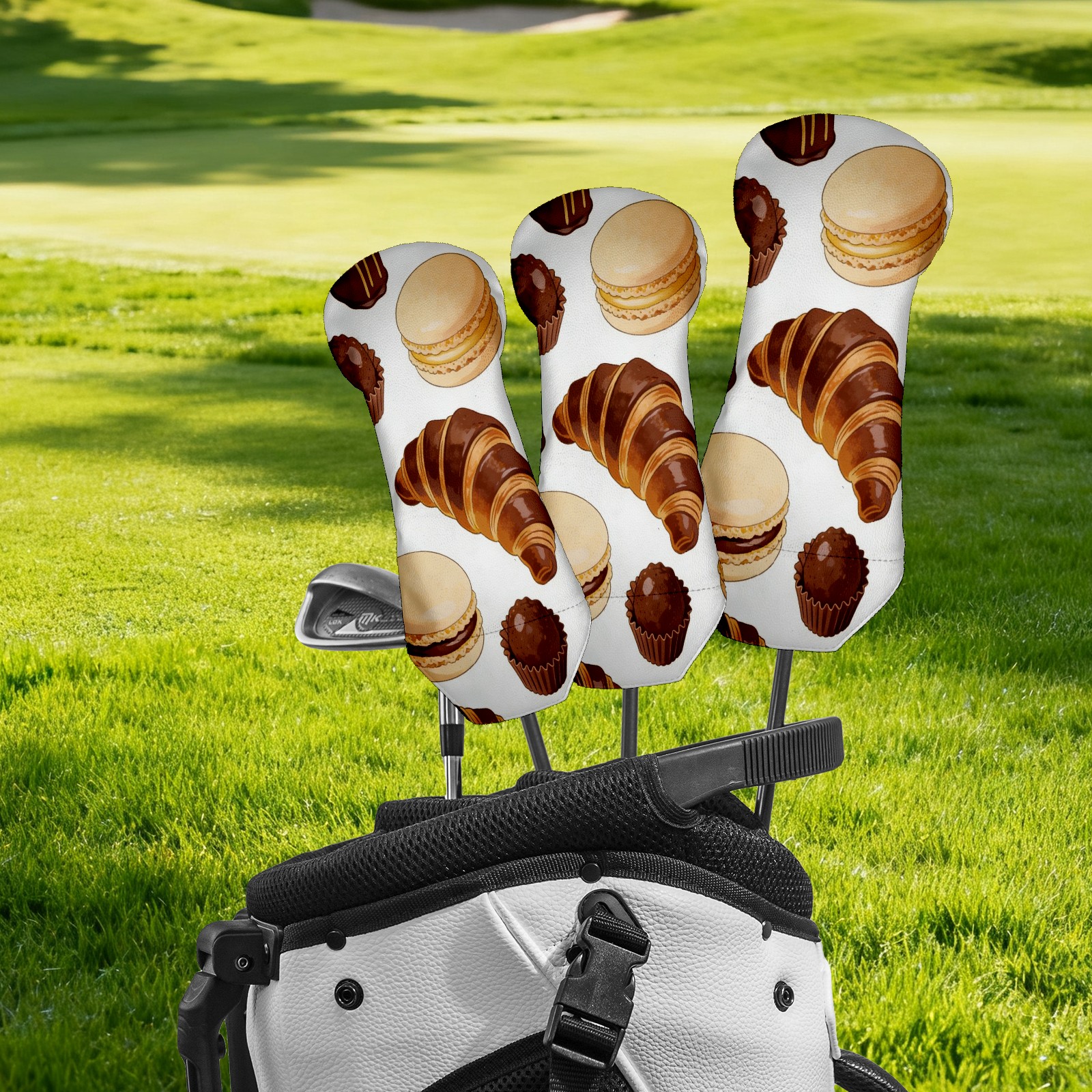 3 Pack PU Leather Golf Club Head Covers - Driver, Fairway Wood & Hybrid, Funny Golf Accessories, Ideal Golf Gift Cake Roll Patterns