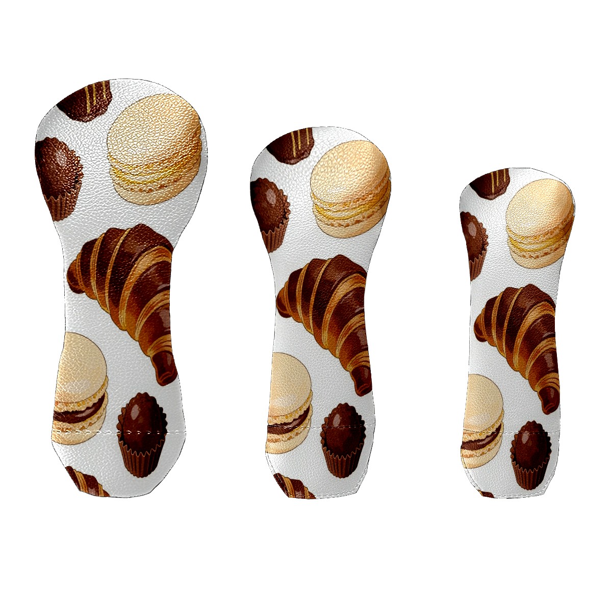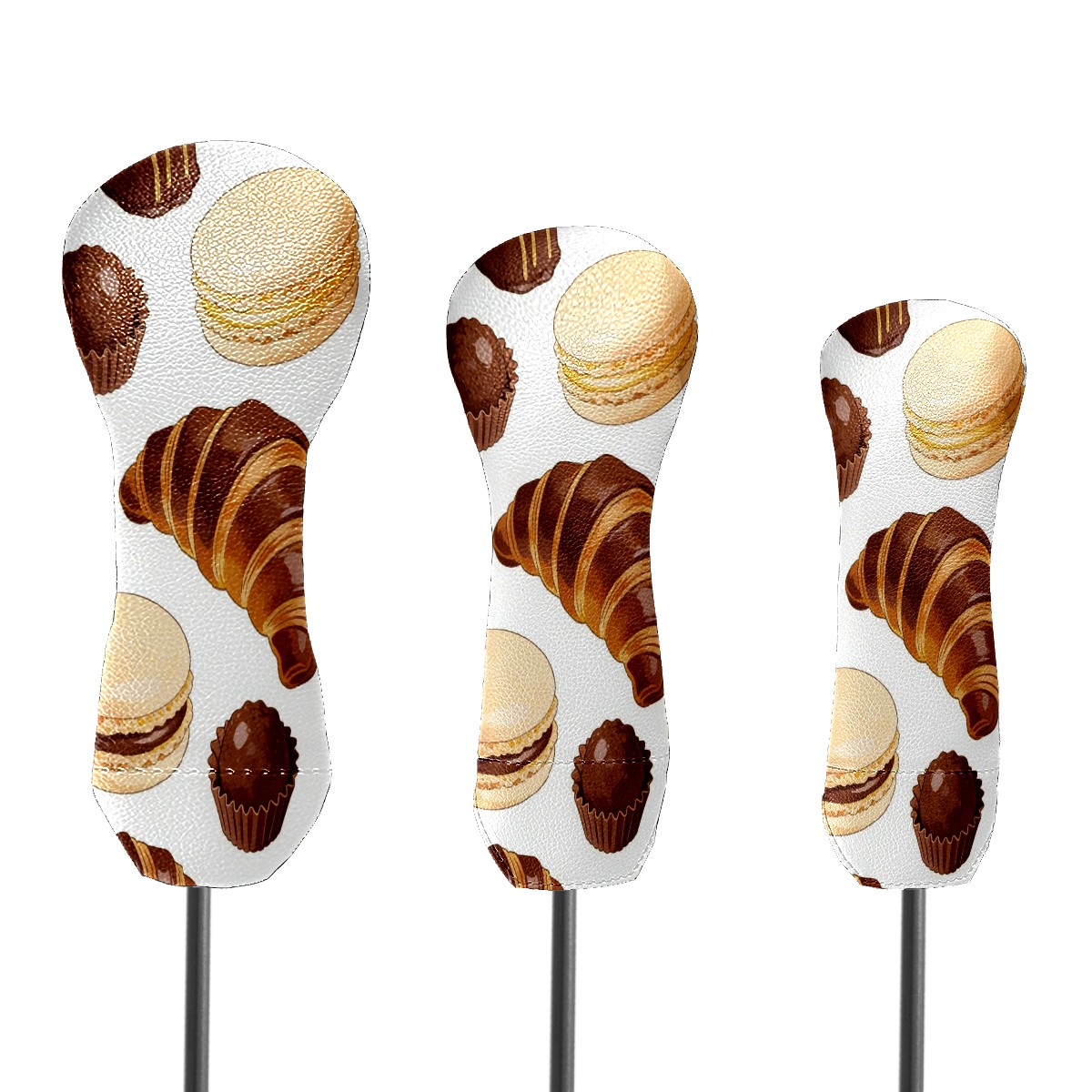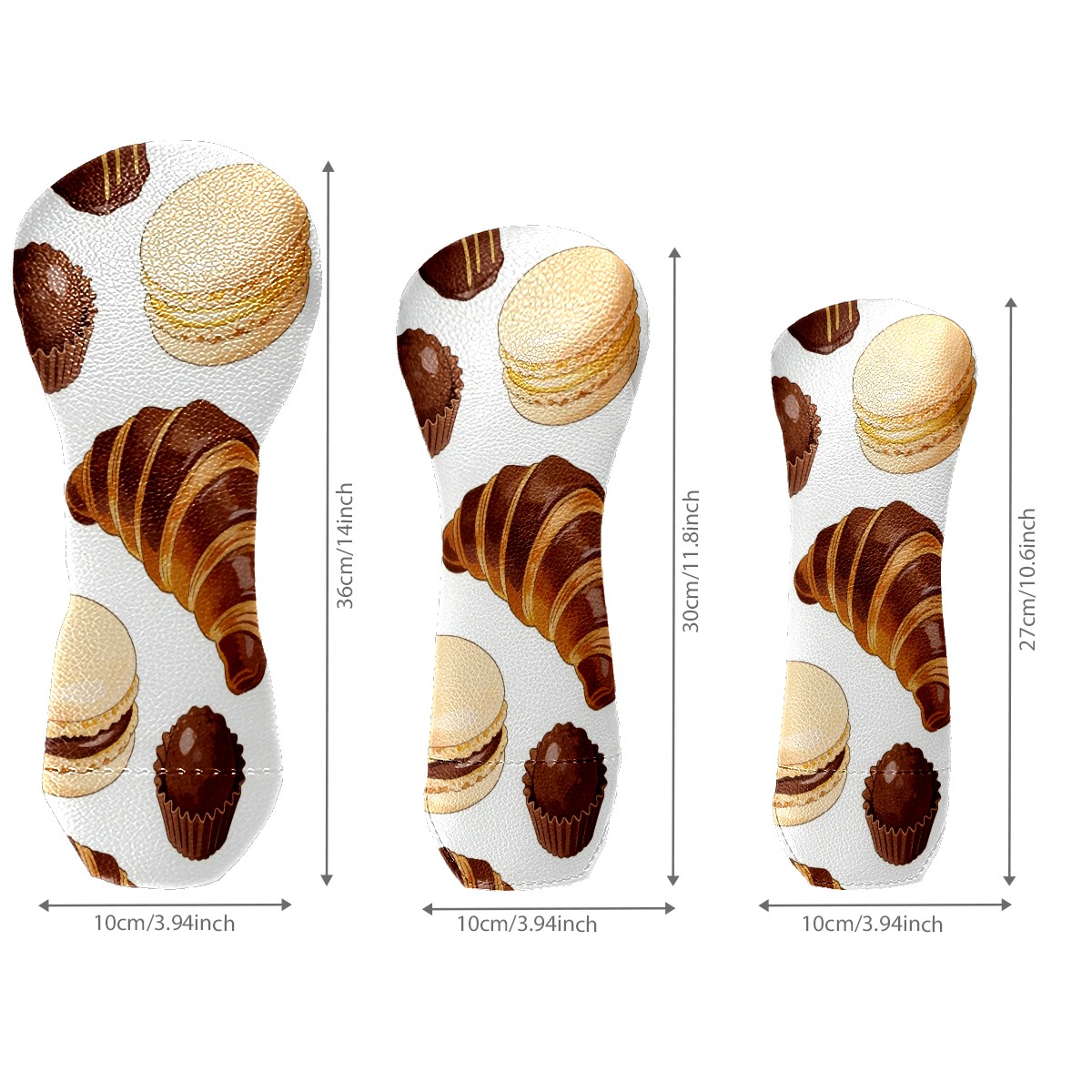 3 Pack PU Leather Golf Club Head Covers - Driver, Fairway Wood & Hybrid, Funny Golf Accessories, Ideal Golf Gift Cake Roll Patterns