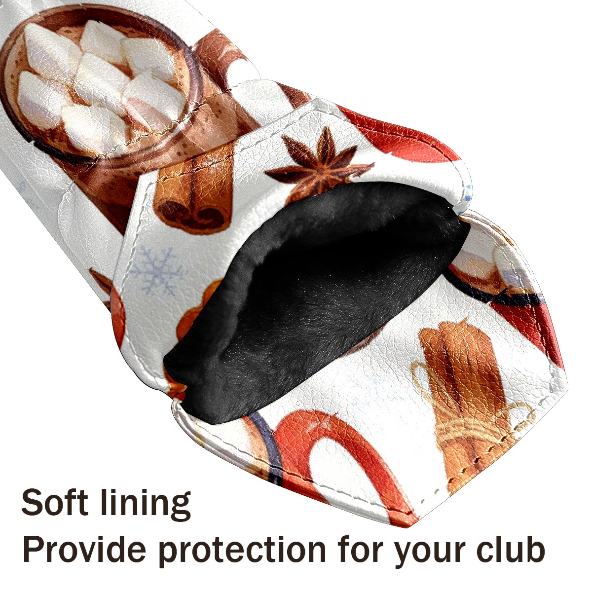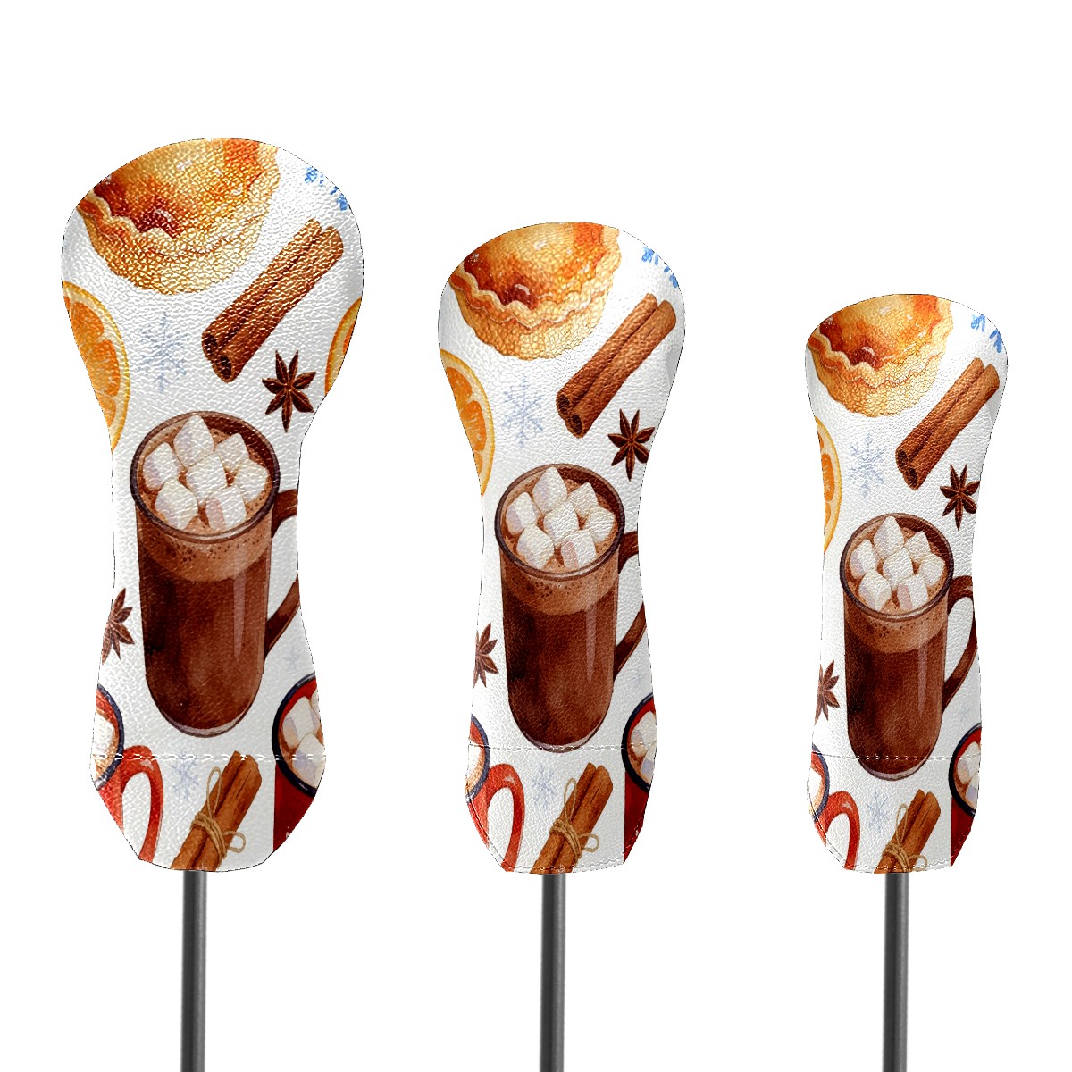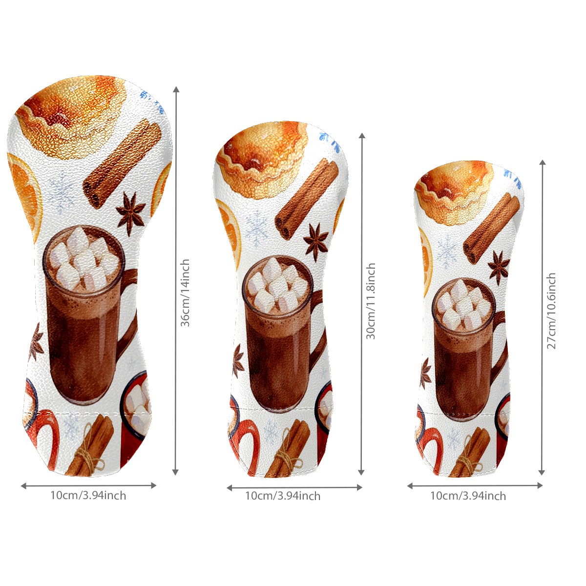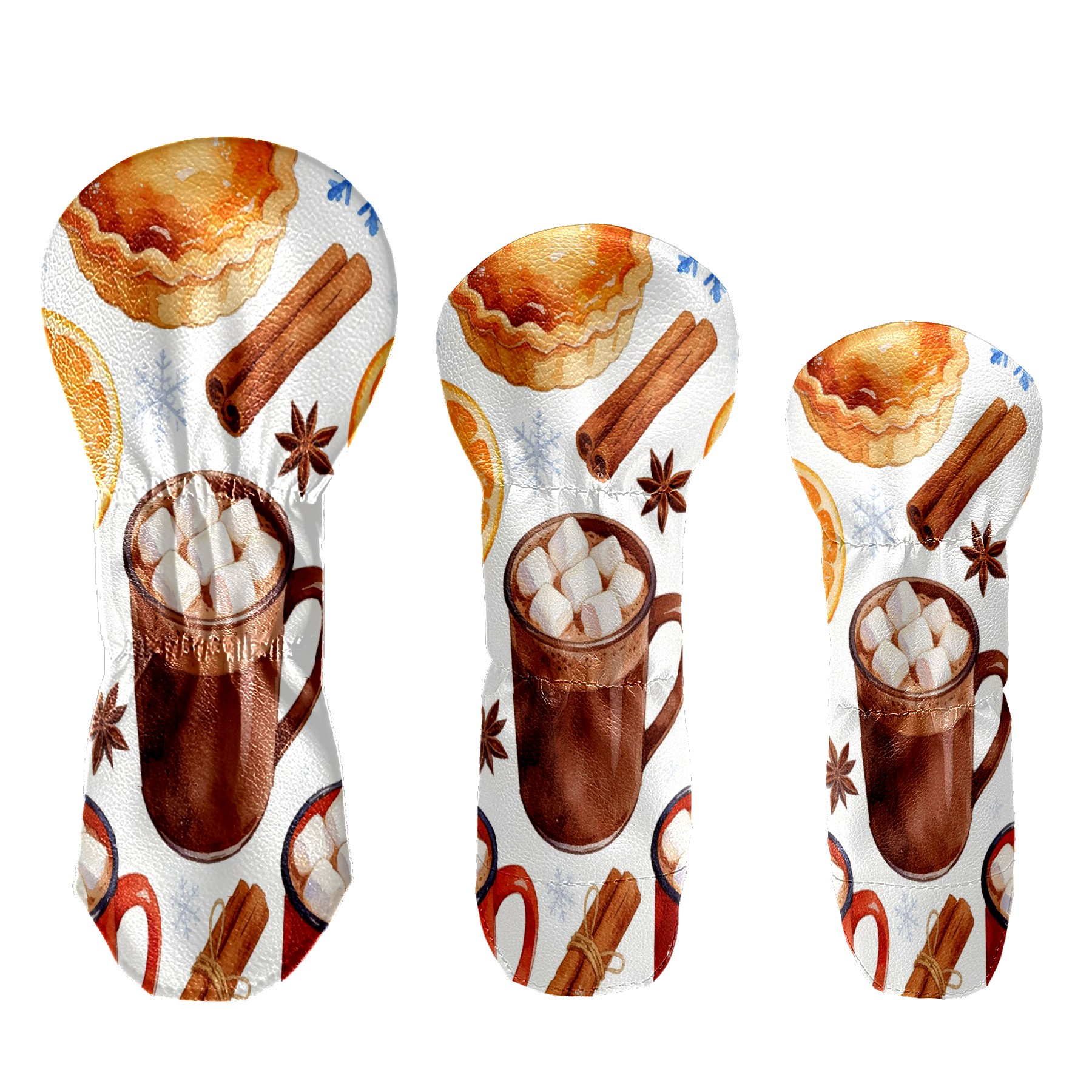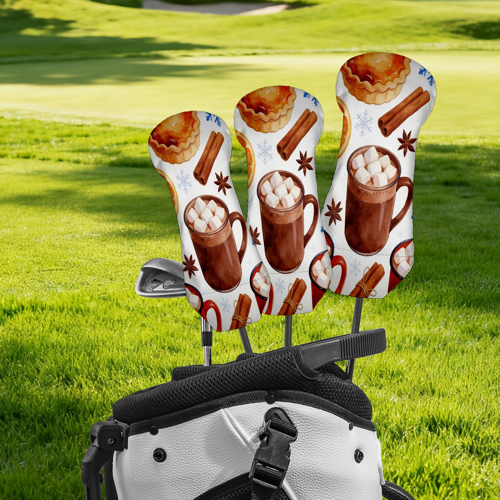 3 Pack PU Leather Golf Club Head Covers - Driver, Fairway Wood & Hybrid, Funny Golf Accessories, Ideal Golf Gift Coffee Dessert Pattern