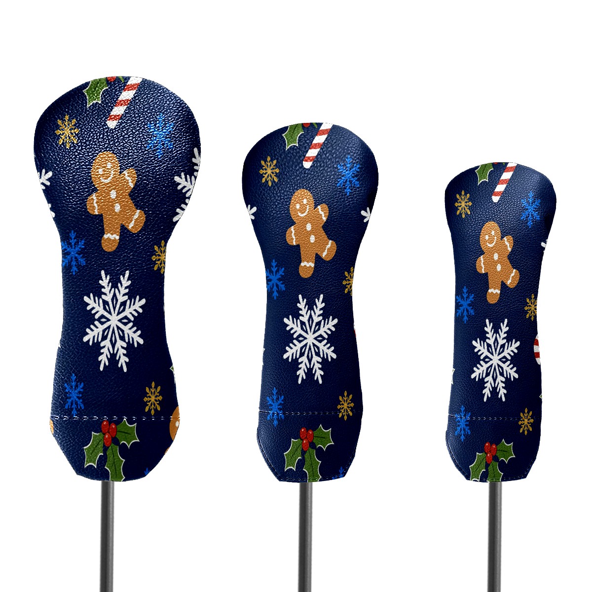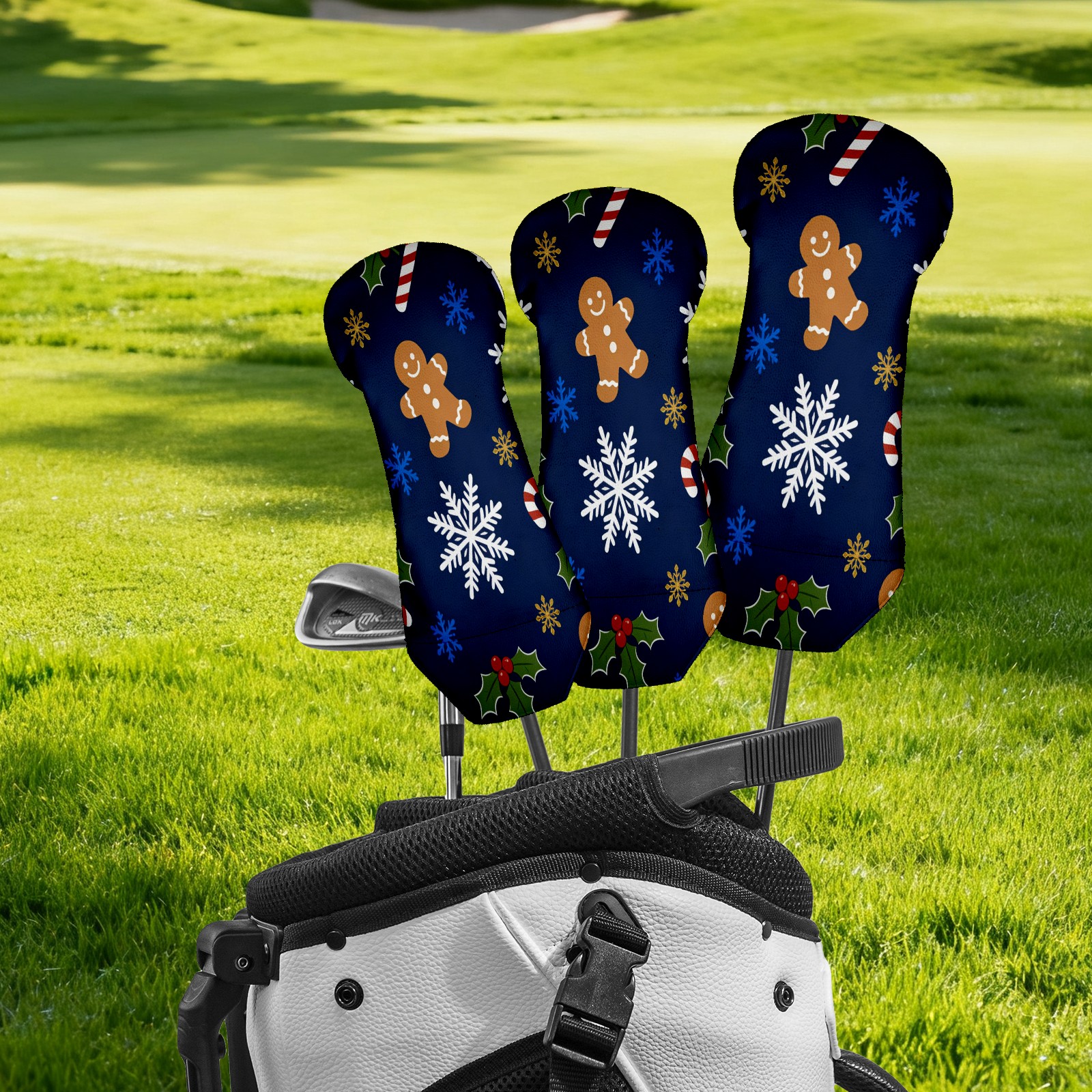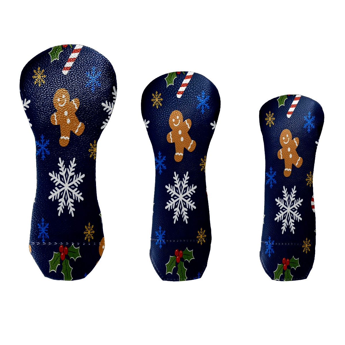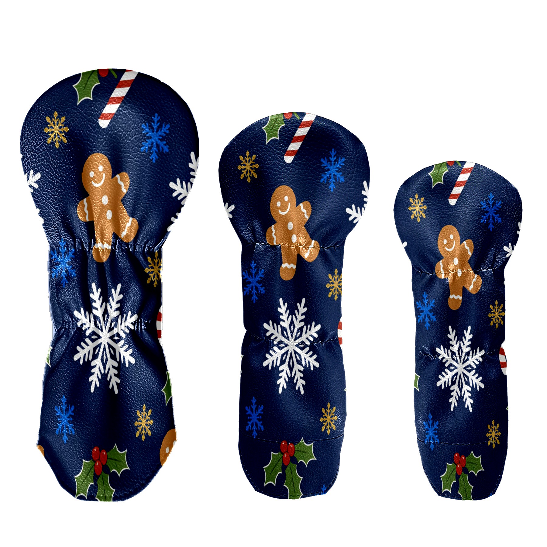 3 Pack PU Leather Golf Club Head Covers - Driver, Fairway Wood & Hybrid, Funny Golf Accessories, Ideal Golf Gift Christmas Snowflake Pattern
