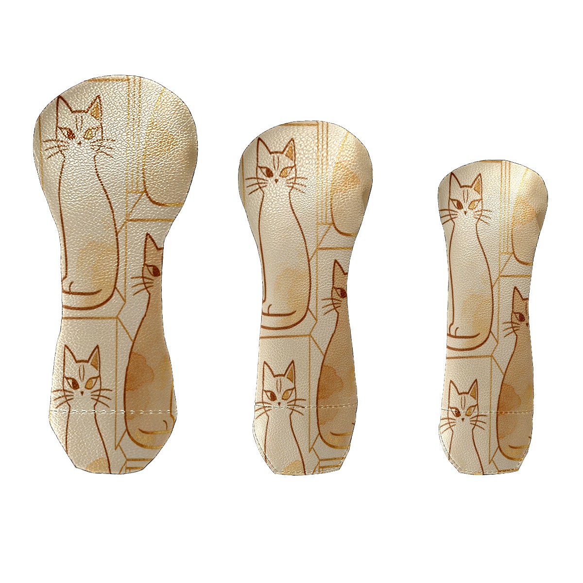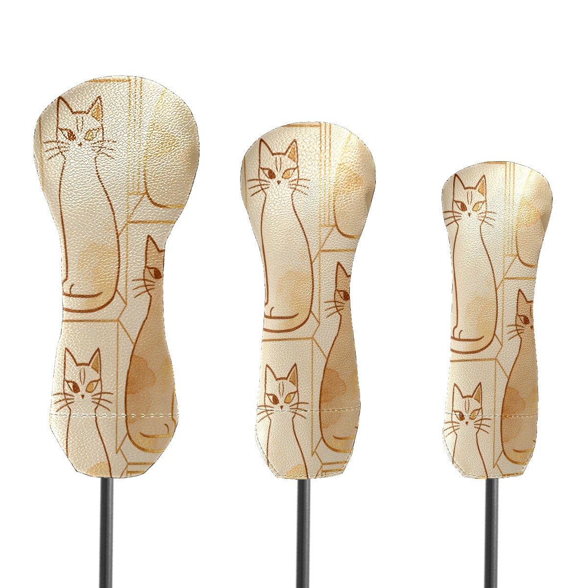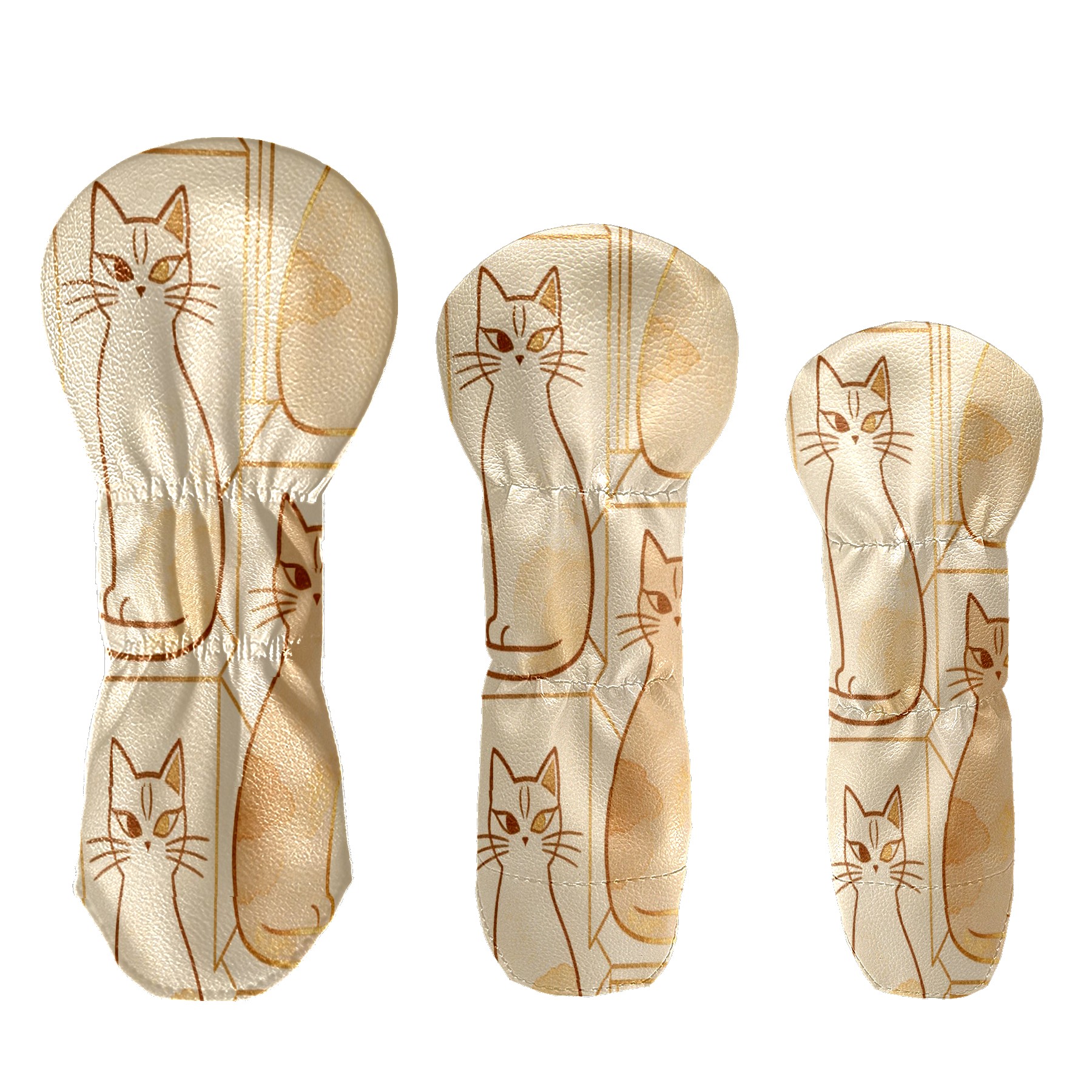 3 Pack PU Leather Golf Club Head Covers - Driver, Fairway Wood & Hybrid, Funny Golf Accessories, Ideal Golf Gift Simple Cat Pattern
