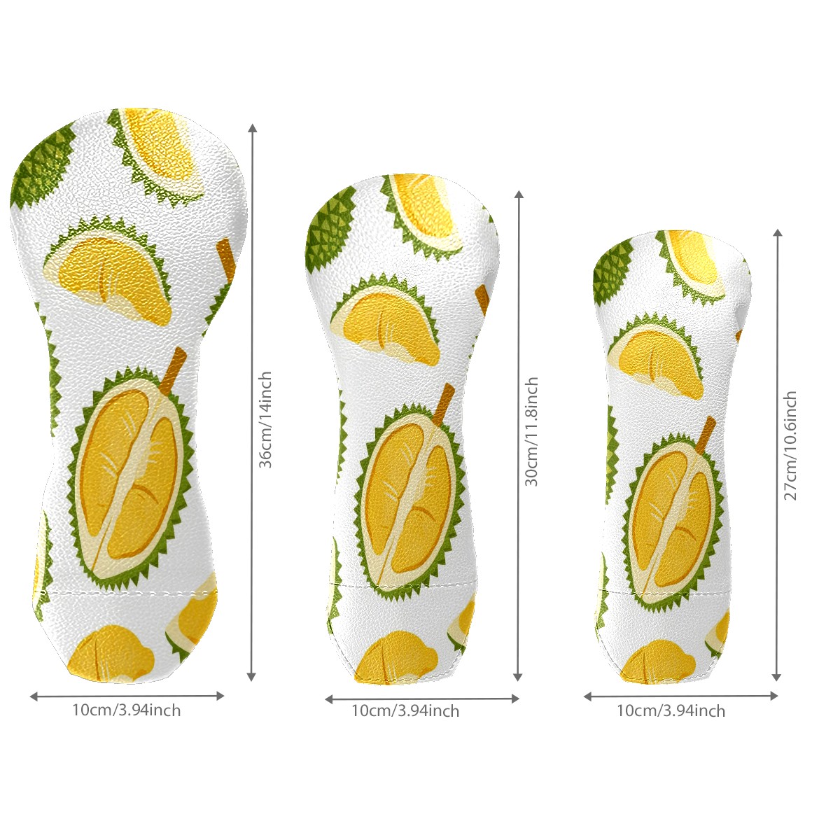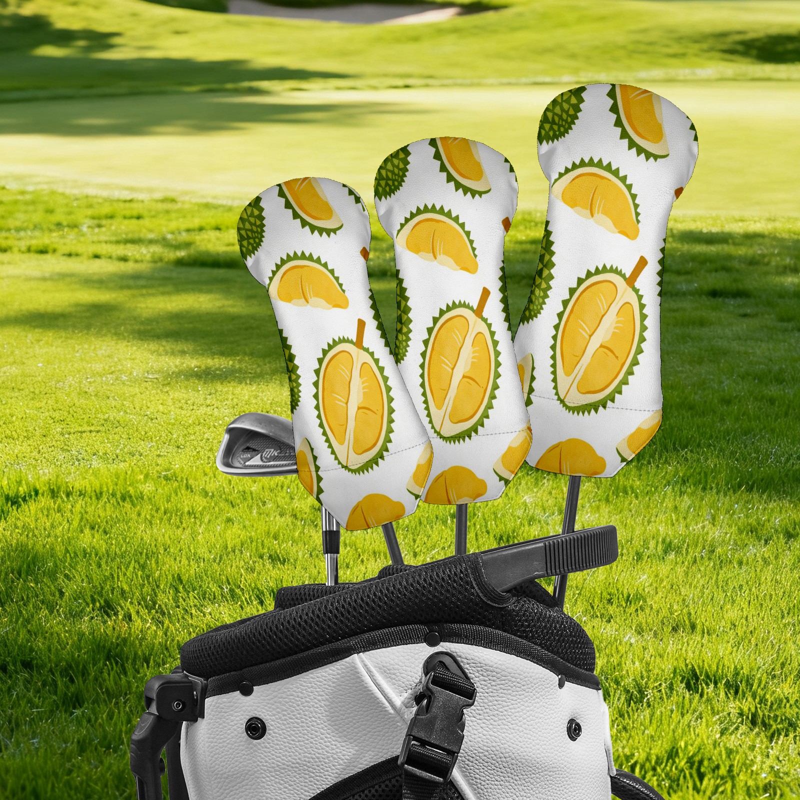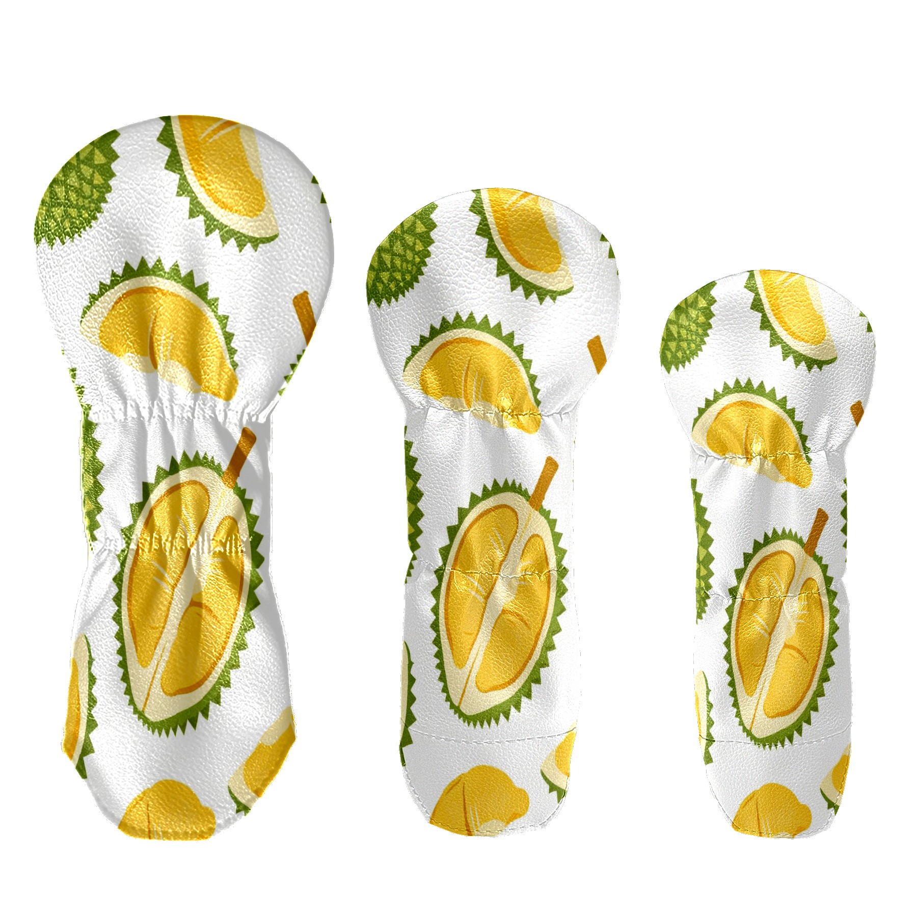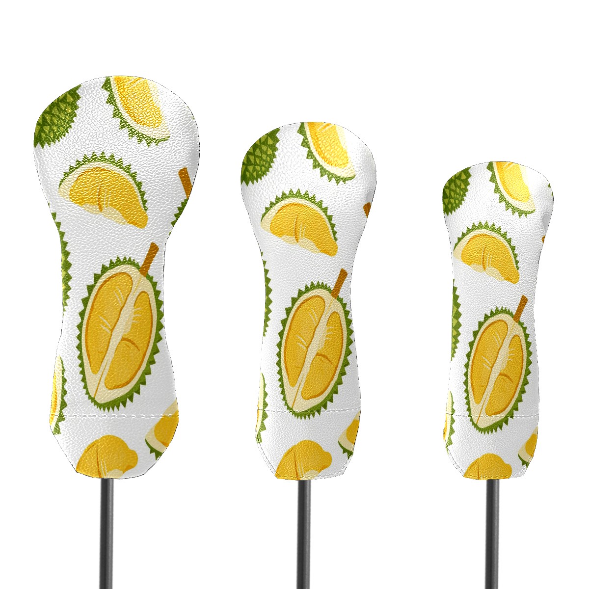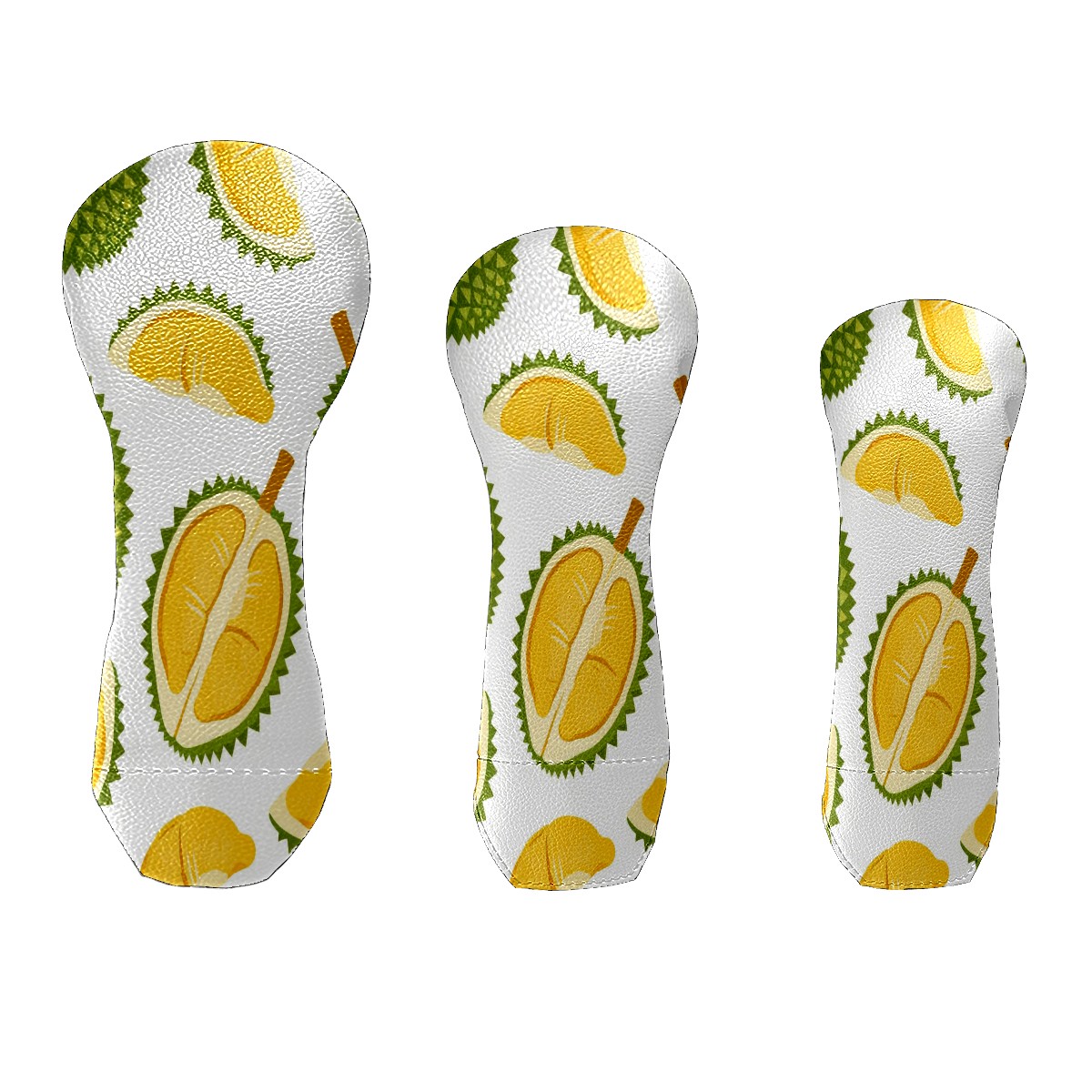 3 Pack PU Leather Golf Club Head Covers - Driver, Fairway Wood & Hybrid, Funny Golf Accessories, Ideal Golf Gift Durian Pattern