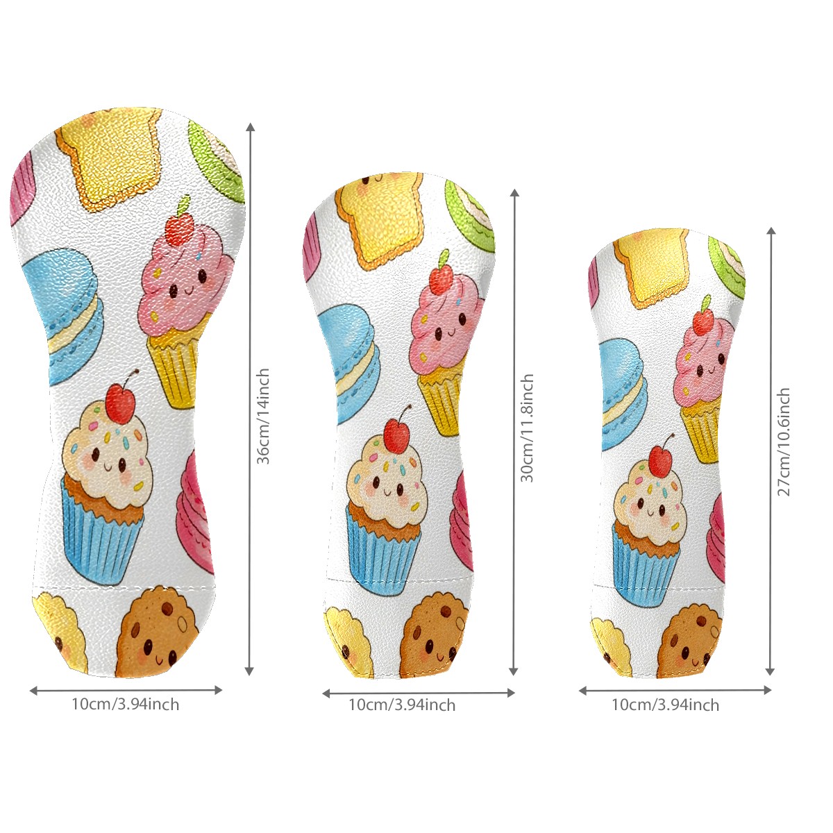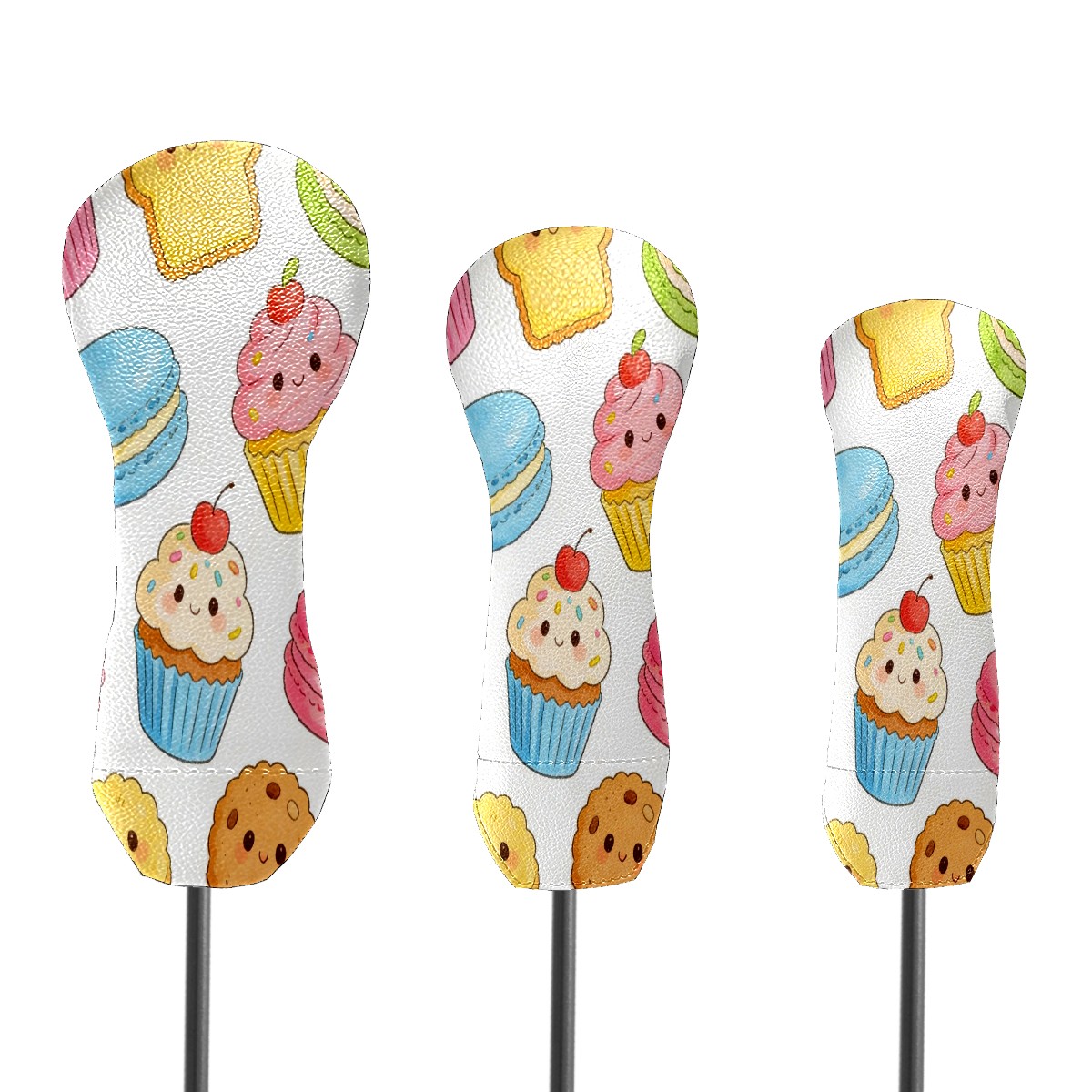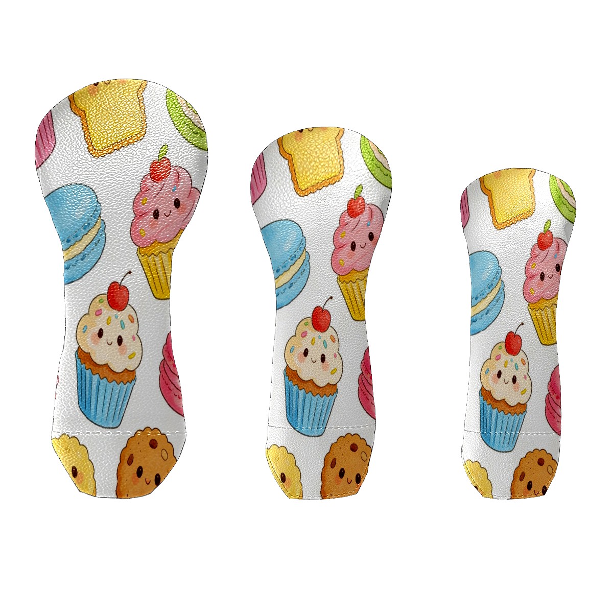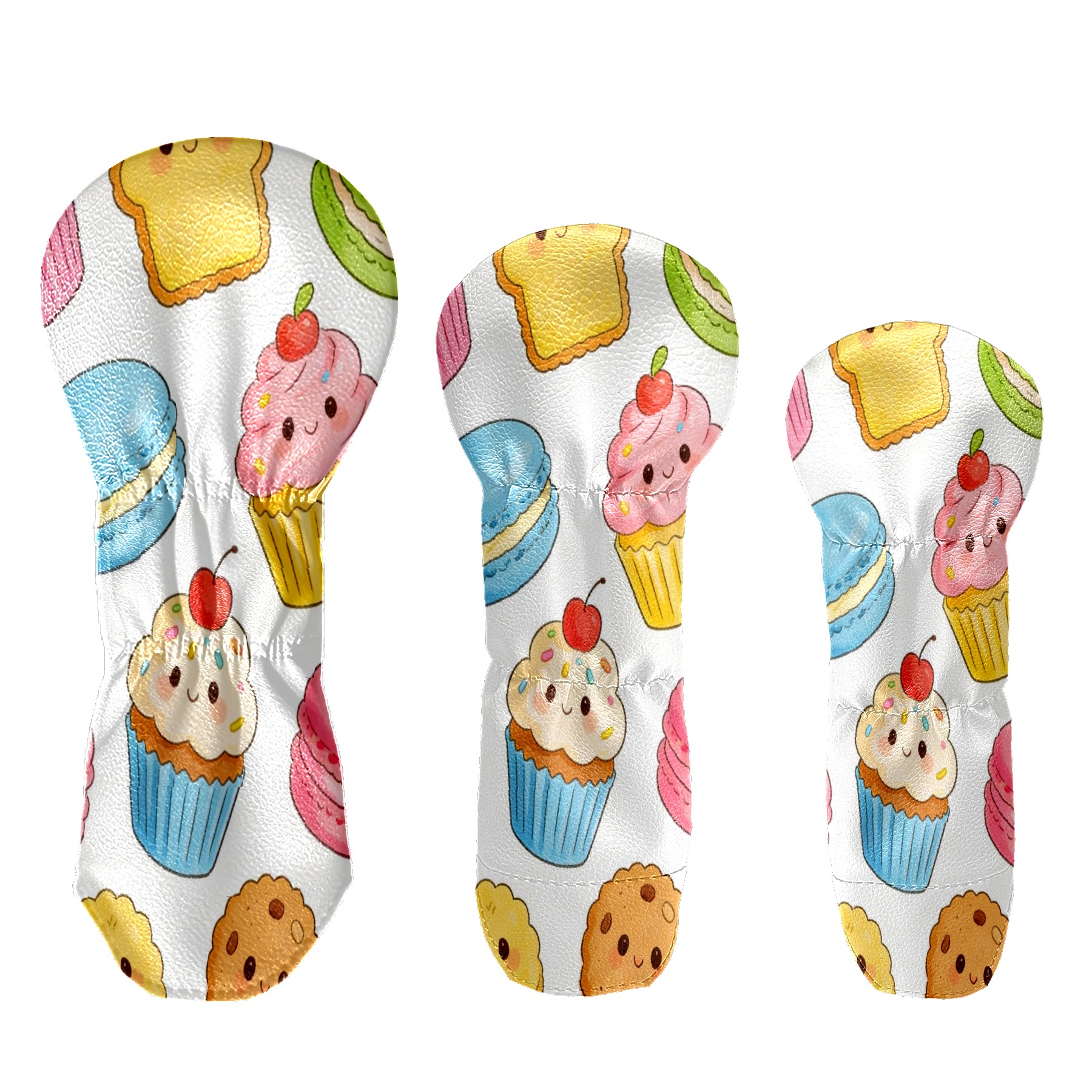 3 Pack PU Leather Golf Club Head Covers - Driver, Fairway Wood & Hybrid, Funny Golf Accessories, Ideal Golf Gift Colorful Cake Pattern