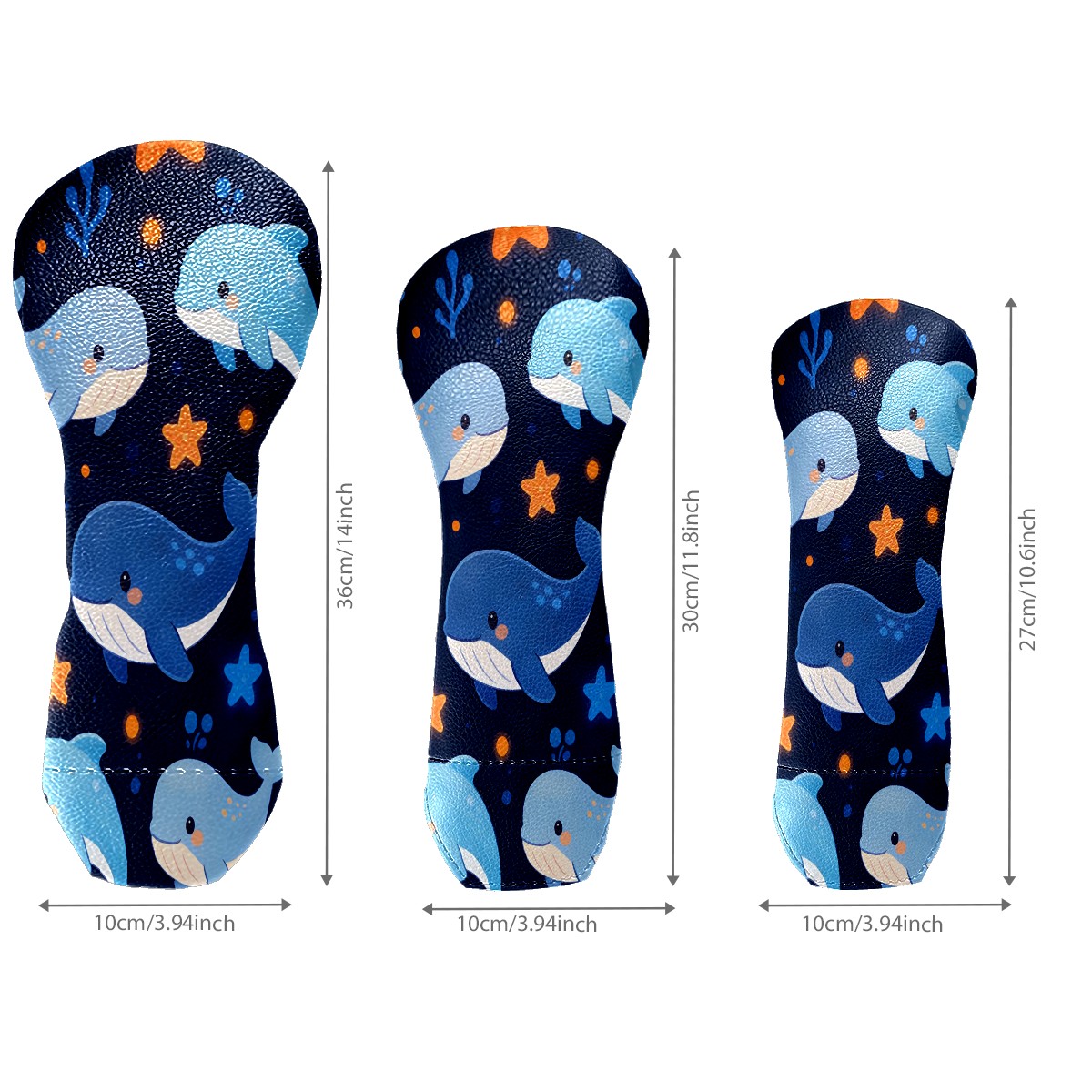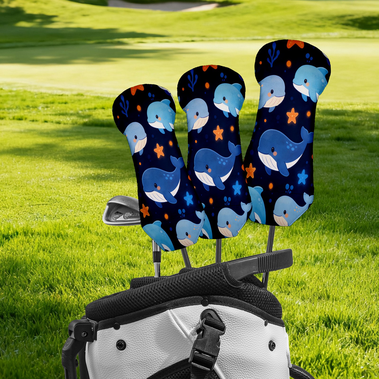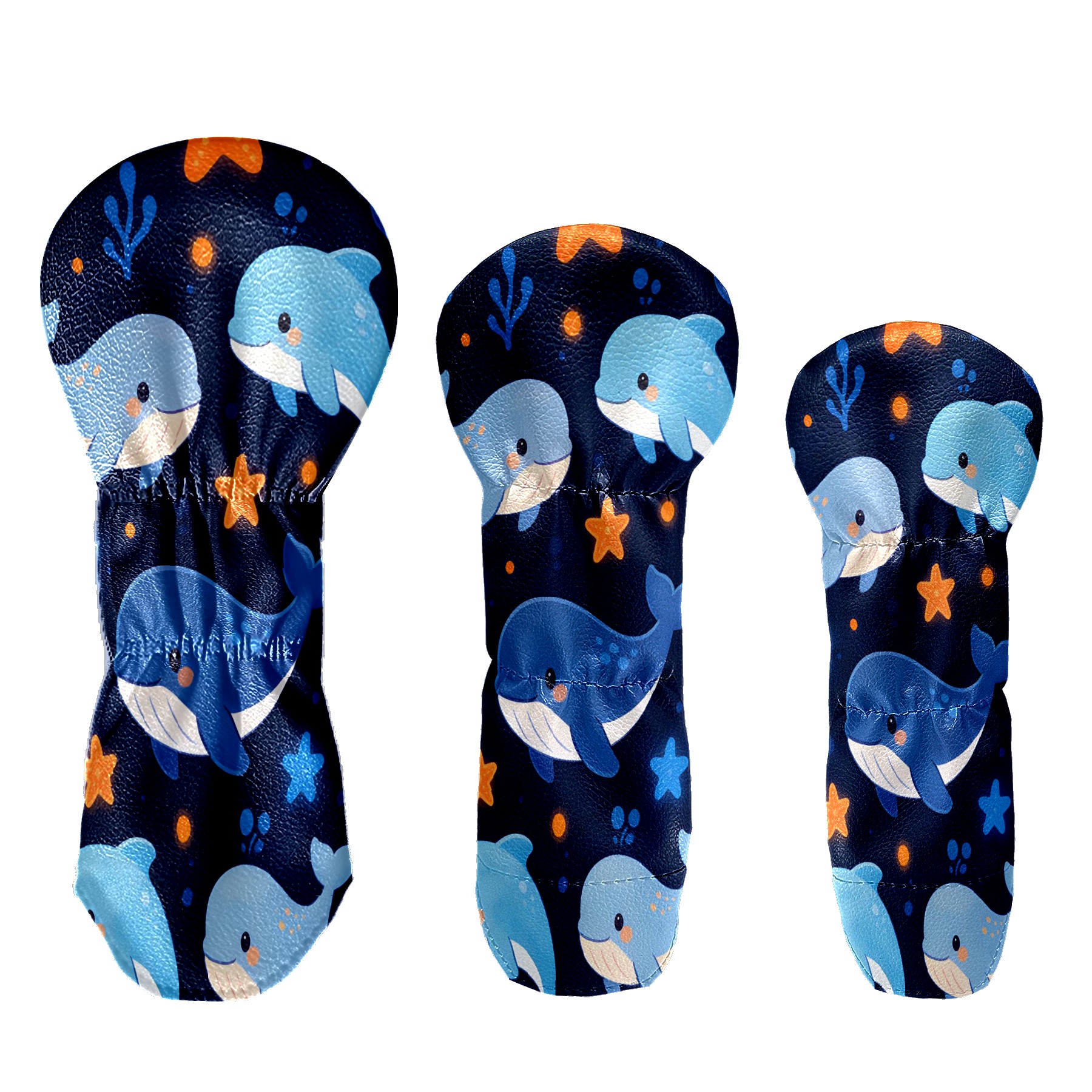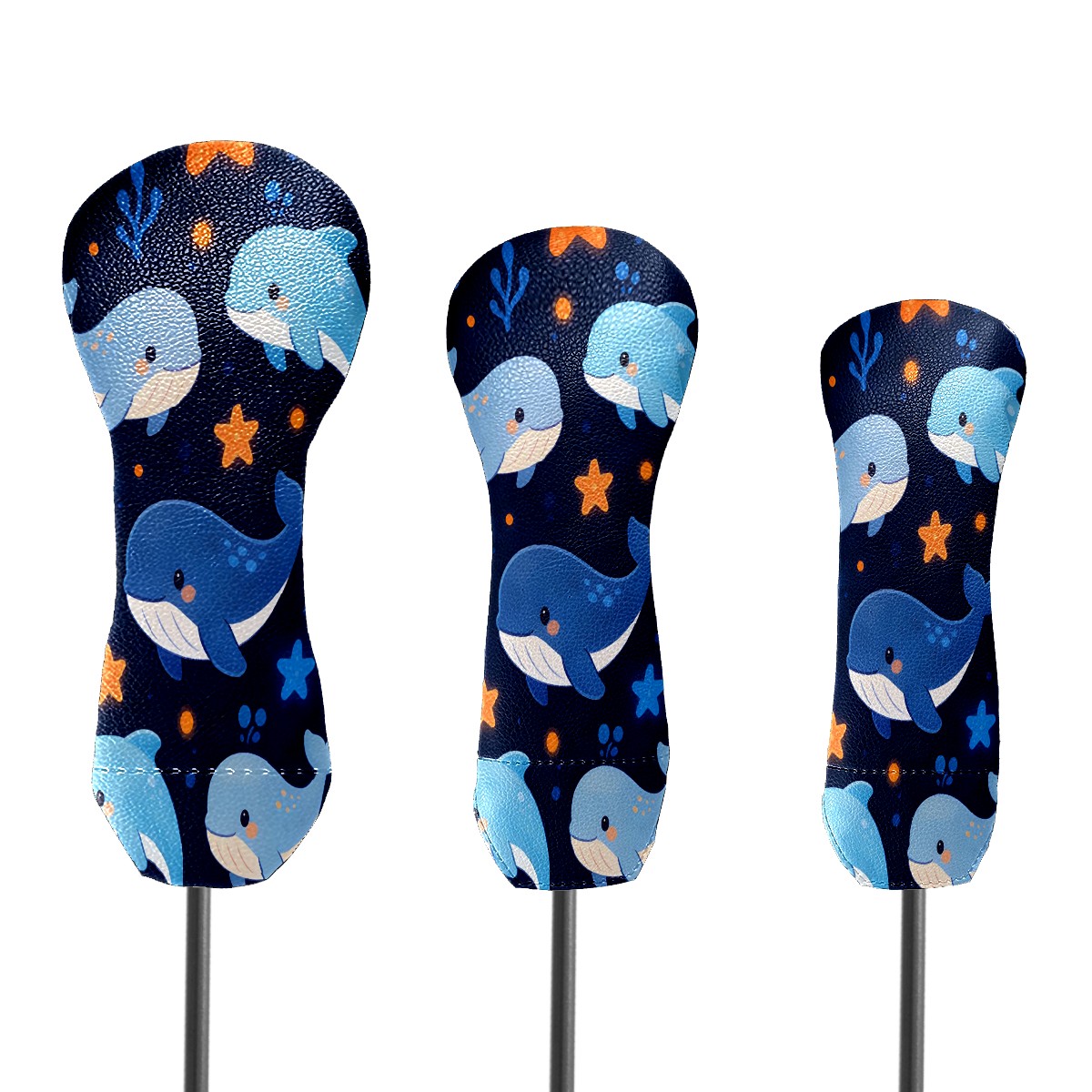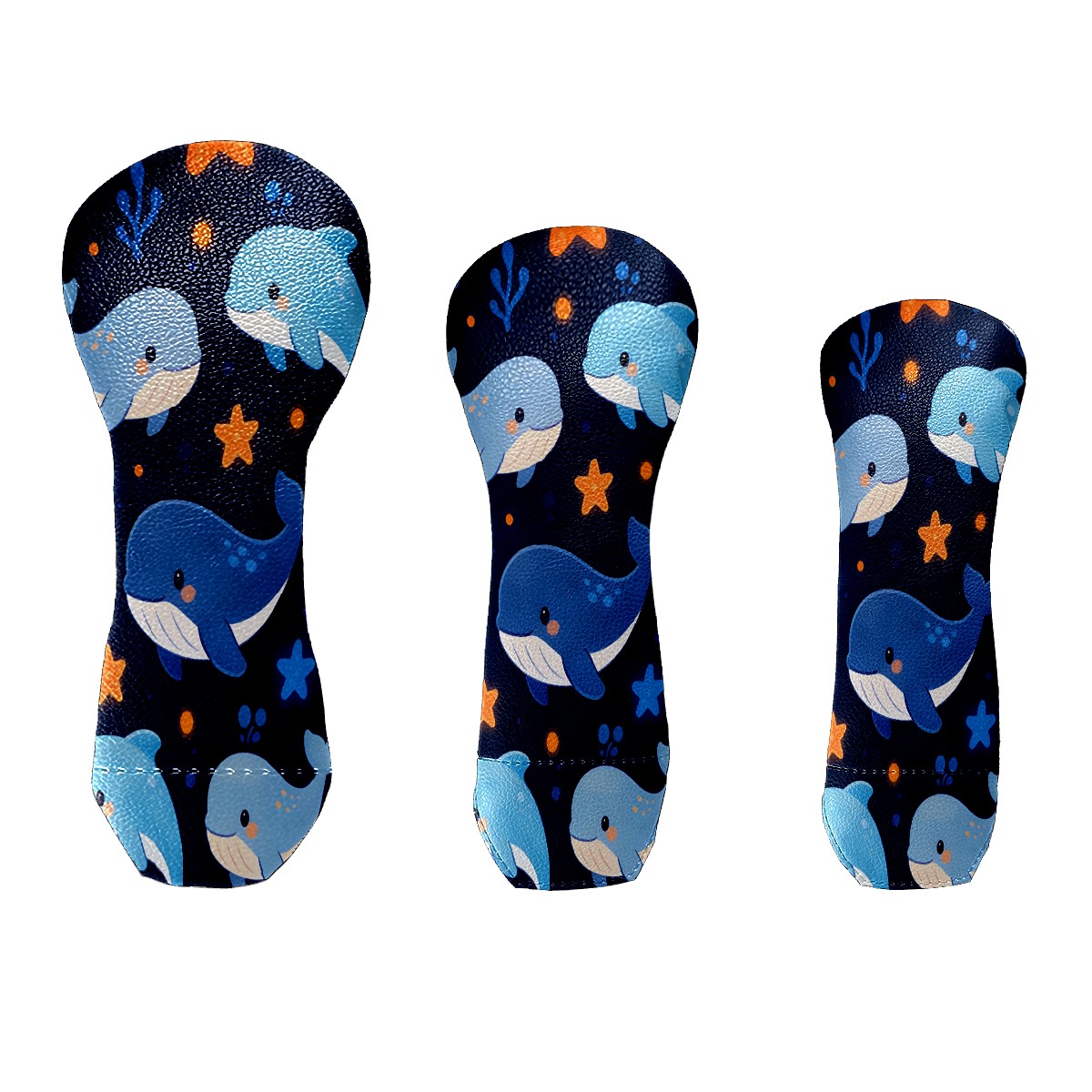3 Pack PU Leather Golf Club Head Covers - Driver, Fairway Wood & Hybrid, Funny Golf Accessories, Ideal Golf Gift Star Whale Pattern