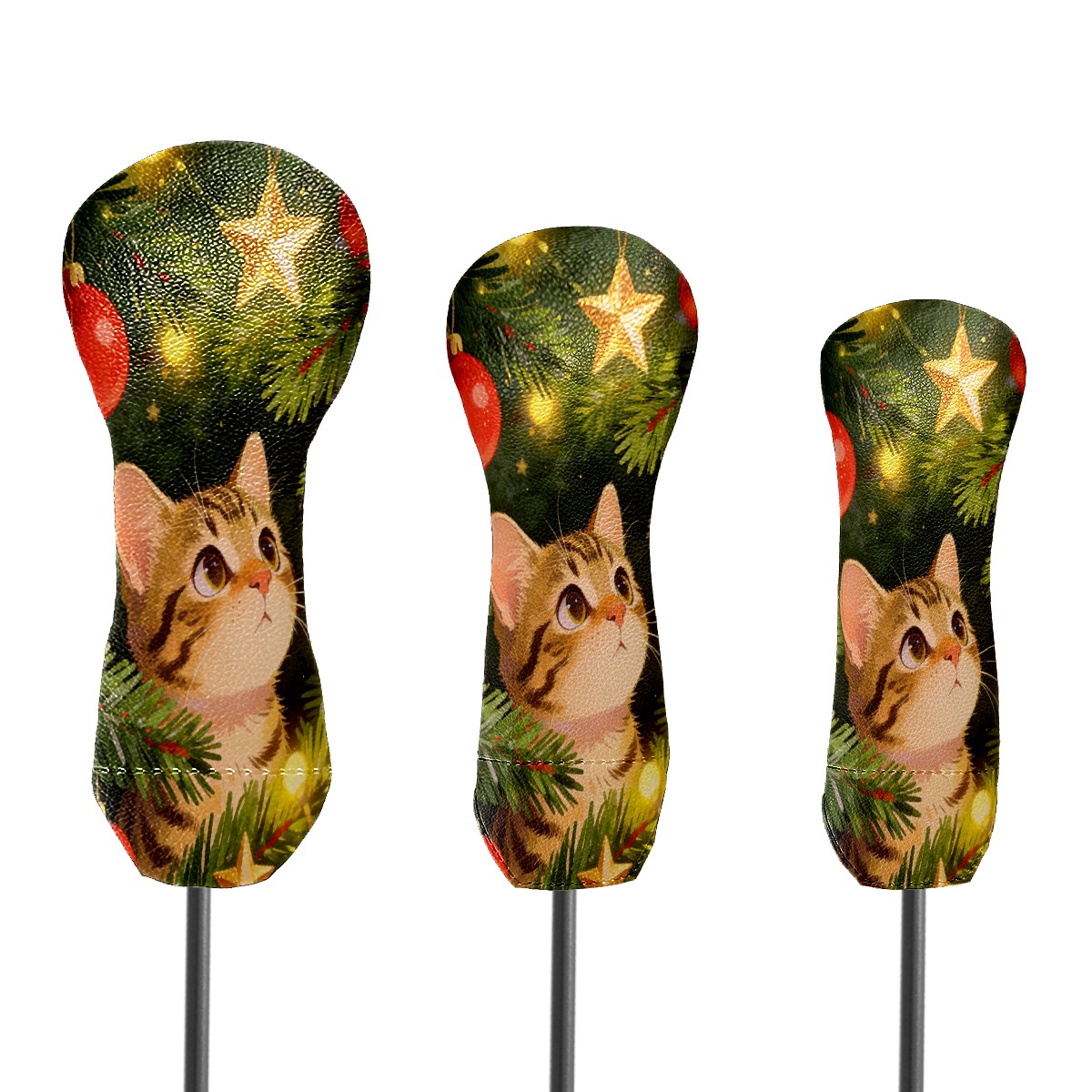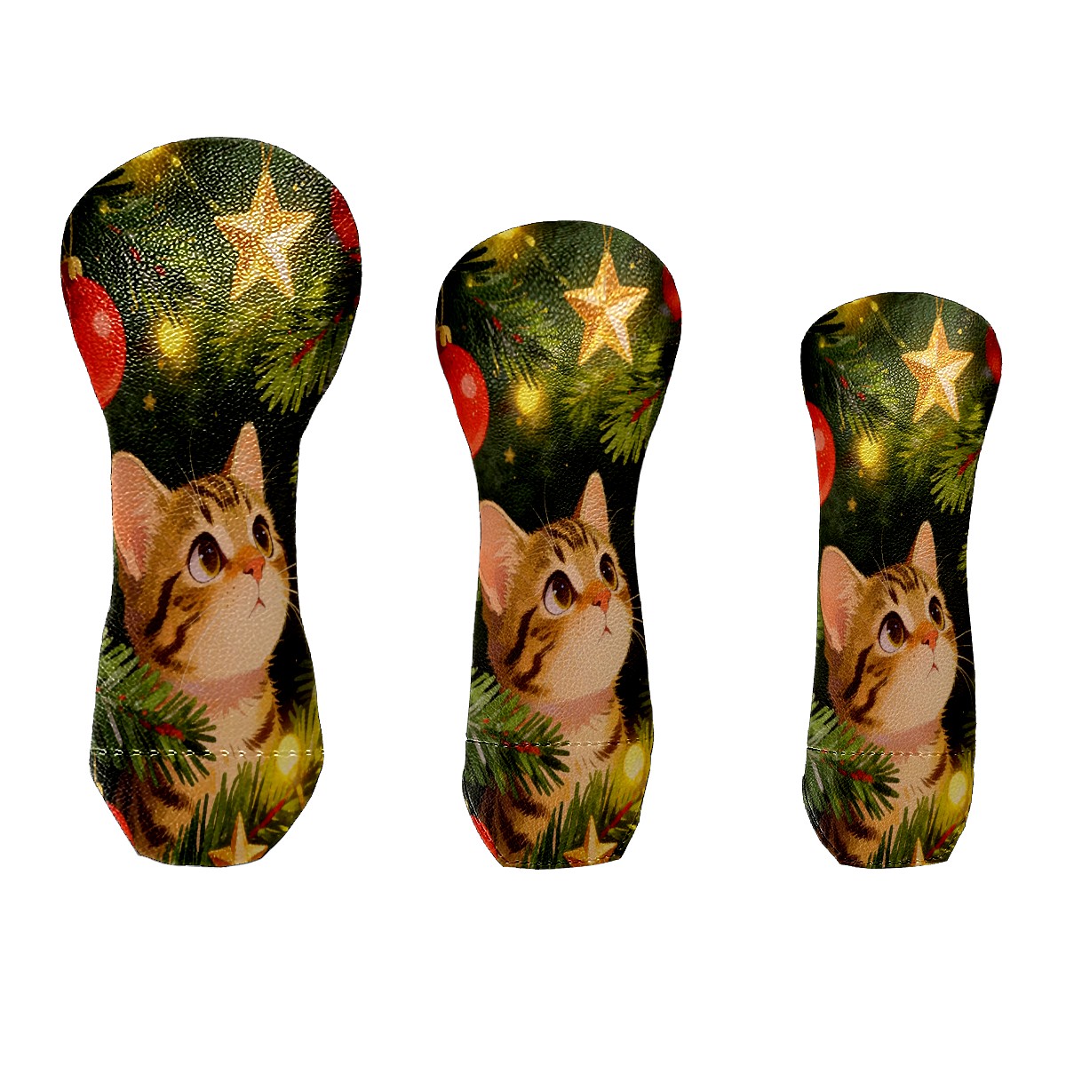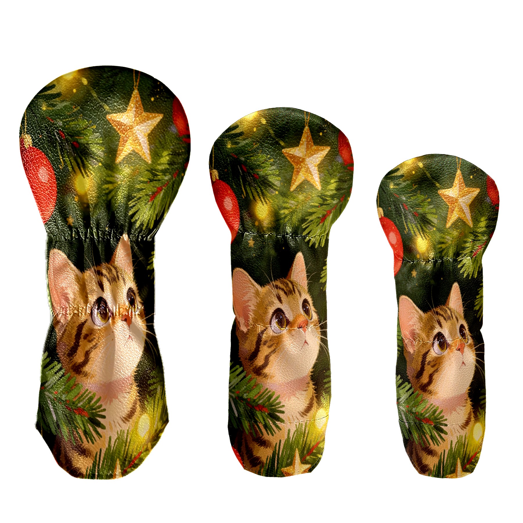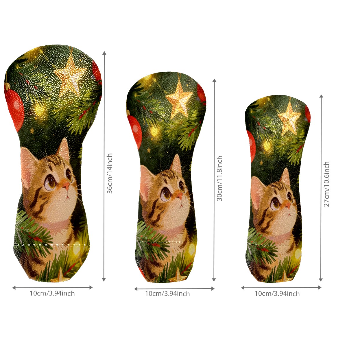 3 Pack PU Leather Golf Club Head Covers - Driver, Fairway Wood & Hybrid, Funny Golf Accessories, Ideal Golf Gift Christmas Cat Pattern