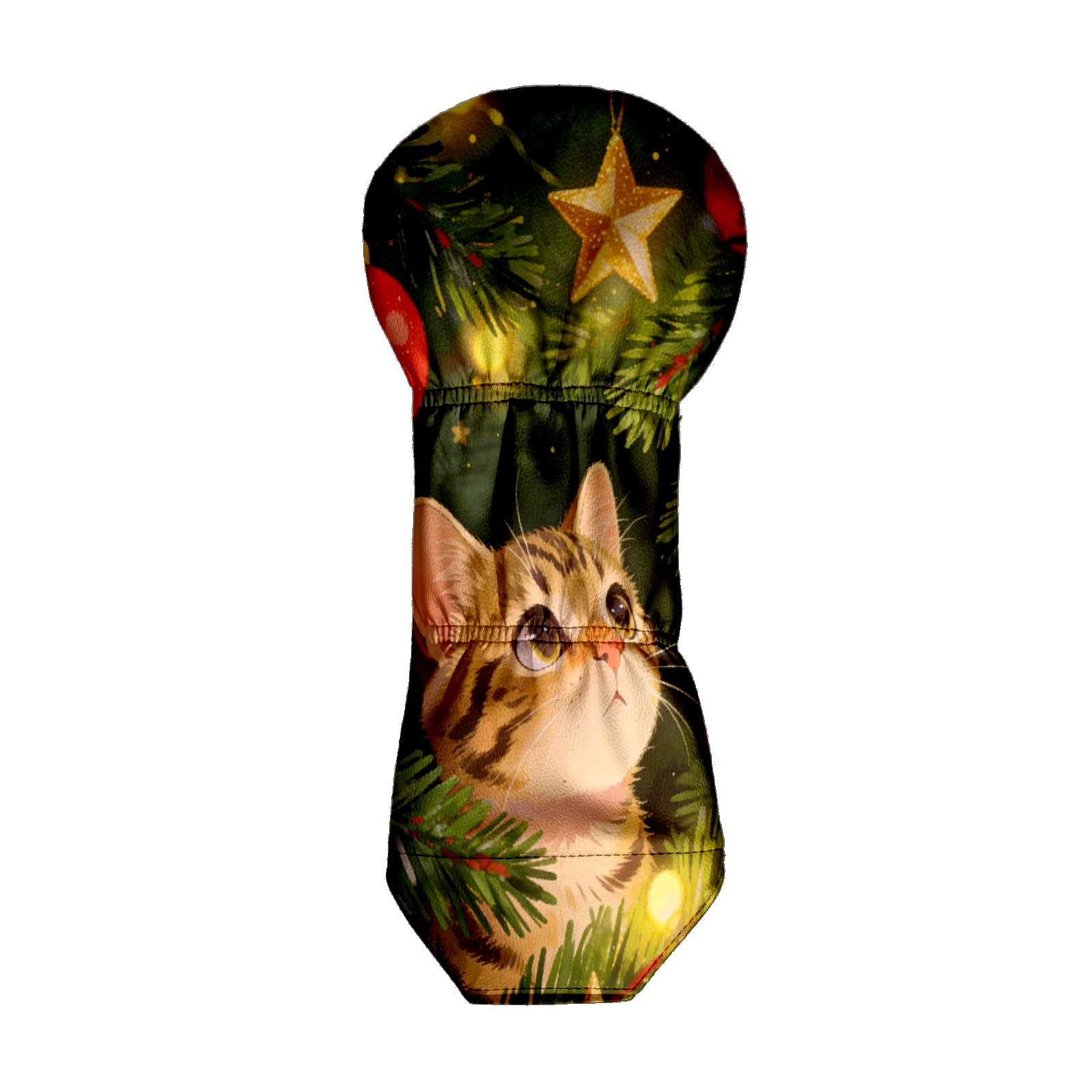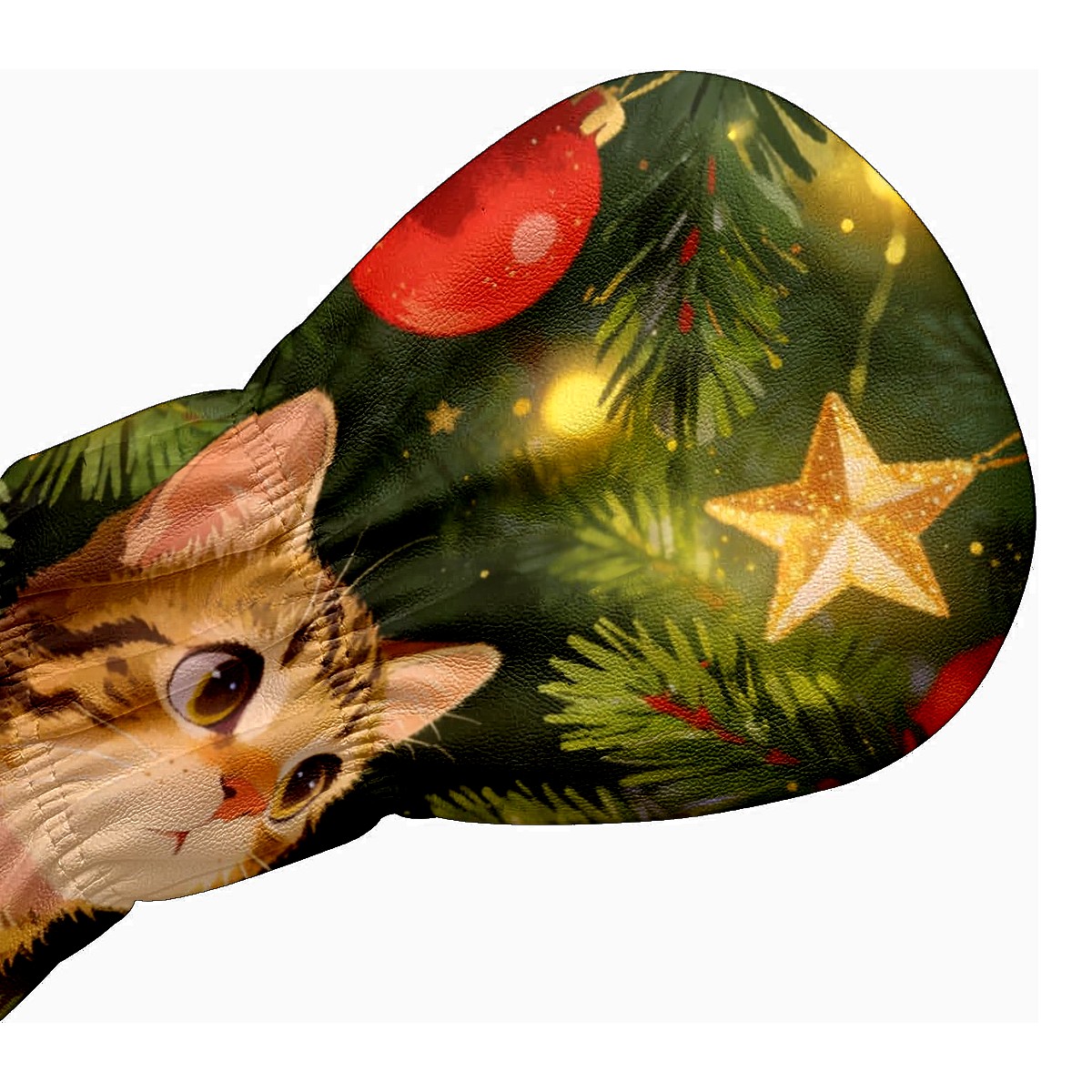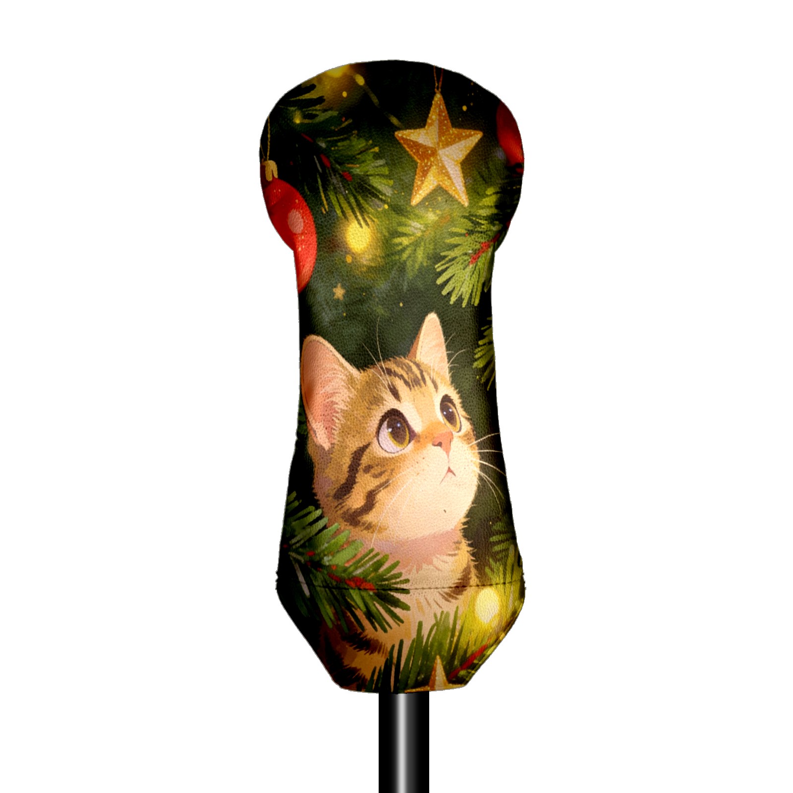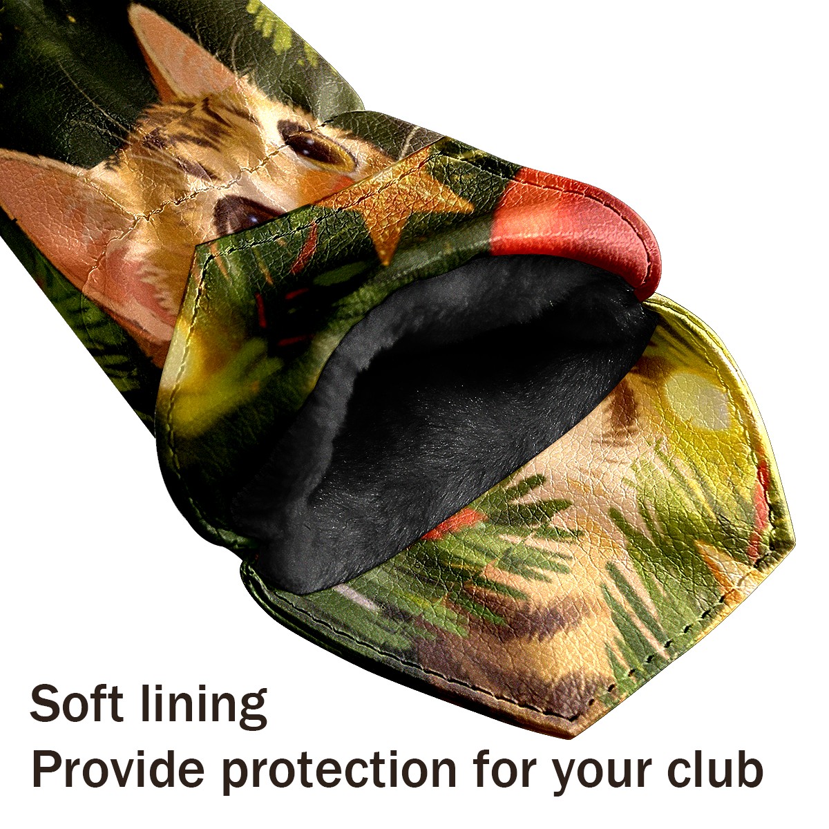 3 Pack PU Leather Golf Club Head Covers - Driver, Fairway Wood & Hybrid, Funny Golf Accessories, Ideal Golf Gift Christmas Cat Pattern